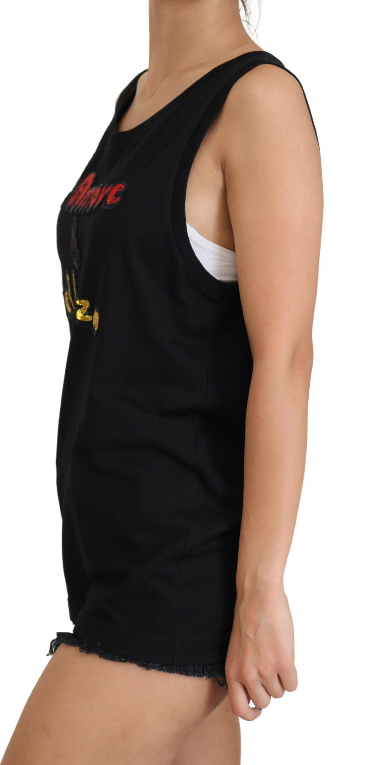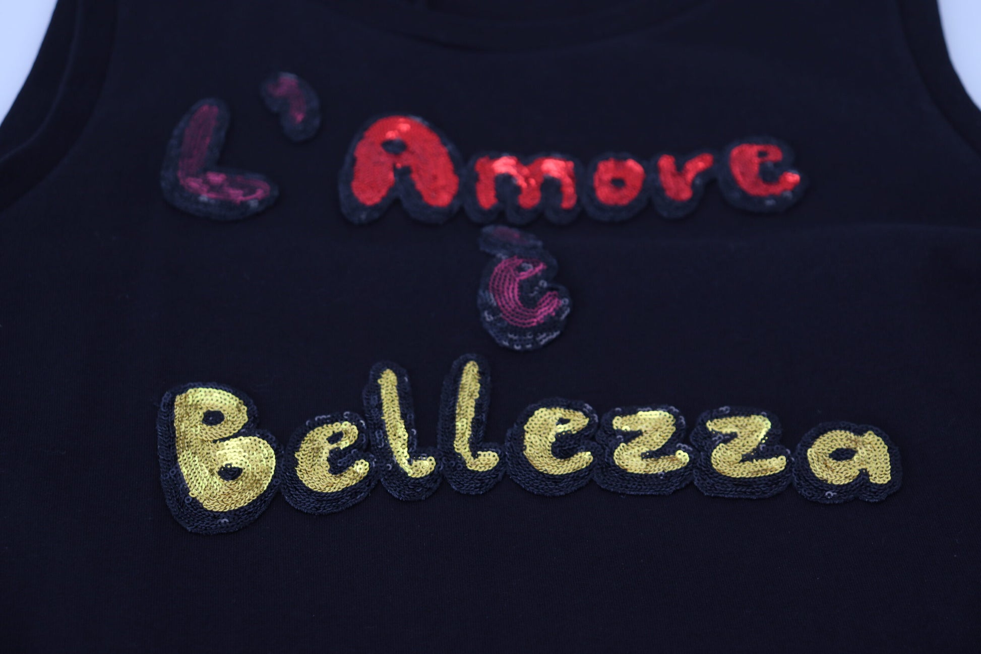 Gorgeous and brand new, 100% Authentic Dolce & Gabbana sequined ‘Amore e Bellezza’ sleeveless top presenting a luxurious casual appeal that beams with Italian craftsmanship. Perfect for adding a touch of glamour to your everyday ensemble.