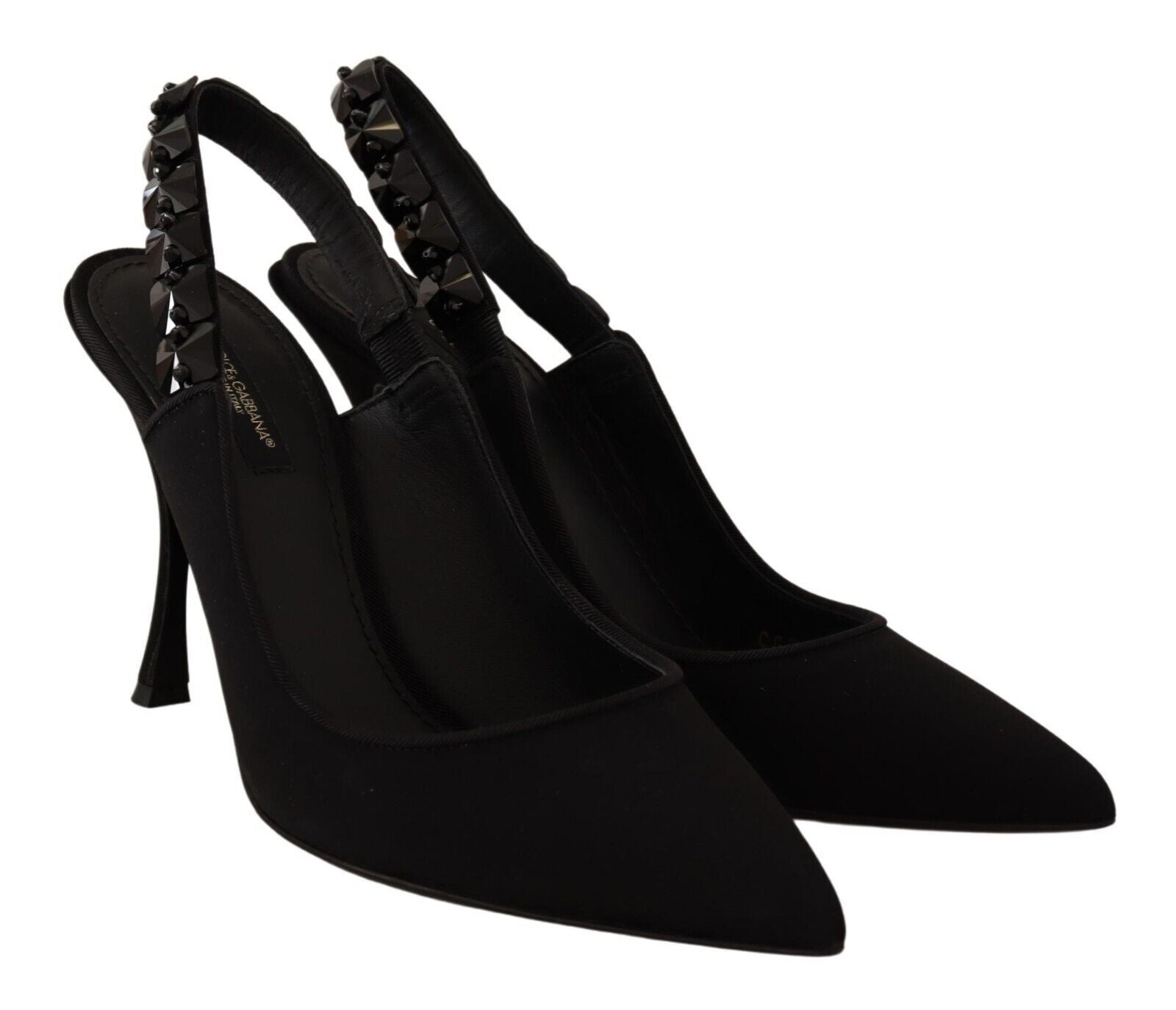 Step into luxury with these exquisite Dolce & Gabbana Slingback Pumps, perfect for someone with a penchant for glamour and sophistication. Designed with a stretch silk blend, these heels dazzle with an ankle strap adorned with jewel details, and a sharp pointed-toe that screams elegance. The leather interior features a logoed label, offering comfort with a dash of opulence. Completing the design is a classic stiletto heel and a leather sole, ensuring every step you take is a statement of style.