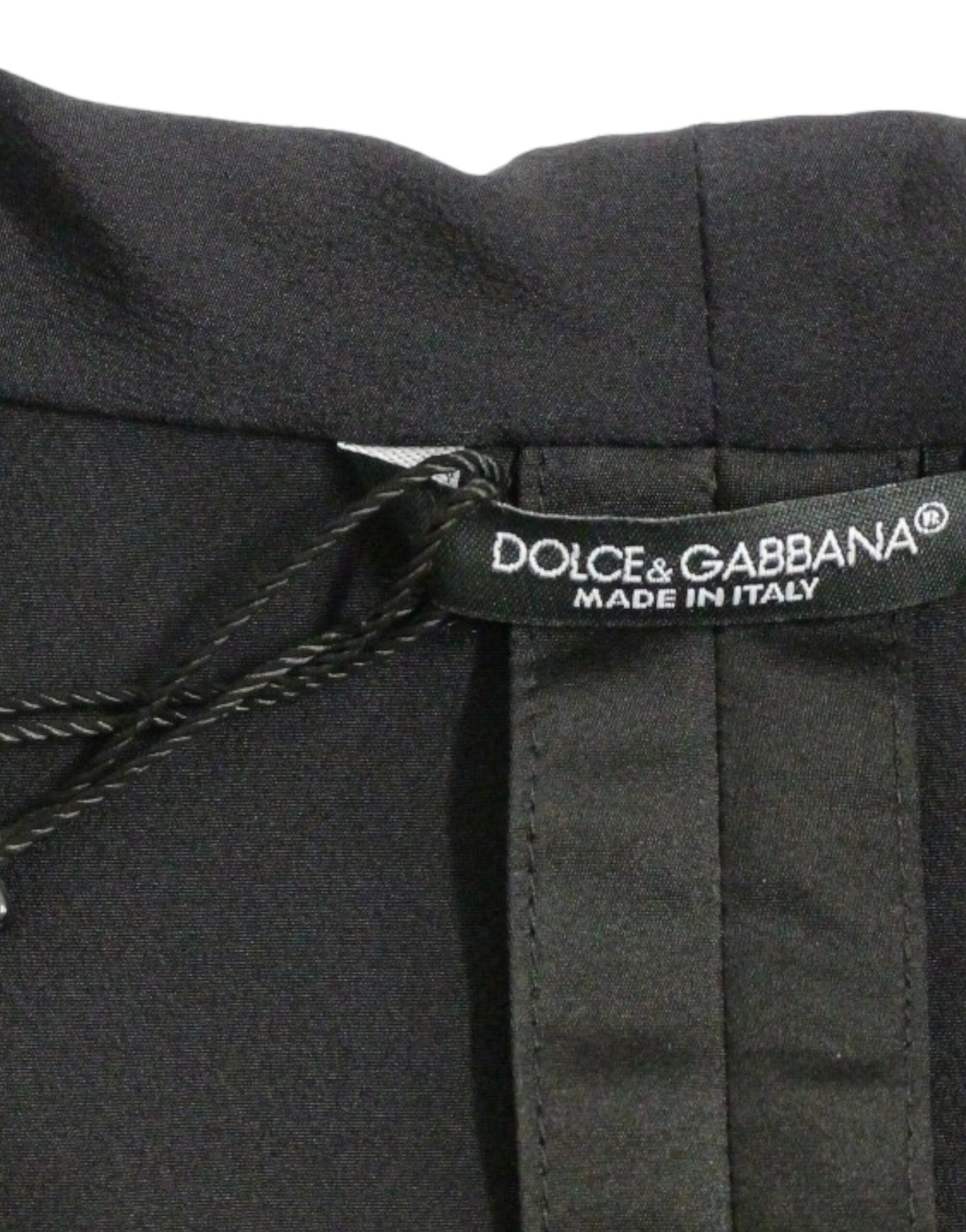 Experience the epitome of luxury with this stunning black silk blazer by Dolce & Gabbana. Tailored to perfection, this slim-fit blazer features a sleek, one-button single-breasted design, providing both a great fitting and exceptional comfort. Crafted from high-quality silk, this blazer exudes sophistication, making it an ideal choice for formal events or stylish everyday wear. Made in Italy, it carries the promise of unparalleled craftsmanship and the prestigious heritage of the Dolce & Gabbana collection. Original tags, hanger, and cover bag are included to ensure its pristine condition.