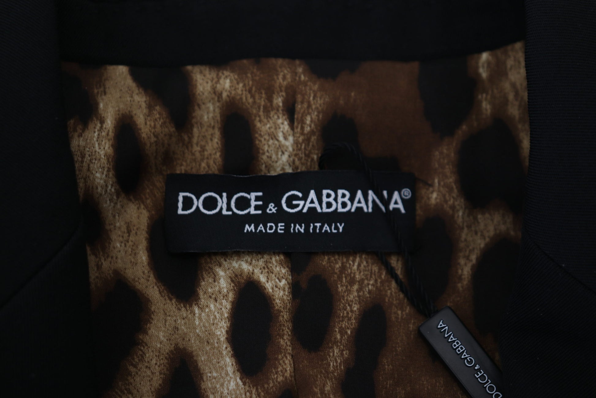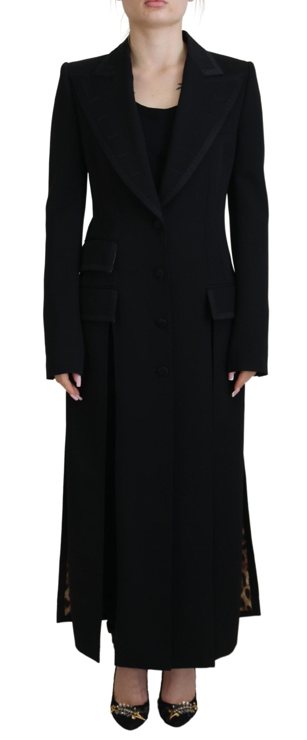 Exude timeless elegance with this stunning Dolce & Gabbana black trench coat jacket. Perfect for a chic look, this single-breasted blazer jacket blends impeccable tailoring with a classic flair. Made in Italy, it assures not just style but a testament to high-quality craftsmanship. The classic signature lining and logo details add a discreet yet recognisable touch of luxury.