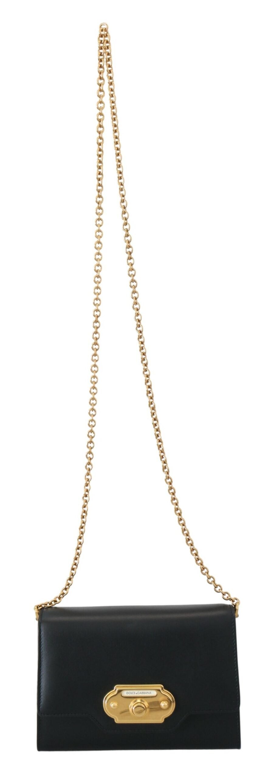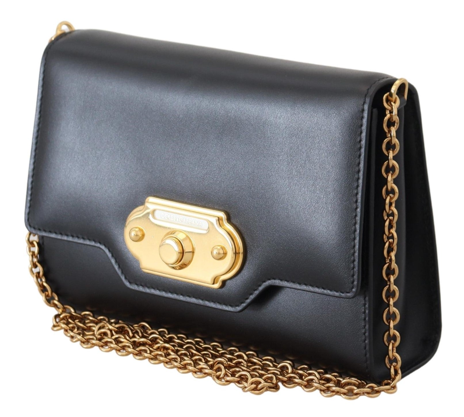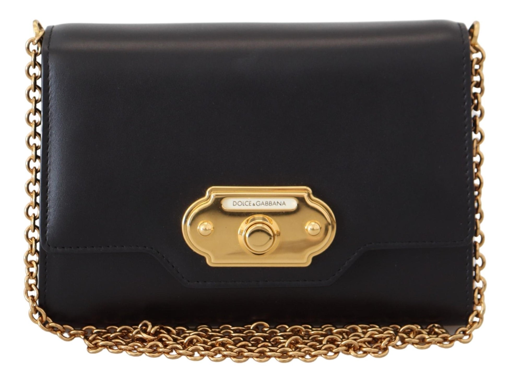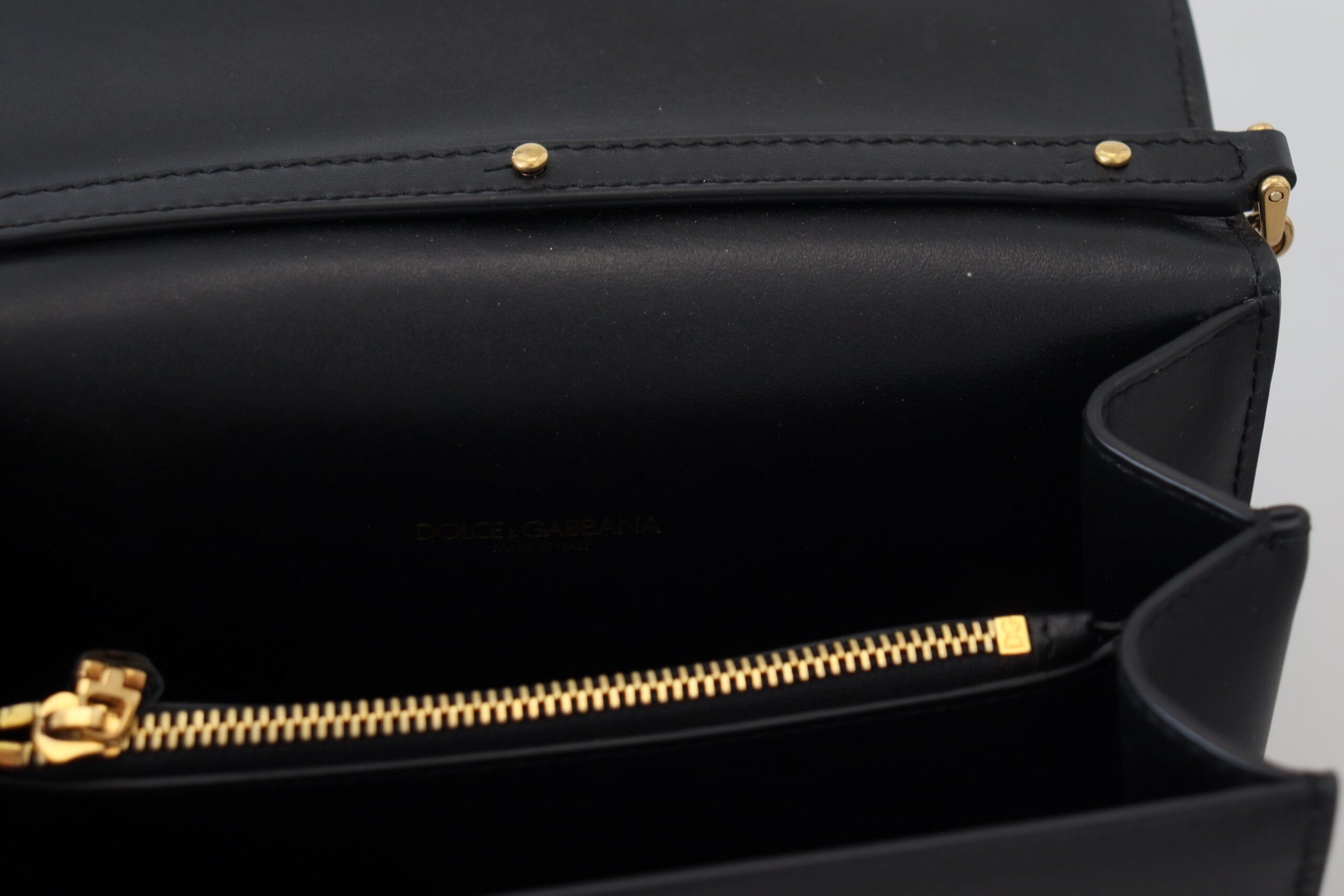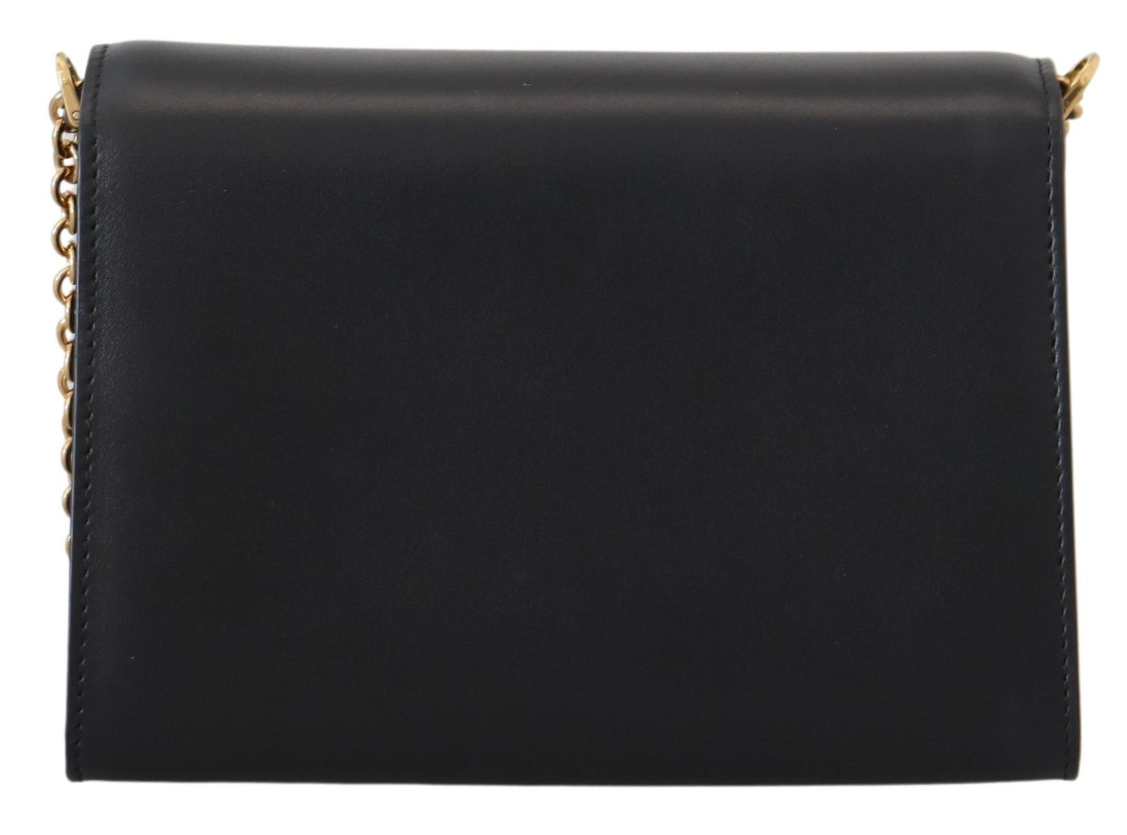 Step out in style with this exquisite Dolce & Gabbana shoulder bag. Crafted from premium leather in a classic black hue, the bag is accentuated with eye-catching gold metal details. Its versatile design includes a detachable chain, allowing it to be worn as a stunning statement piece or a hands-free accessory. The bag boasts two compartments and an inner pocket with a zipper, perfect for organizing your essentials securely. The push-button flap closure ensures your belongings are safe while showcasing the renowned logo. This Italian masterpiece is not only a luxurious accessory but a testament to high craftsmanship.
