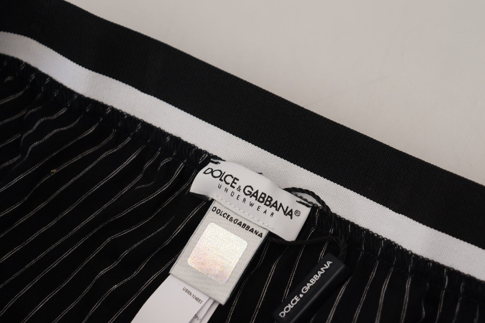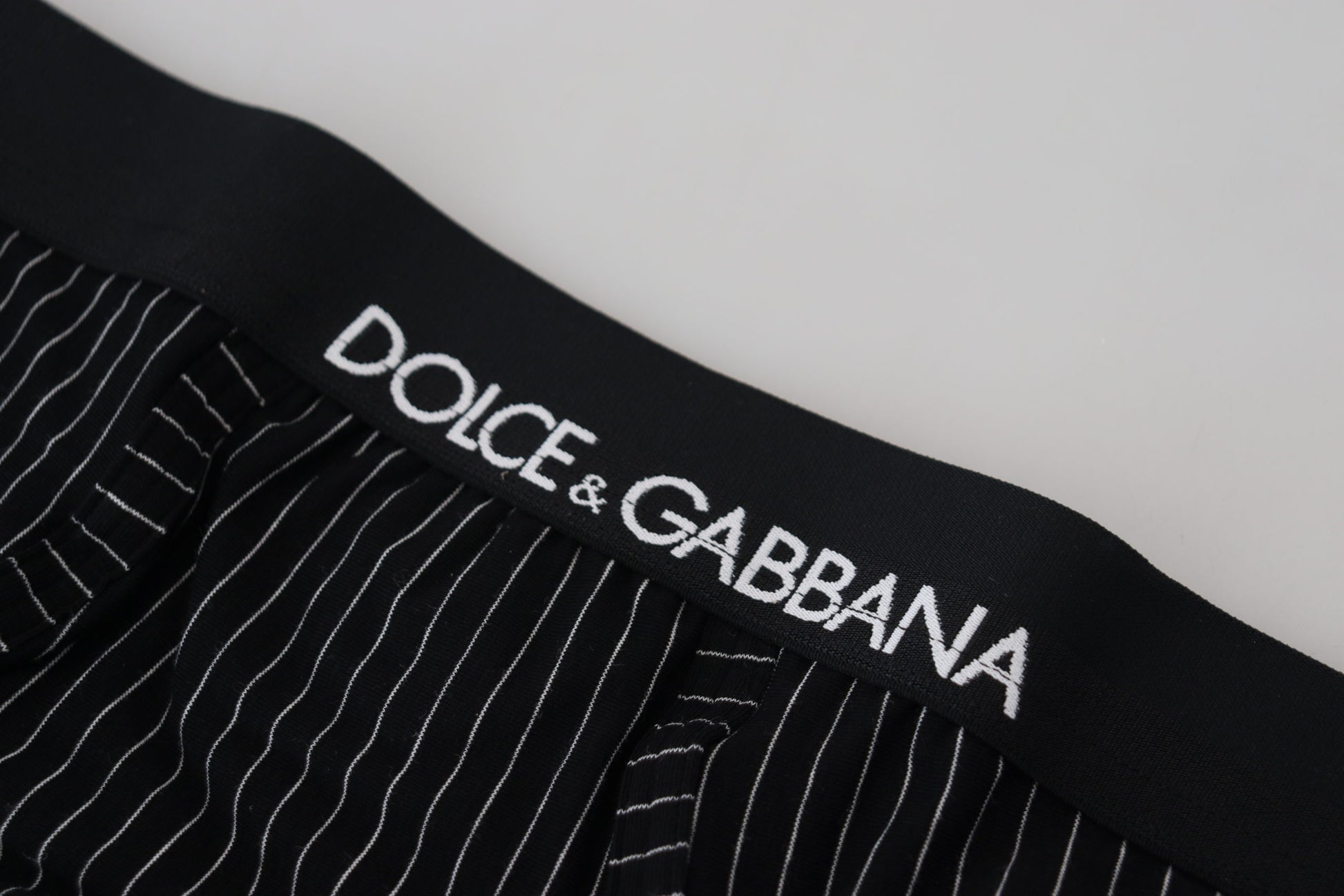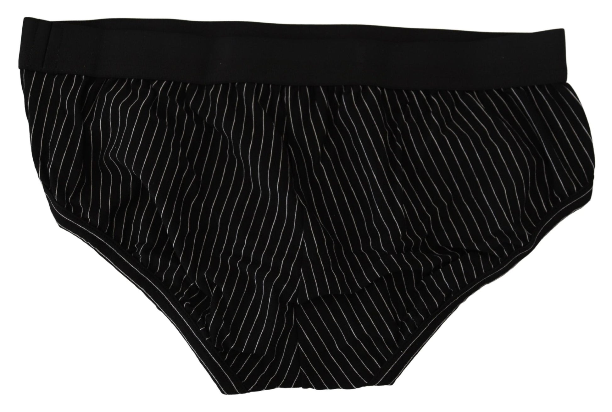 Indulge in the luxury and comfort of these chic black and white striped briefs from Dolce & Gabbana. Expertly designed with an elastic waistband featuring the iconic logo, this high-quality cotton stretch underwear is not just a treat to the eyes but also offers a great fit and unmatched everyday comfort. Perfect for those who appreciate the finer things in life and crafted with precision in Italy, these briefs are a must-have addition to your daily wardrobe.