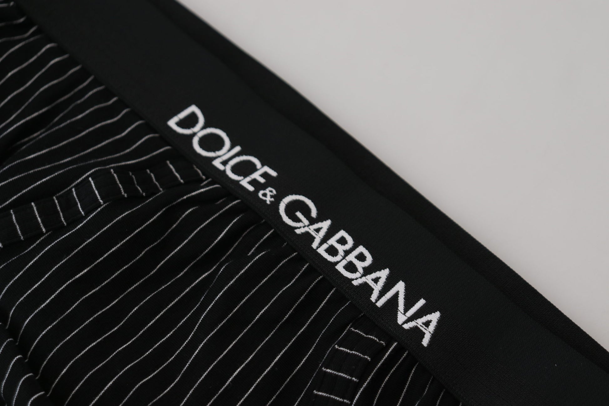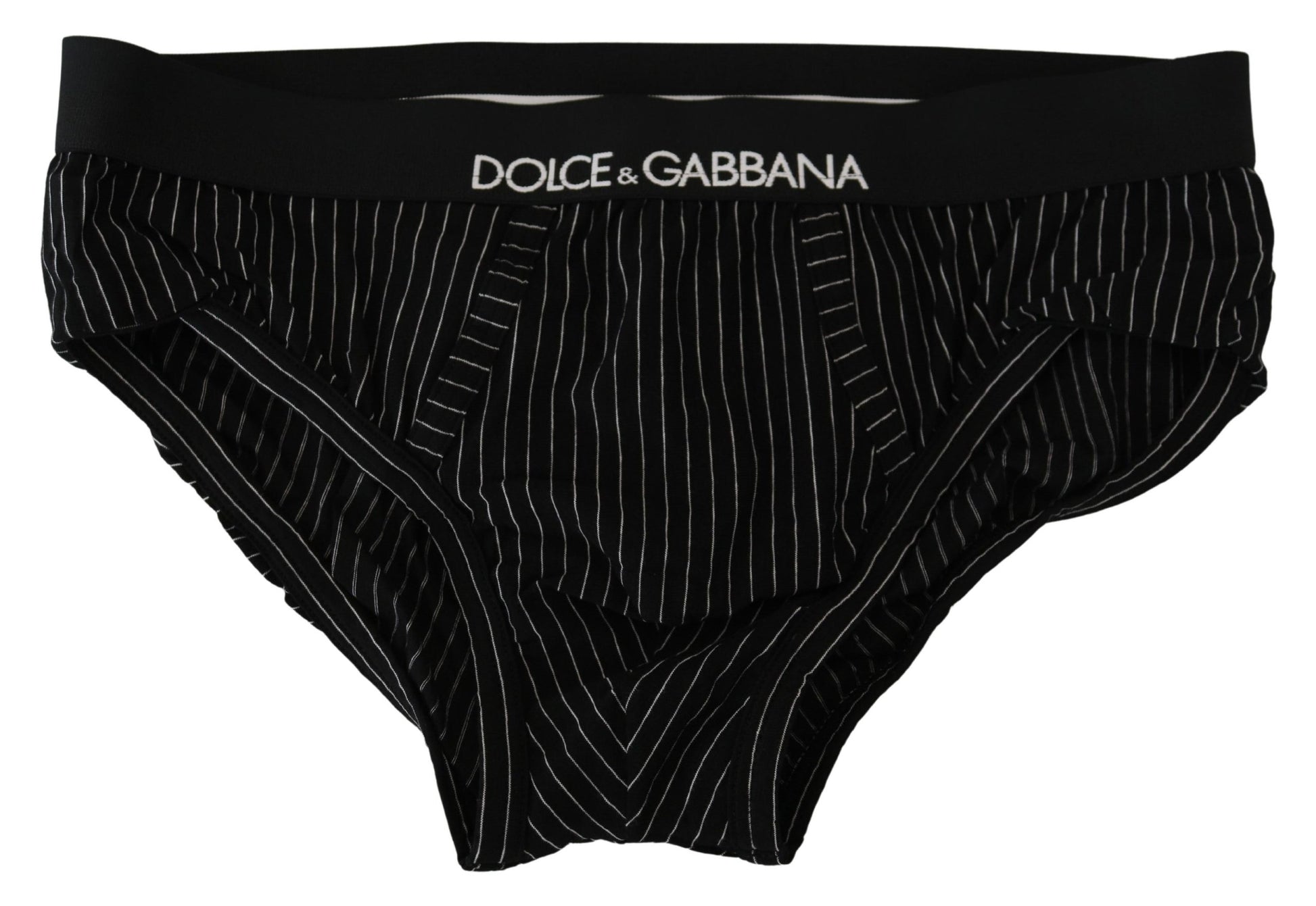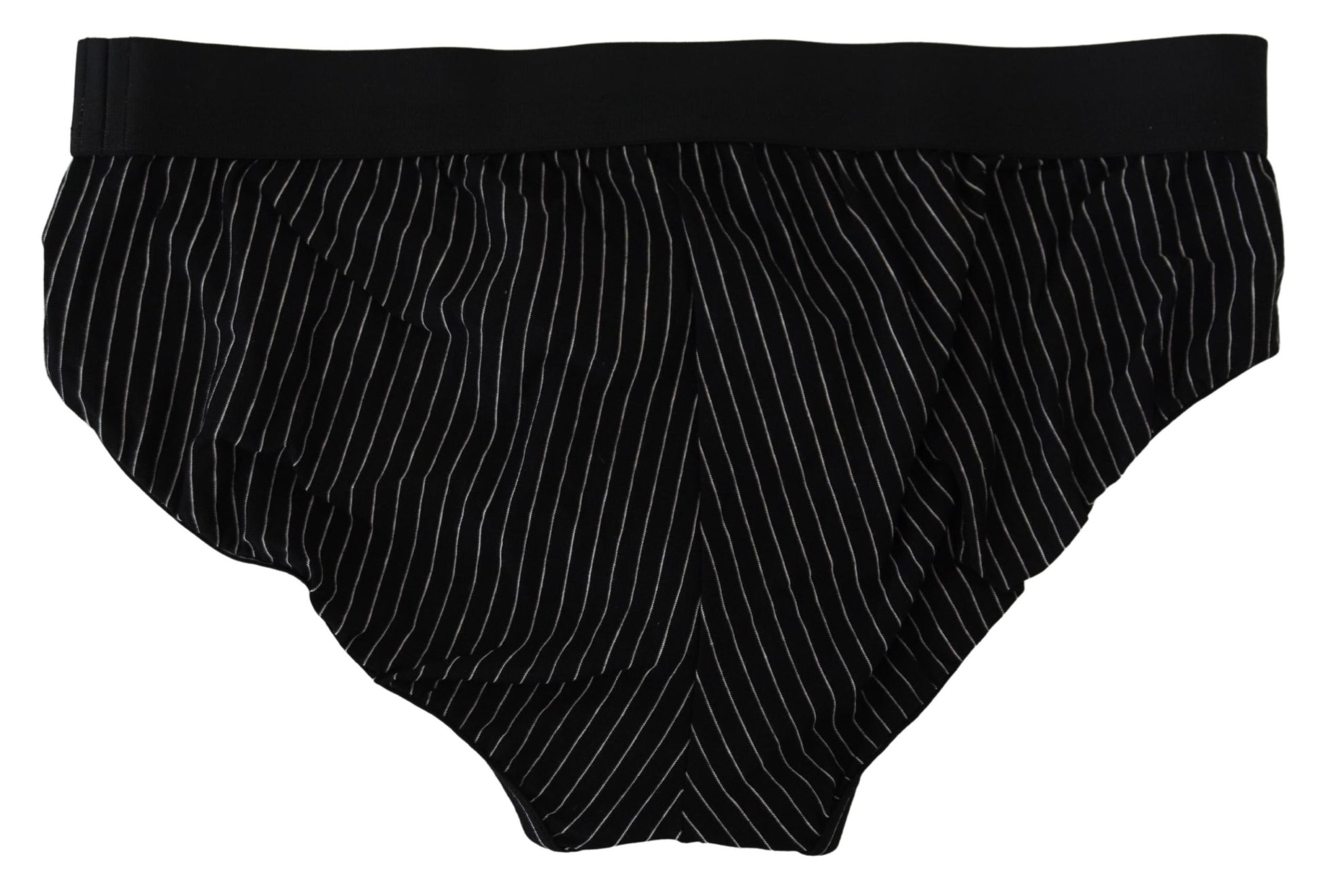 Step into luxury with these elegant black and white striped briefs from Dolce & Gabbana. Designed for a man who appreciates the finer things in life, these briefs are not only stunning but also symbolize high-fashion comfort. The excellent fit is achieved through meticulous Italian craftsmanship and a superior-quality cotton stretch fabric that ensures ease of movement and unmatched comfort all day long. The iconic logo branding on the elastic waistband adds a touch of exclusivity and brand recognition, affirming the status of the wearer.