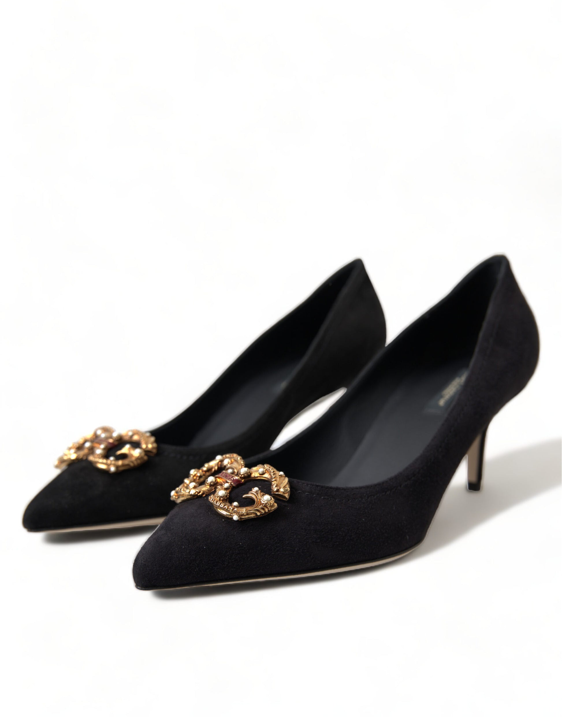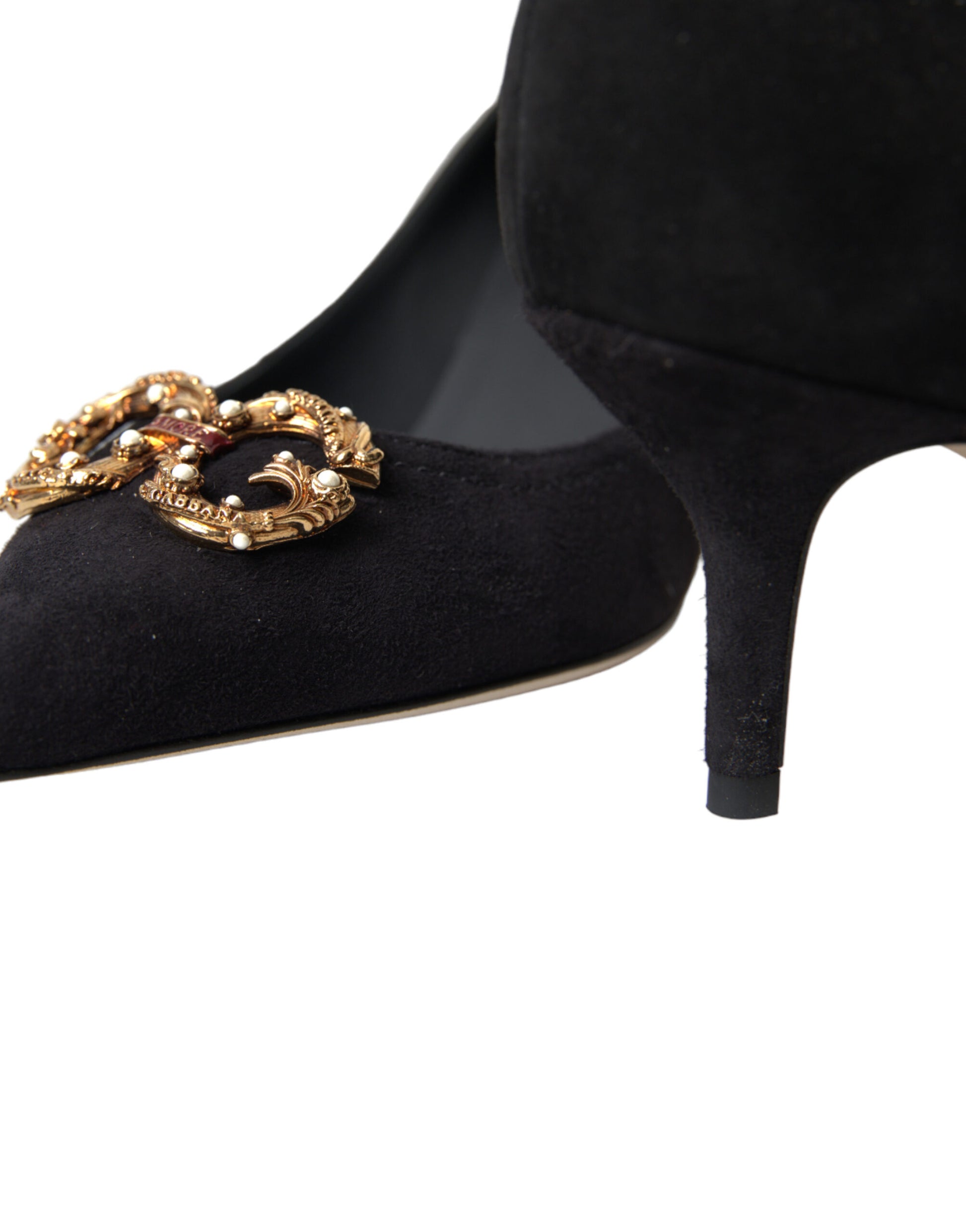Indulge in the epitome of Italian craftsmanship with these sophisticated Dolce & Gabbana DG Amore pumps. Perfectly tailored for the fashion-savvy, these heels are a testament to a luxe silhouette and timeless allure. The black suede leather composition offers a plush feel, while the exquisite comfort makes them a joy to wear for any occasion.
