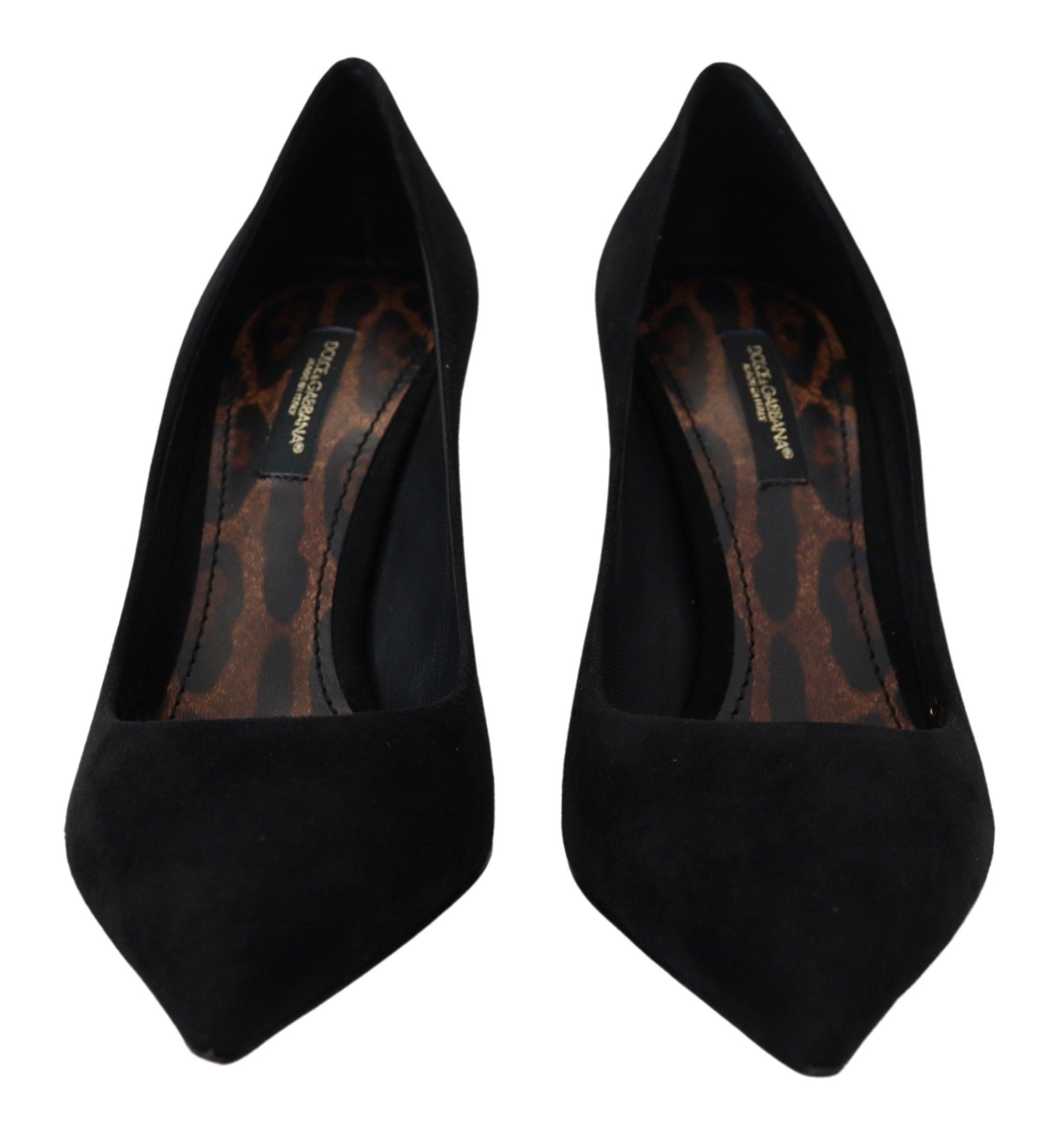 Gorgeous and elegant, these brand new stiletto heels pumps by Dolce & Gabbana radiate sophistication with their sleek black suede leather construction. Made in Italy, these shoes feature a luxurious leather bottom sole and are adorned with the iconic logo details, perfect for adding a touch of designer class to any outfit. Step out in style and comfort.