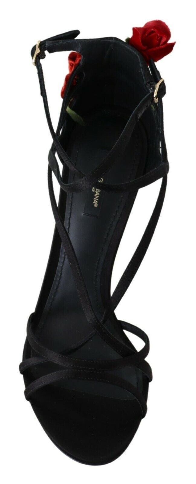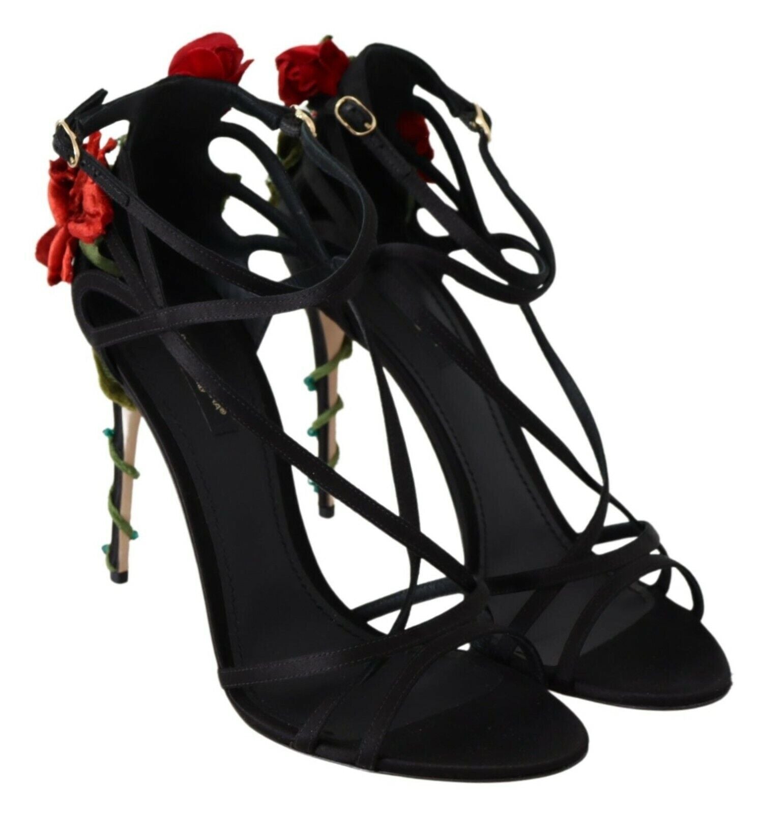 Indulge in the opulence of these striking Dolce & Gabbana high heel sandals. Expertly crafted in Italy, these stunning black suede sandals boast a myriad of exquisite details, from dazzling crystal embellishments to delicate floral appliqués. The open-toe, strappy design exudes an aura of glamour, while the high heels add a statuesque elegance to any ensemble. A branded embossed insole ensures comfort without compromising style, making these beauties a perfect choice for any luxury fashion connoisseur.