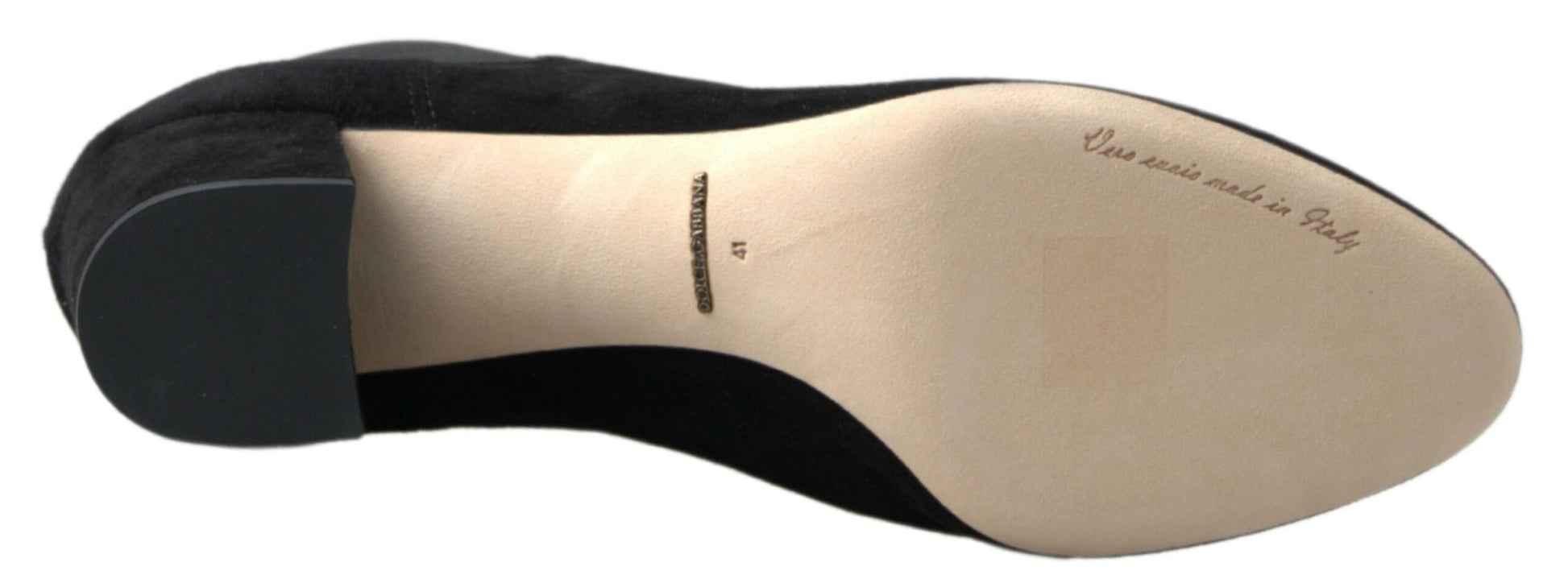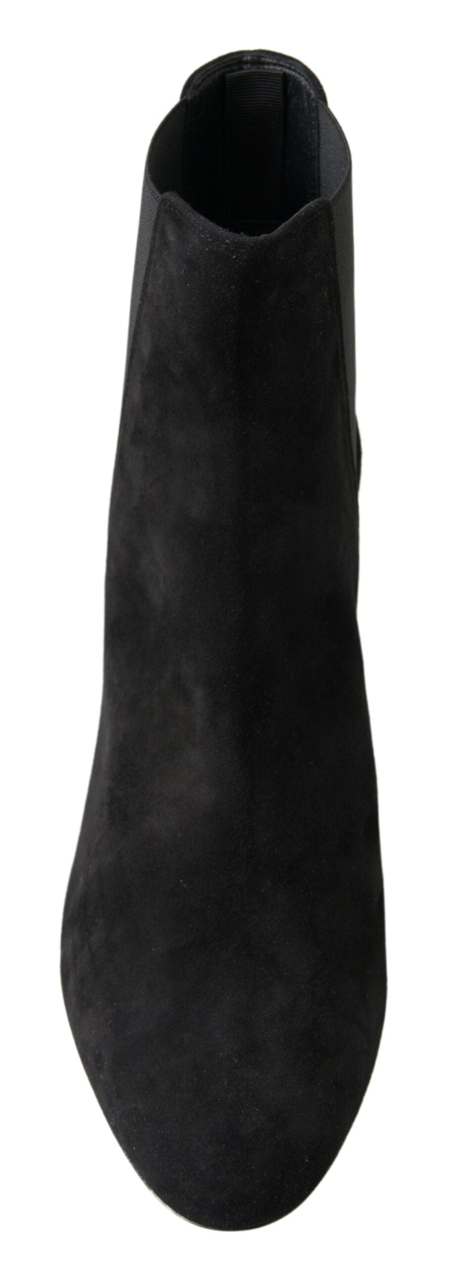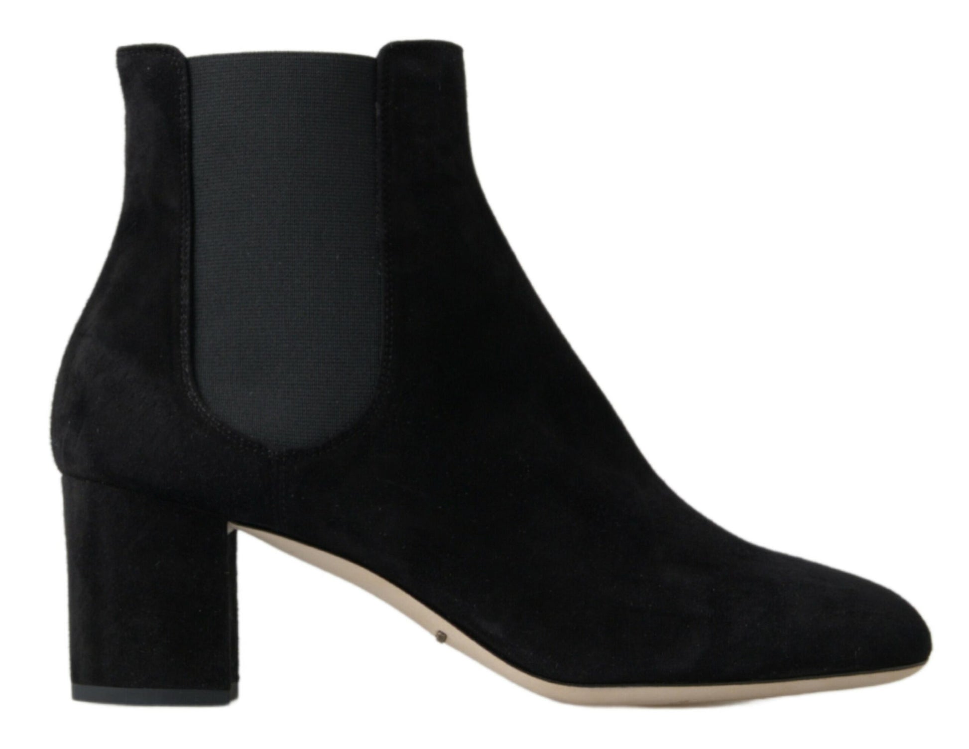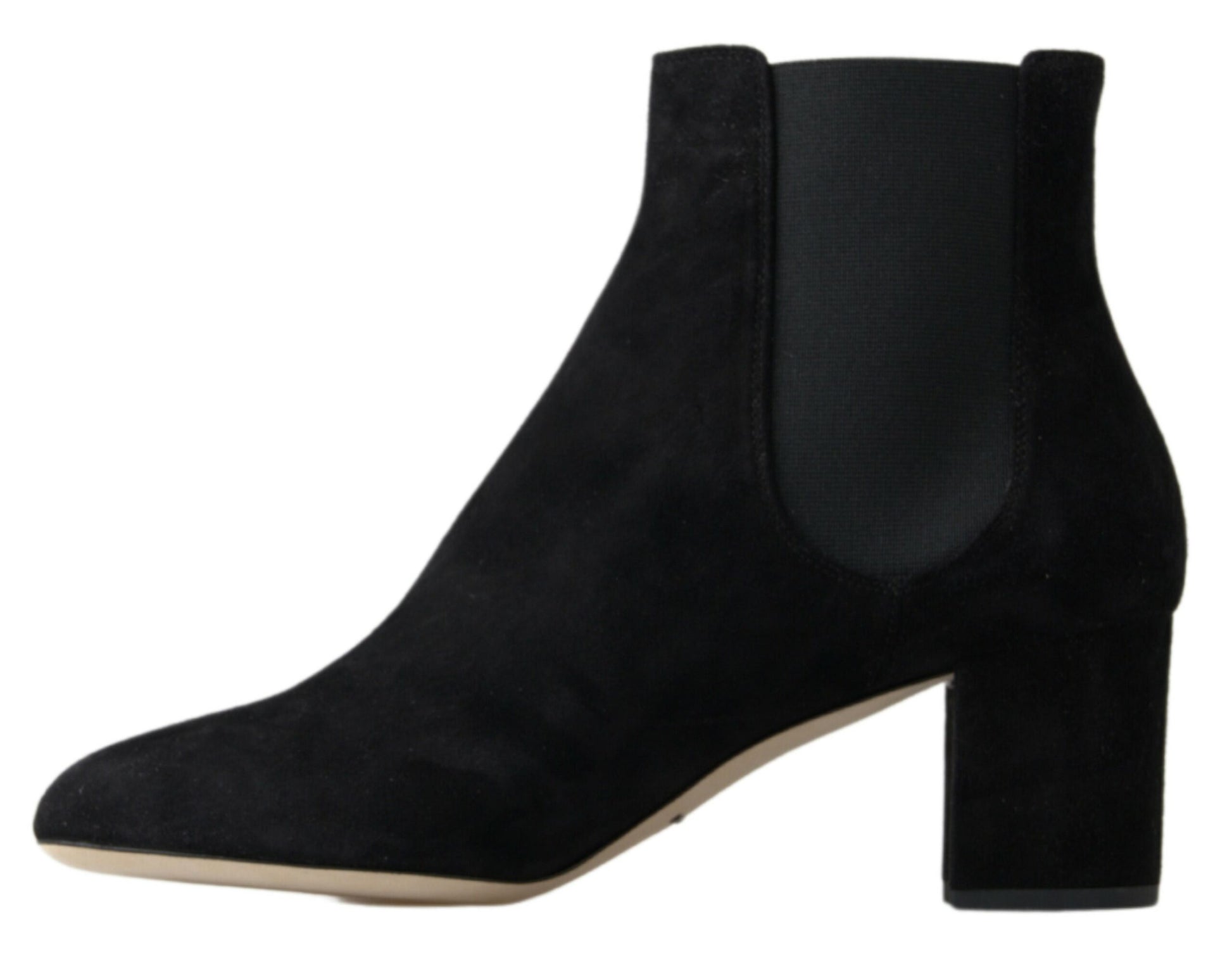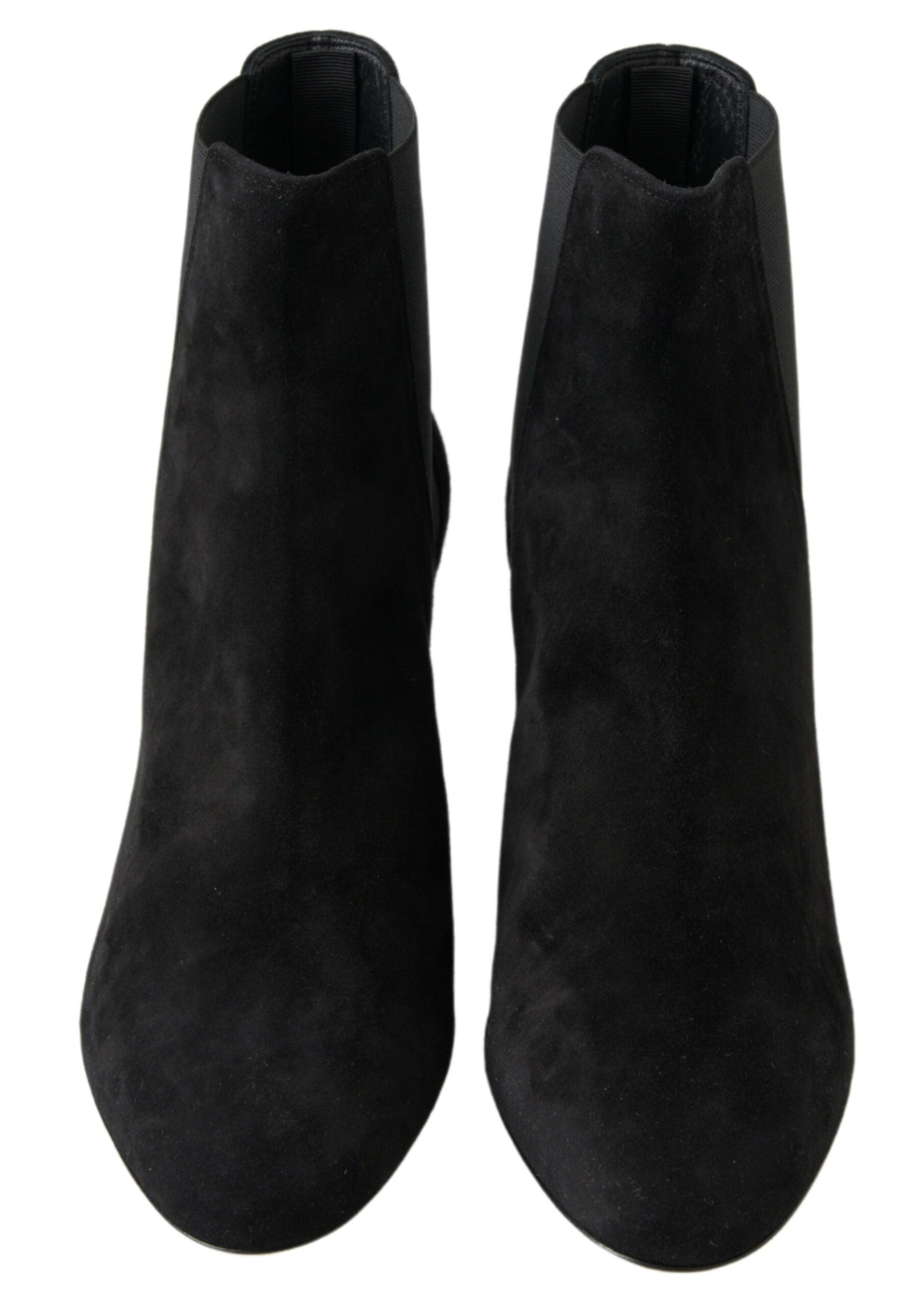 Step into luxury with these exquisite black ankle boots from Dolce & Gabbana. Expertly crafted with a blend of leather, polyester, and elastane, these boots are not just a fashion statement but also a testament to comfort and quality. The stretch band on both sides ensures easy entry and a snug fit, while the leather sole promises durability and a smooth stride. Indulge in Italian craftsmanship with these high-quality boots that feature subtle logo details for an understated yet sophisticated look.