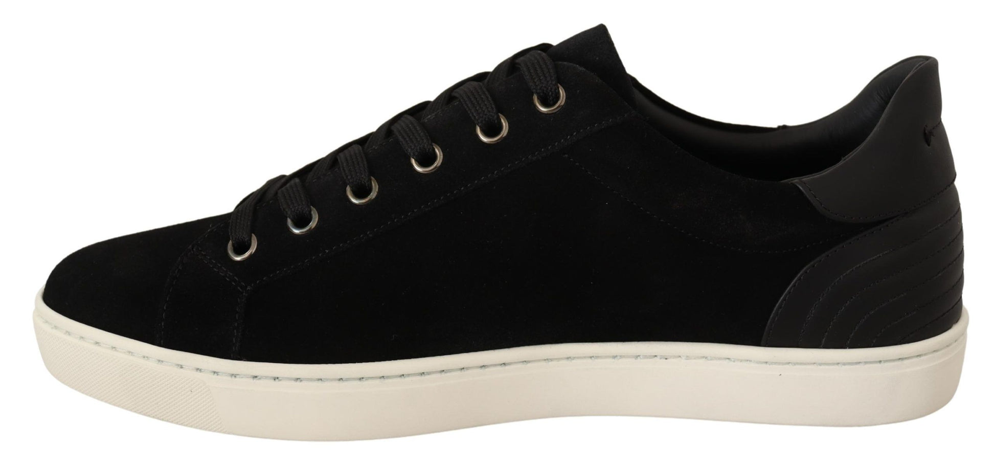 Step into luxury with these Elegant Black Leather & Suede Sneakers from Dolce & Gabbana. Beautifully crafted with 100% Authentic tags, these sneakers are a testament to excellent craftsmanship and Italian elegance. Perfect for casual outings, these sneakers provide both supreme style and comfort.