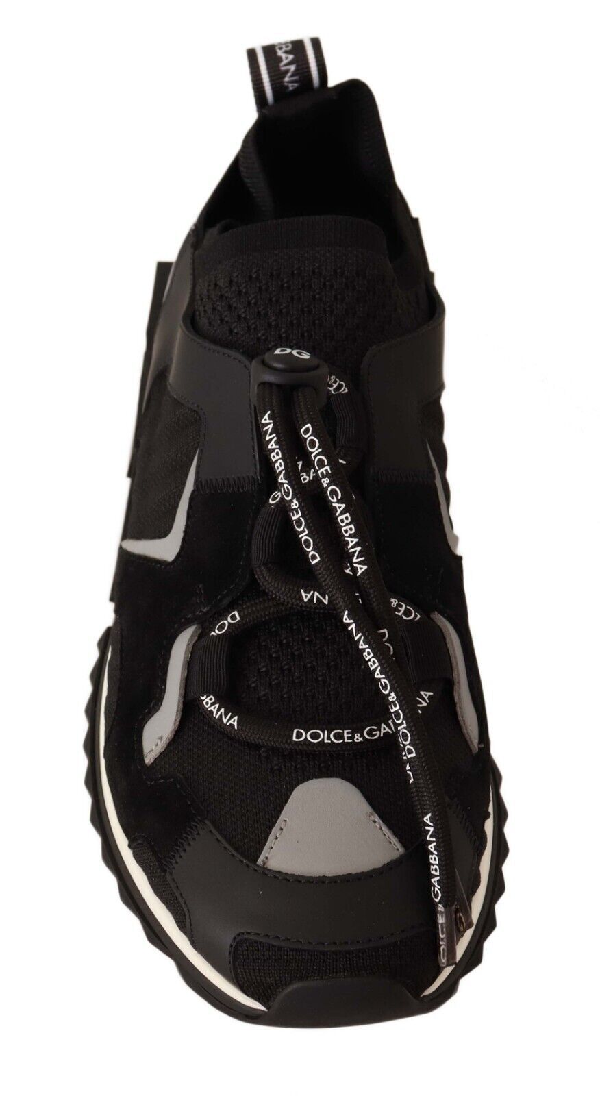 Step into luxury with these Dolce & Gabbana Black ‘sorrento’ lace-up sneakers. A perfect blend of style and comfort, these sneakers feature a form-fitting knitted upper with a snug sock-like rib edge. Adorned with a classy leather and suede finish, they boast a striking white graphic print with the iconic logo. Ideal for both casual and upscale looks, these sneakers will keep you on-trend wherever you go.