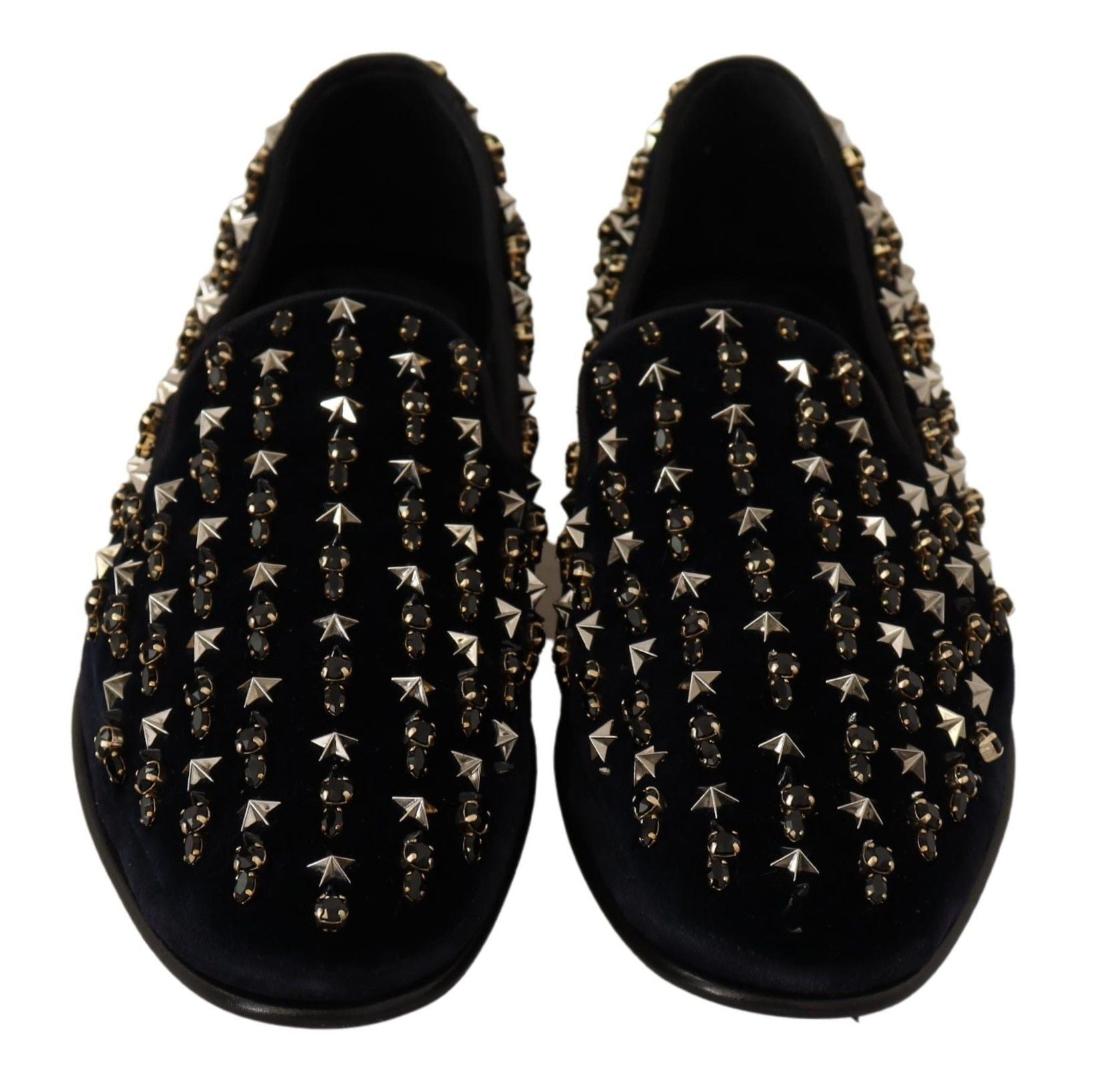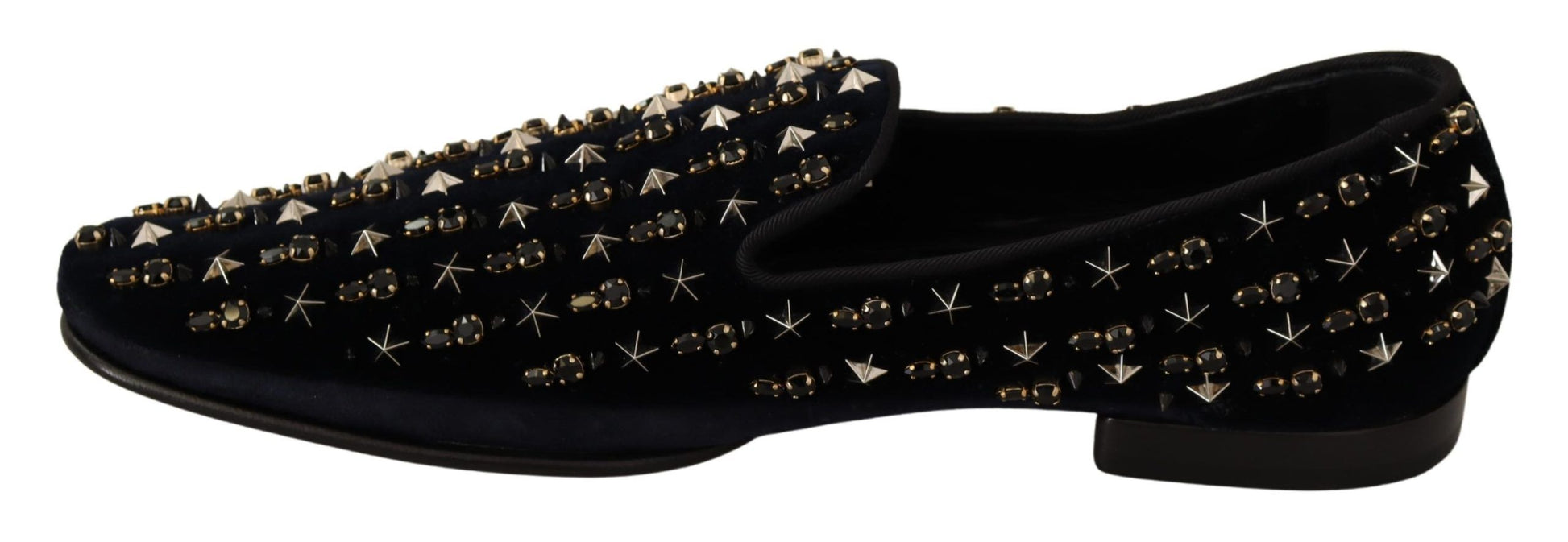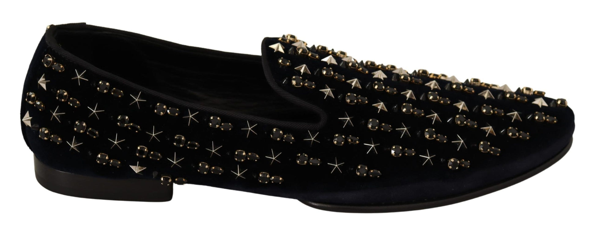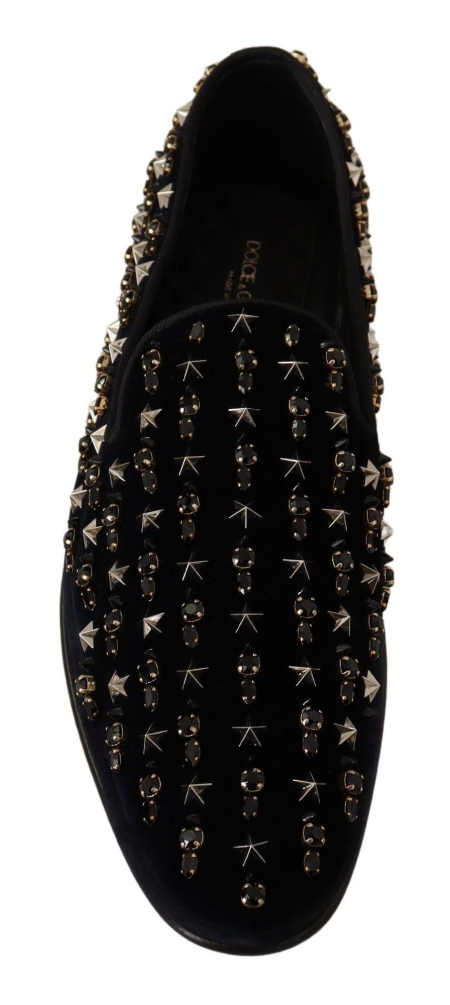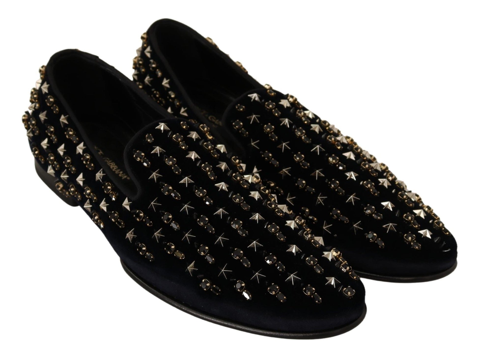 Indulge in the epitome of Italian elegance with these classic Dolce & Gabbana loafers, a true testament to refined luxury. Fashioned from sumptuous suede and soft velvet, these shoes are a perfect harmony of style and comfort. Adorned with striking black crystals, the loafers boast meticulous craftsmanship, making them a must-have for the discerning gentleman. Proudly made in Italy, these loafers are a flawless addition to any formal ensemble.