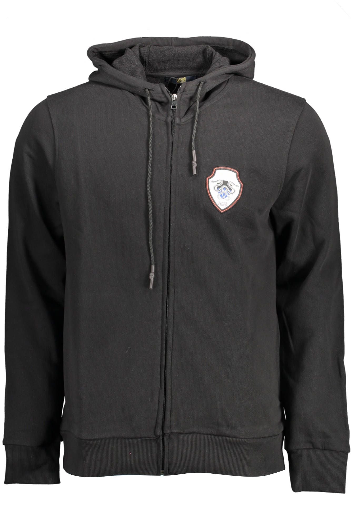 Embrace the epitome of contemporary luxury with the Cavalli Class hooded sweatshirt. Crafted with meticulous attention to detail, this sleek black garment offers both comfort and chic style. Its long sleeves and convenient zippered front make it a versatile addition to any modern wardrobe, while the refined logo application adds a touch of the brand’s signature sophistication. Finished with a cozy hood and two handy pockets, it’s perfect for elevating your everyday look with a dash of Cavalli Class extravagance.