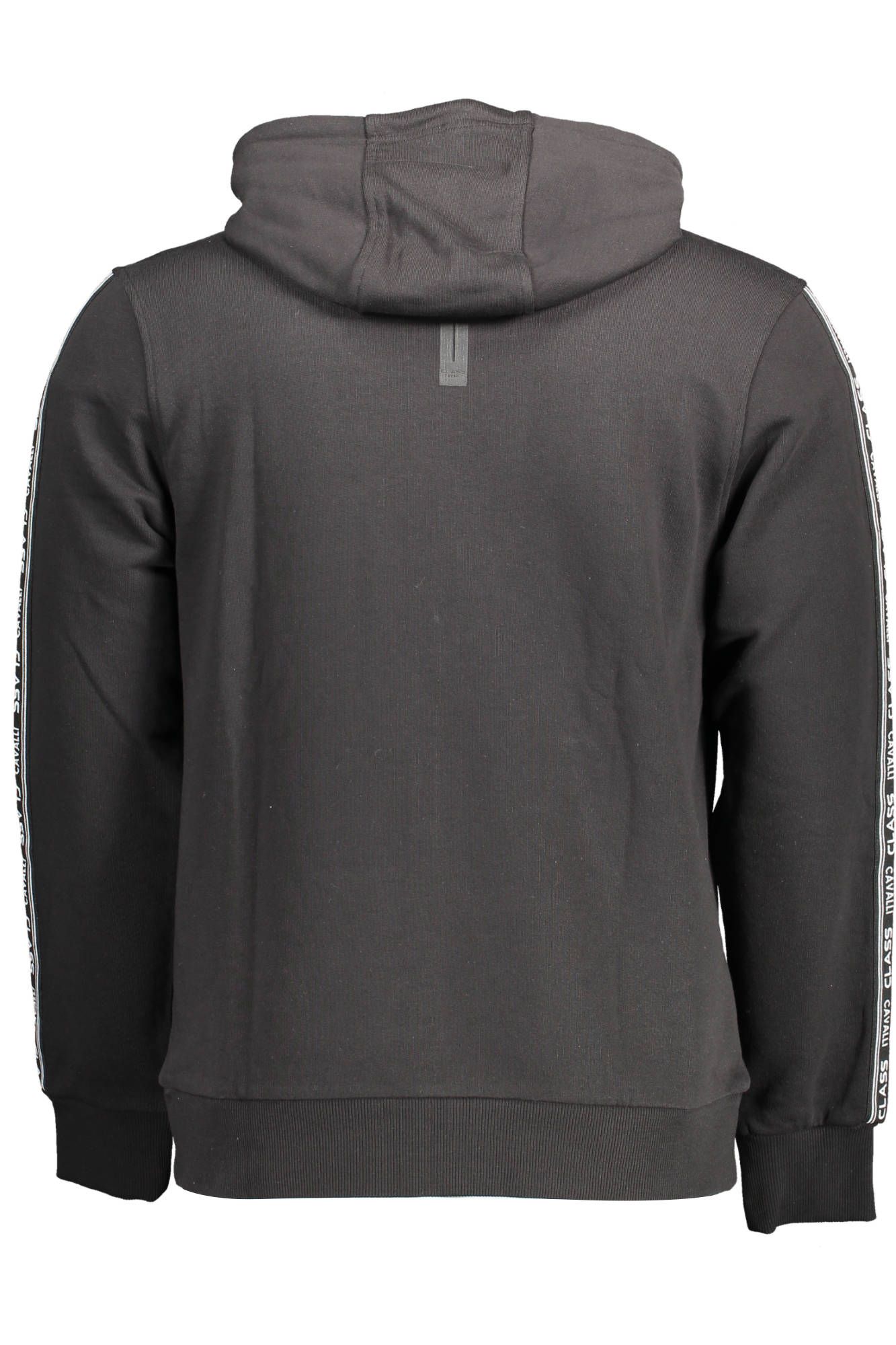 Unleash the epitome of urban sophistication with the Cavalli Class hooded sweatshirt. Designed for the modern man, this sleek black sweatshirt is accentuated with bold contrasting details and the iconic Cavalli Class logo for a dash of designer flair. Its comfortable cotton material and two central pockets blend functionality with style, while a front zip allows for versatility in wear. This piece is more than just a garment; it’s a statement.
