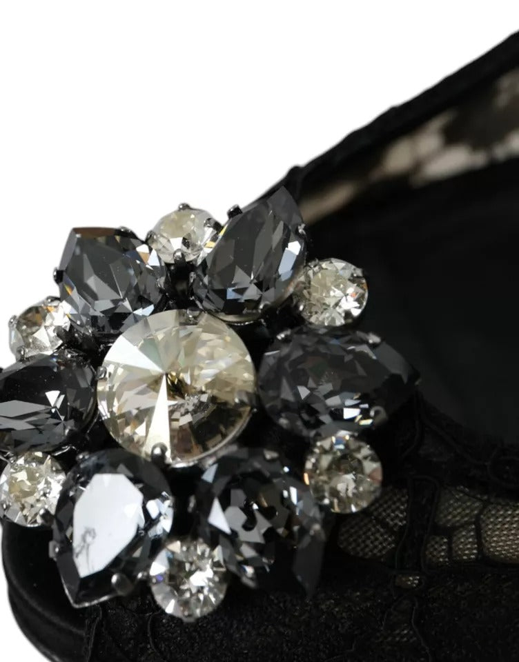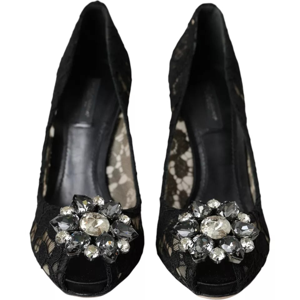 Black Taormina Lace Crystal Heel Pumps Shoes