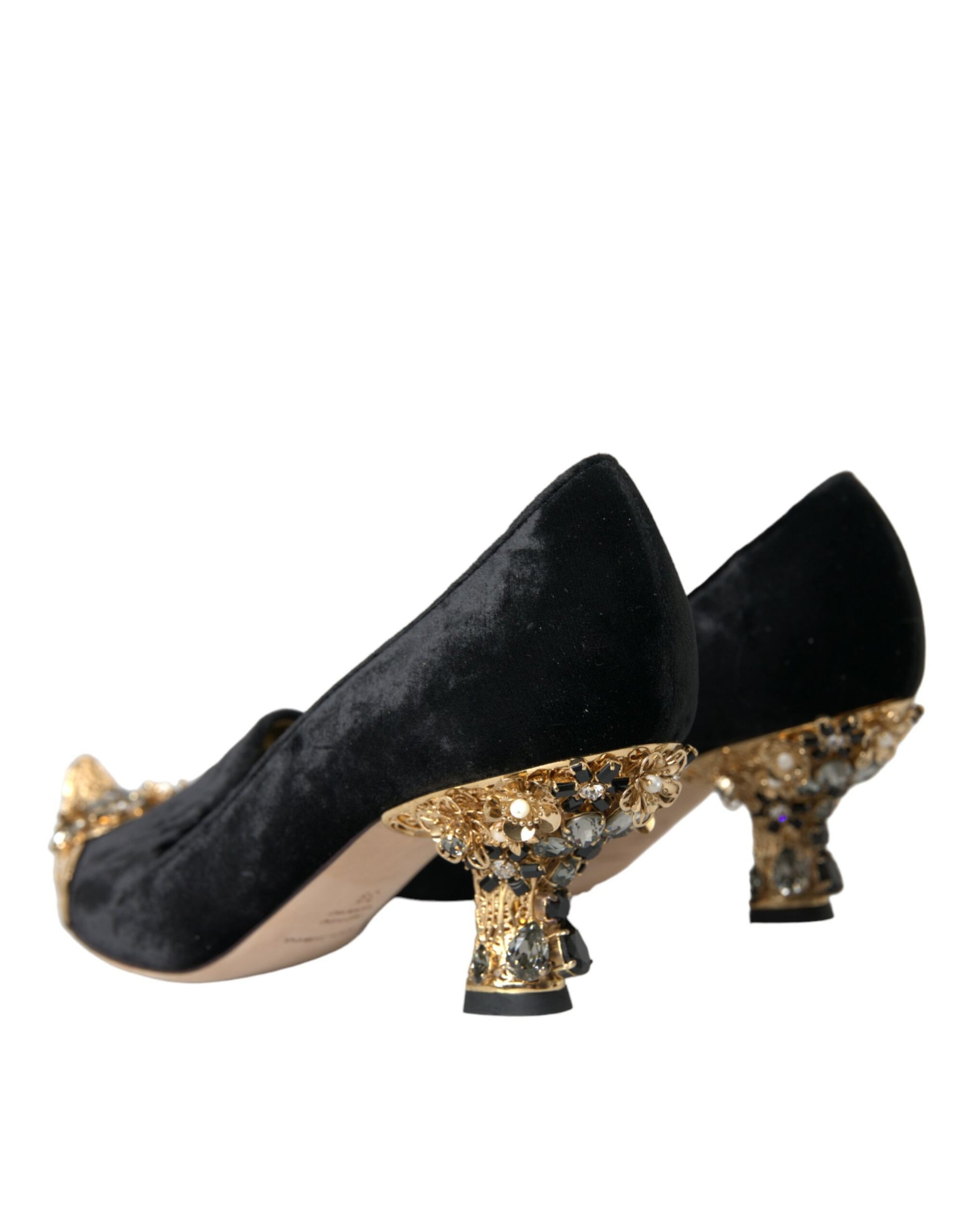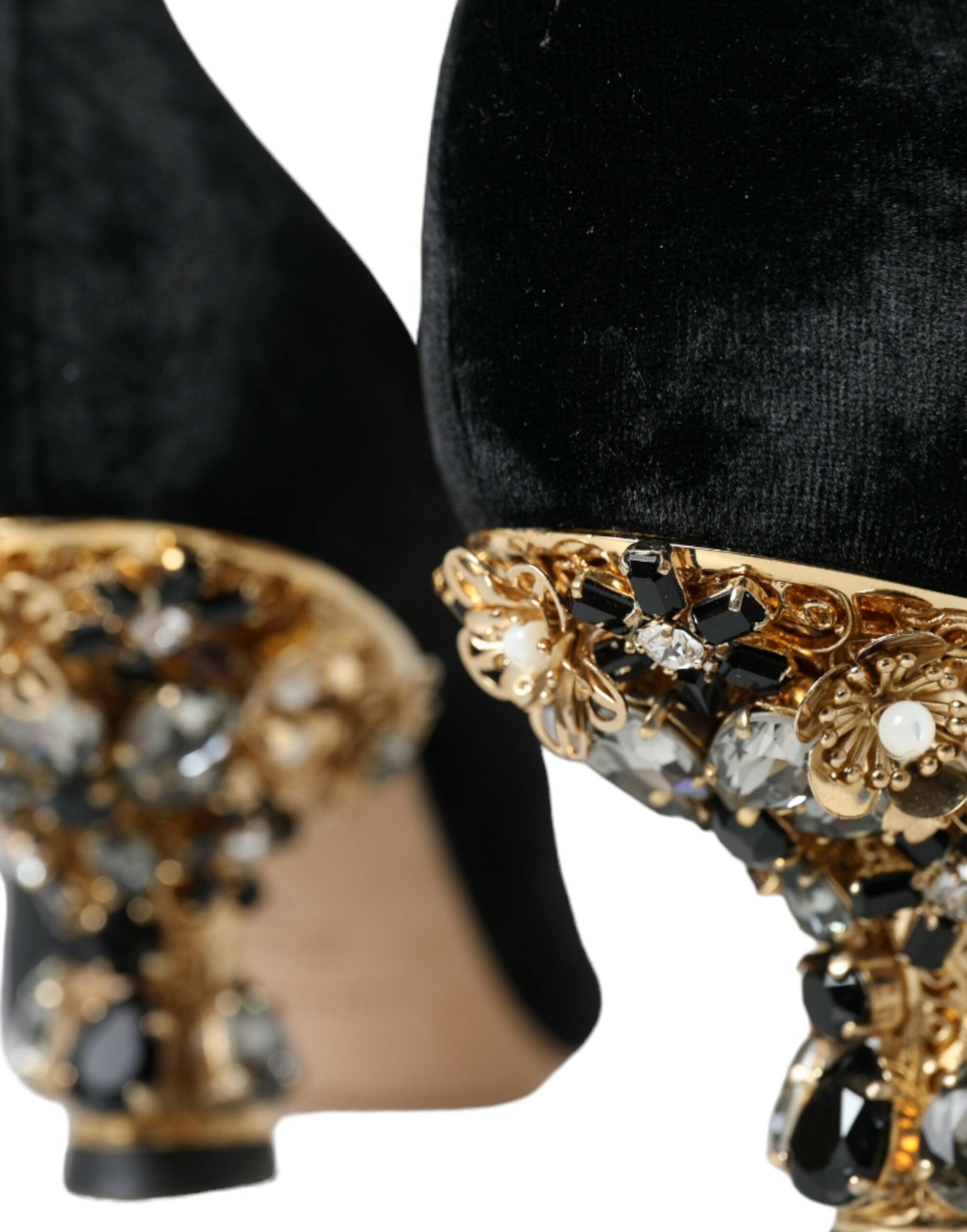 Black Velvet Embellished Heels Pumps Shoes