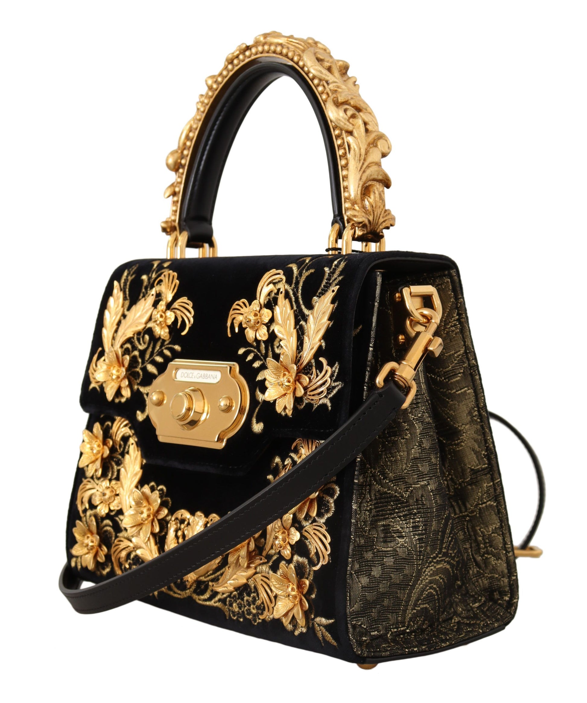 Indulge in the epitome of Italian luxury with this exquisite Dolce & Gabbana hand shoulder bag. With its opulent black brocade and gold baroque details, it’s a show-stopping addition to any ensemble. The practical yet elegant design boasts a secure push-lock flap closure and a meticulously organized interior with zipper pockets and two compartments. Crafted with expert precision, this bag is not just a carryall – it’s a statement of sophistication and high fashion craftsmanship.