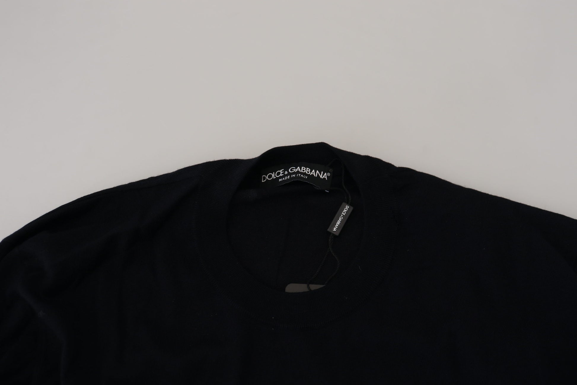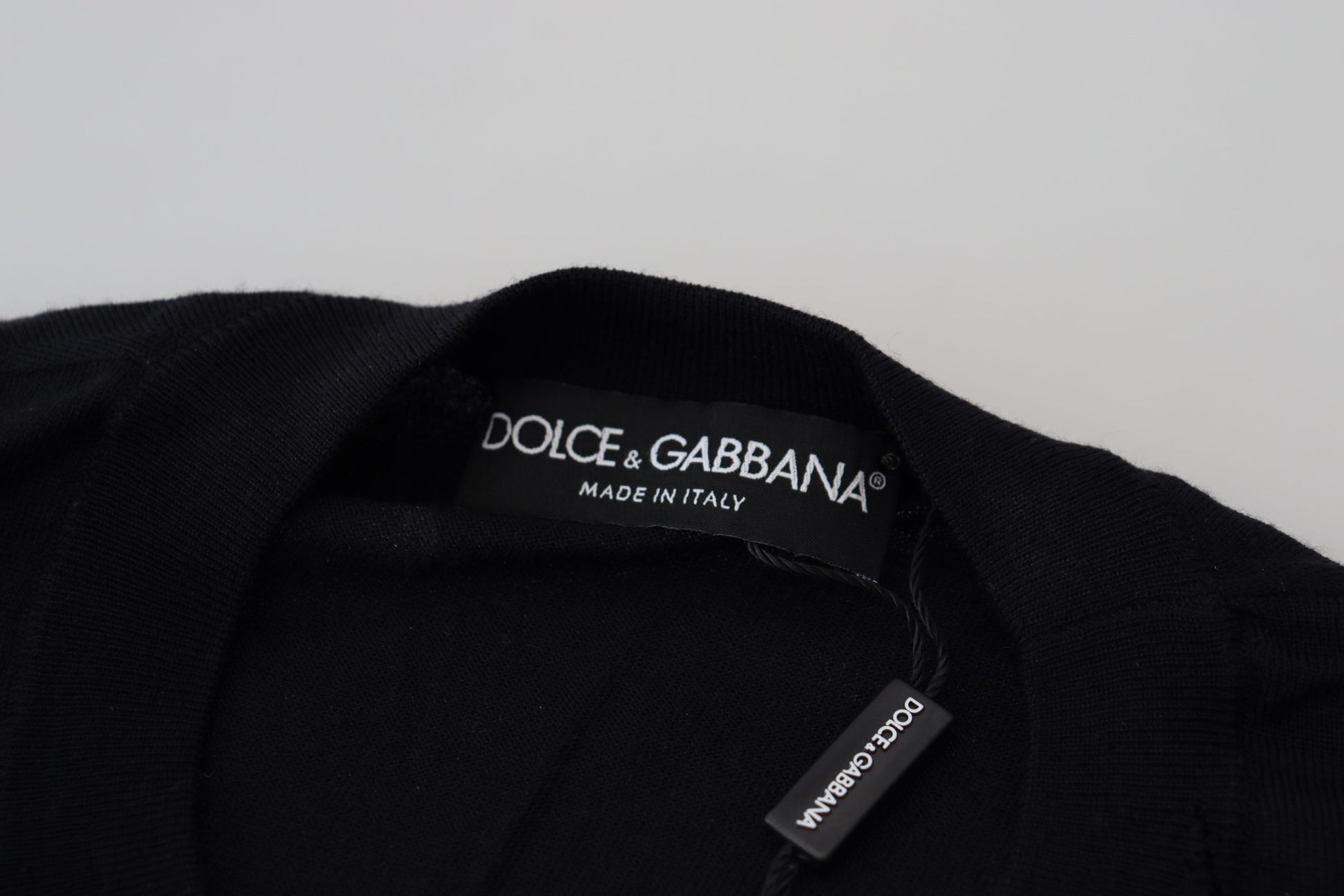 Indulge in the epitome of luxury with this chic and sophisticated pullover sweater from Dolce & Gabbana. Made in Italy, this 100% authentic sweater is not only a mark of high fashion but also a testament to timeless style. Its sleek black hue and subtle logo details add a touch of elegance, making it a perfect addition to your wardrobe for any occasion.