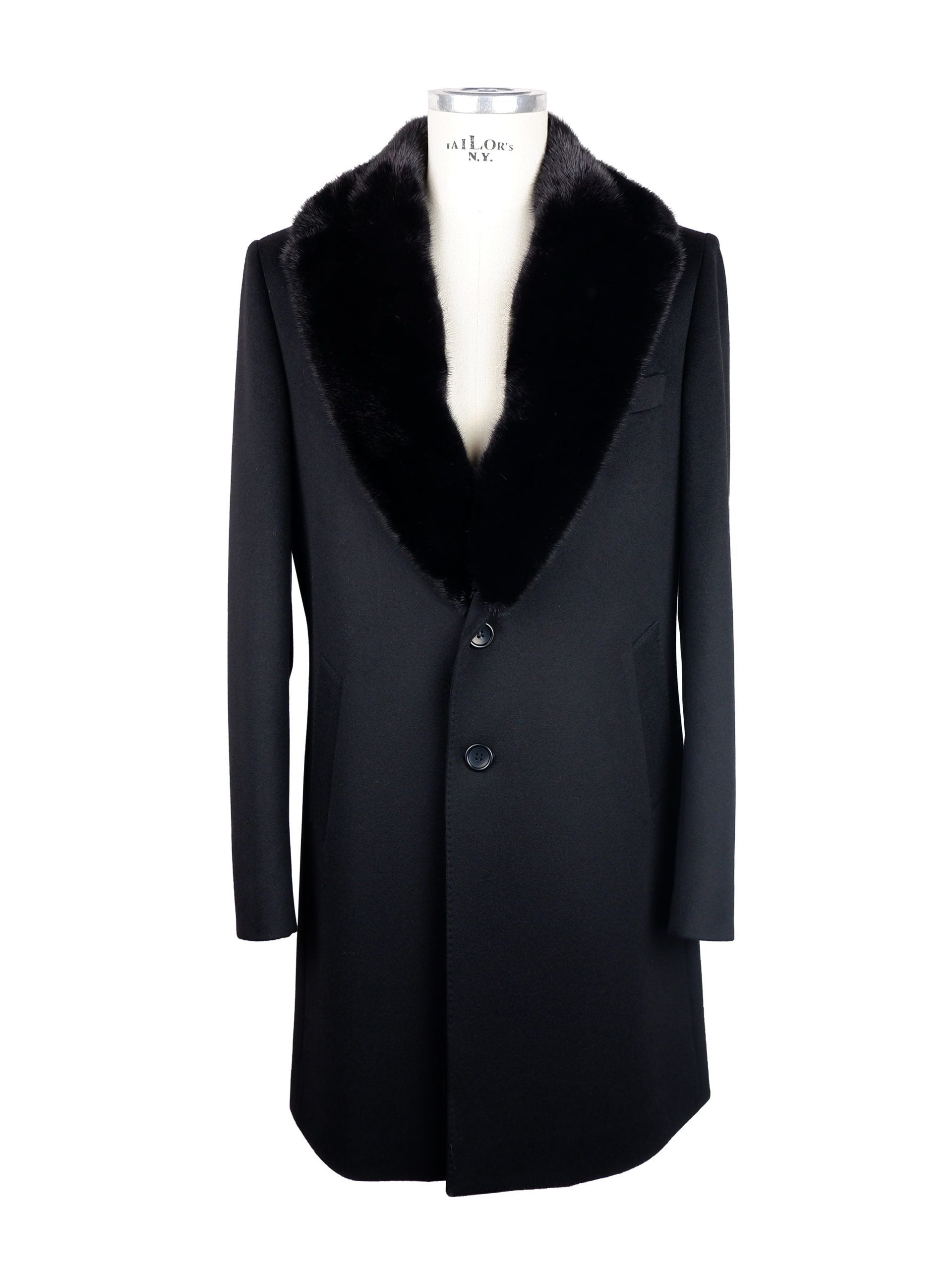 Elevate your outerwear repertoire with the pristine craftsmanship of the ‘Made in Italy’ Loro Piana Fabric Coat. This timeless black beauty boasts luxurious 100% lana vergine and features a sophisticated front button closure. The real mink fur collar, effortlessly detachable, adds a dimension of opulence to this impeccably padded piece. Imbued with the essence of Italian tailoring, it’s a testament to sartorial excellence.