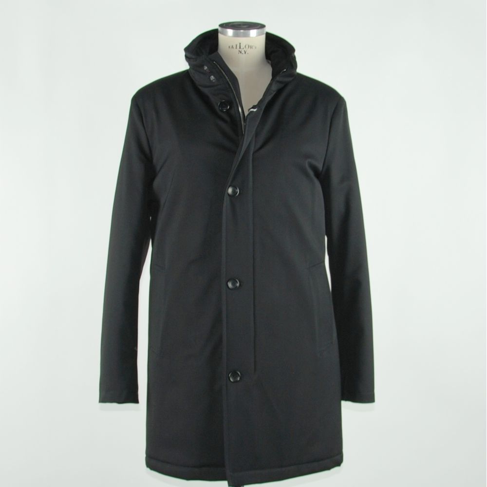Elevate your wardrobe with the quintessence of Italian craftsmanship—’Made in Italy’ presents an immaculate black jacket that promises not just to shield you from the elements but to do so in the epitome of style. With a sophisticated blend of 98% virgin wool and 2% elastane, this jacket grants both comfort and a refined edge. Masterfully constructed in Italy, it is the perfect piece for the modern man who values quality and timeless elegance.