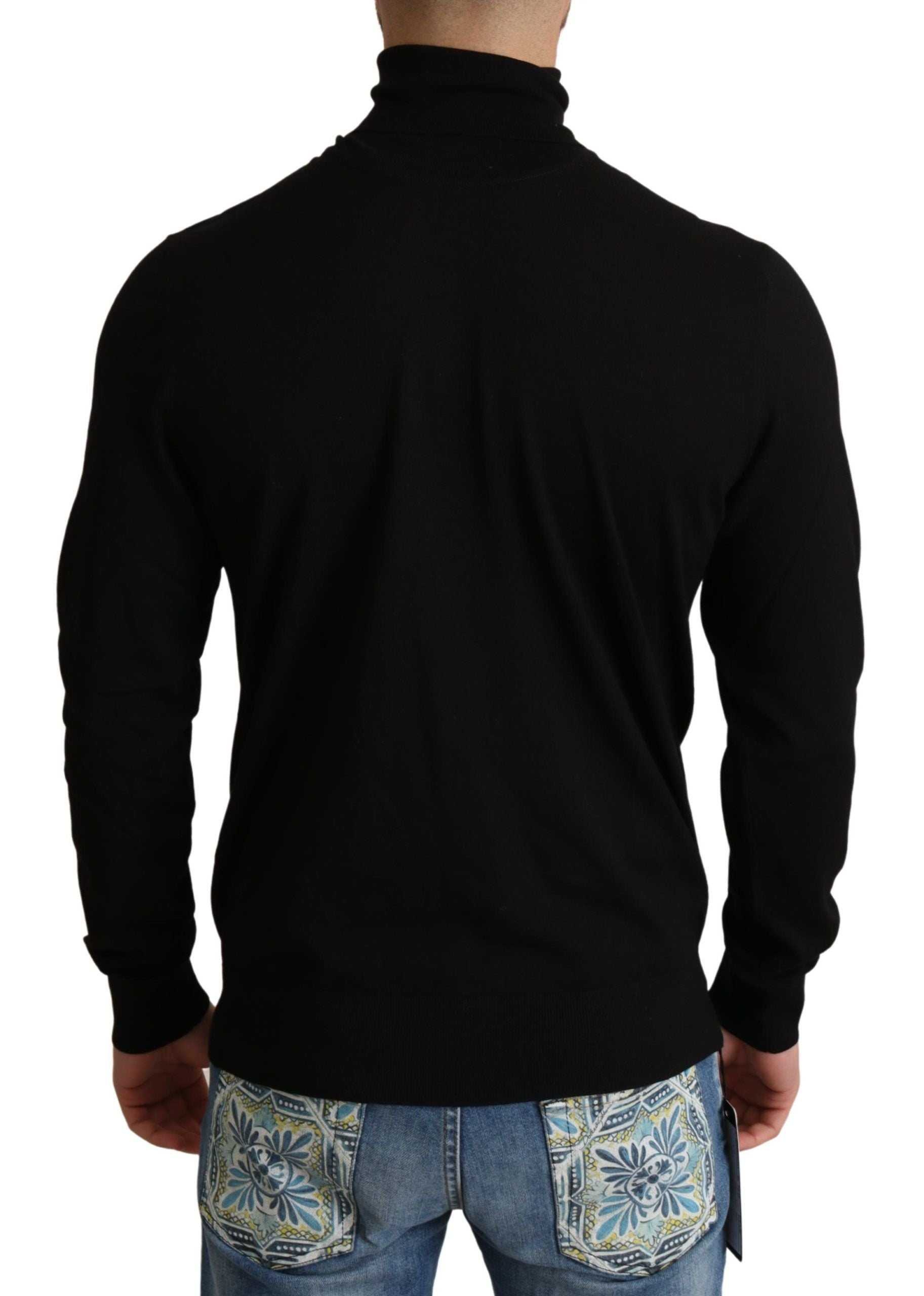 Indulge in the luxurious warmth of this sophisticated turtleneck sweater by Dolce & Gabbana. Perfect for refined gentlemen, the pullover design is made from 100% virgin wool, ensuring a soft and comfortable experience. Its sleek black color provides a versatile and timeless look. Embellished with subtle logo details, this sweater embodies Italian craftsmanship and is an essential addition to any wardrobe.