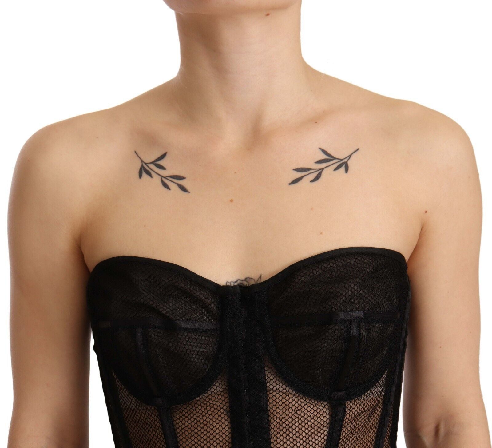 Indulge in the epitome of sophistication with our stunning corset top. A perfect blend of elegance and style, this garment is fashioned from luxurious 100% Viscose that gracefully hugs your silhouette. Its chic black hue and exquisite logo detailing radiate the unparalleled craftsmanship of Dolce & Gabbana. Crafted in the heart of Italy, it’s an impeccable choice for those seeking to elevate their wardrobe.