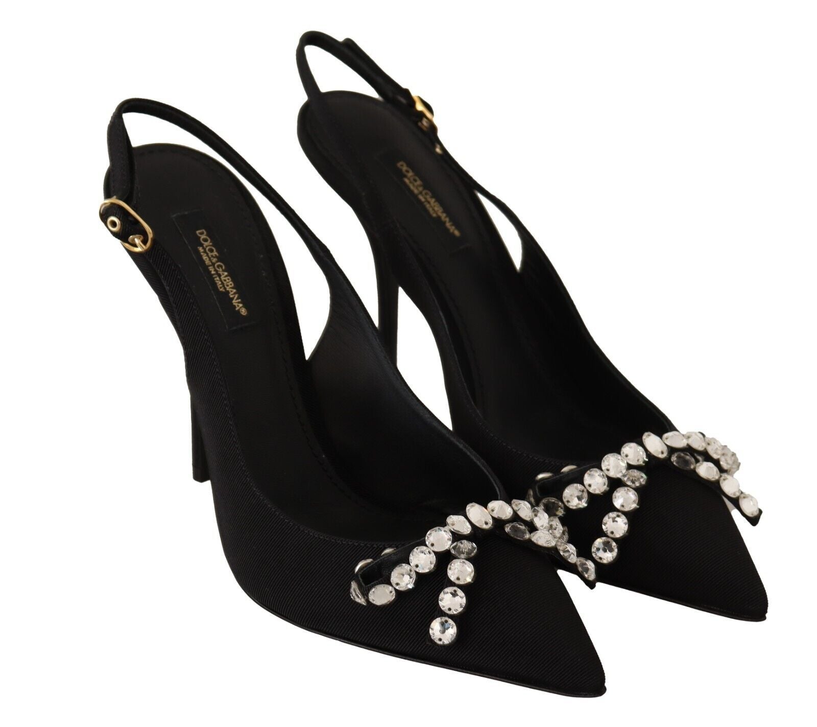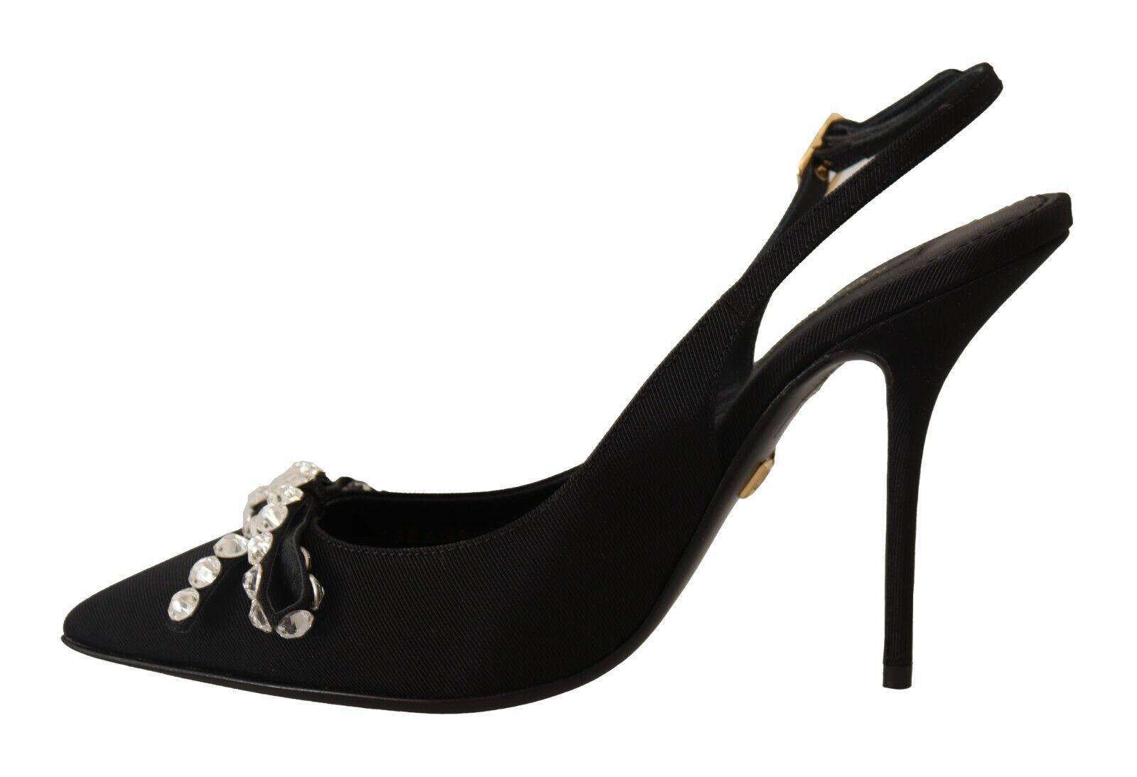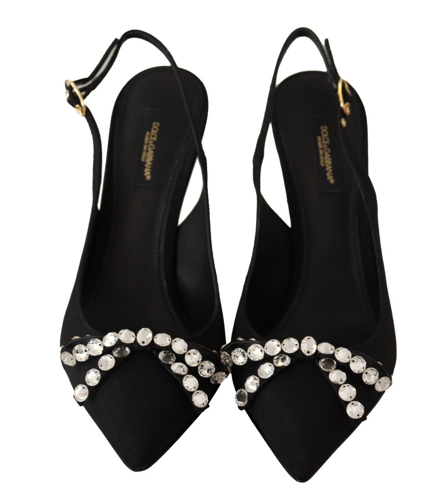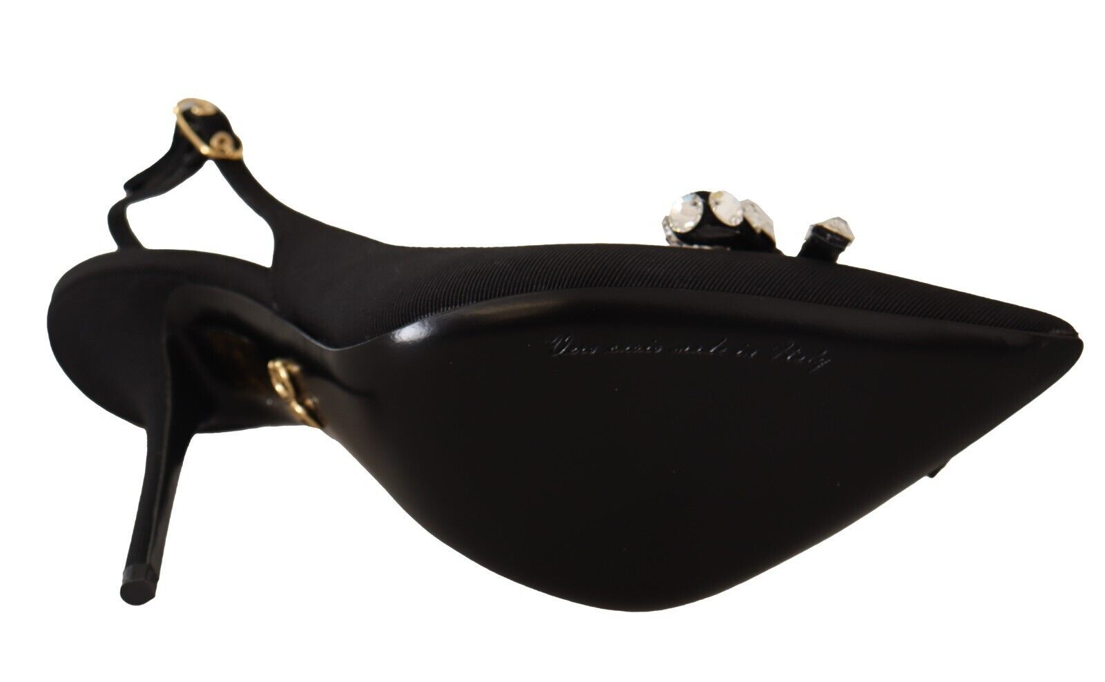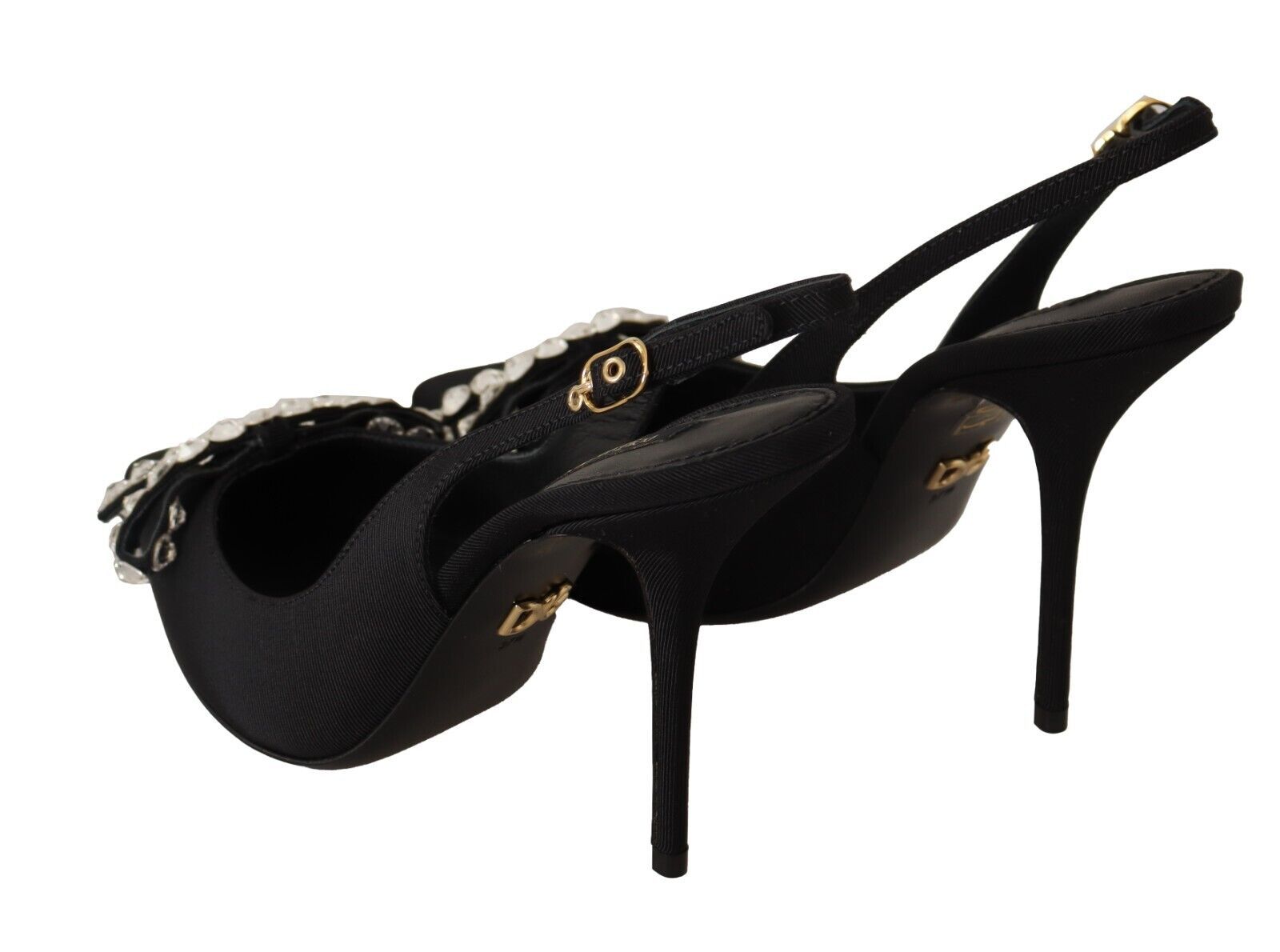 Step into a world of elegance with these stunning slingback heels from Dolce & Gabbana. Adorned with eye-catching clear crystals, these heels are brand new with tags, ensuring their authenticity and top-tier status. Made in Italy, they epitomize luxury with every step. The sleek black color and premium viscose material promise to complement any high-fashion ensemble, making them a must-have in your wardrobe.