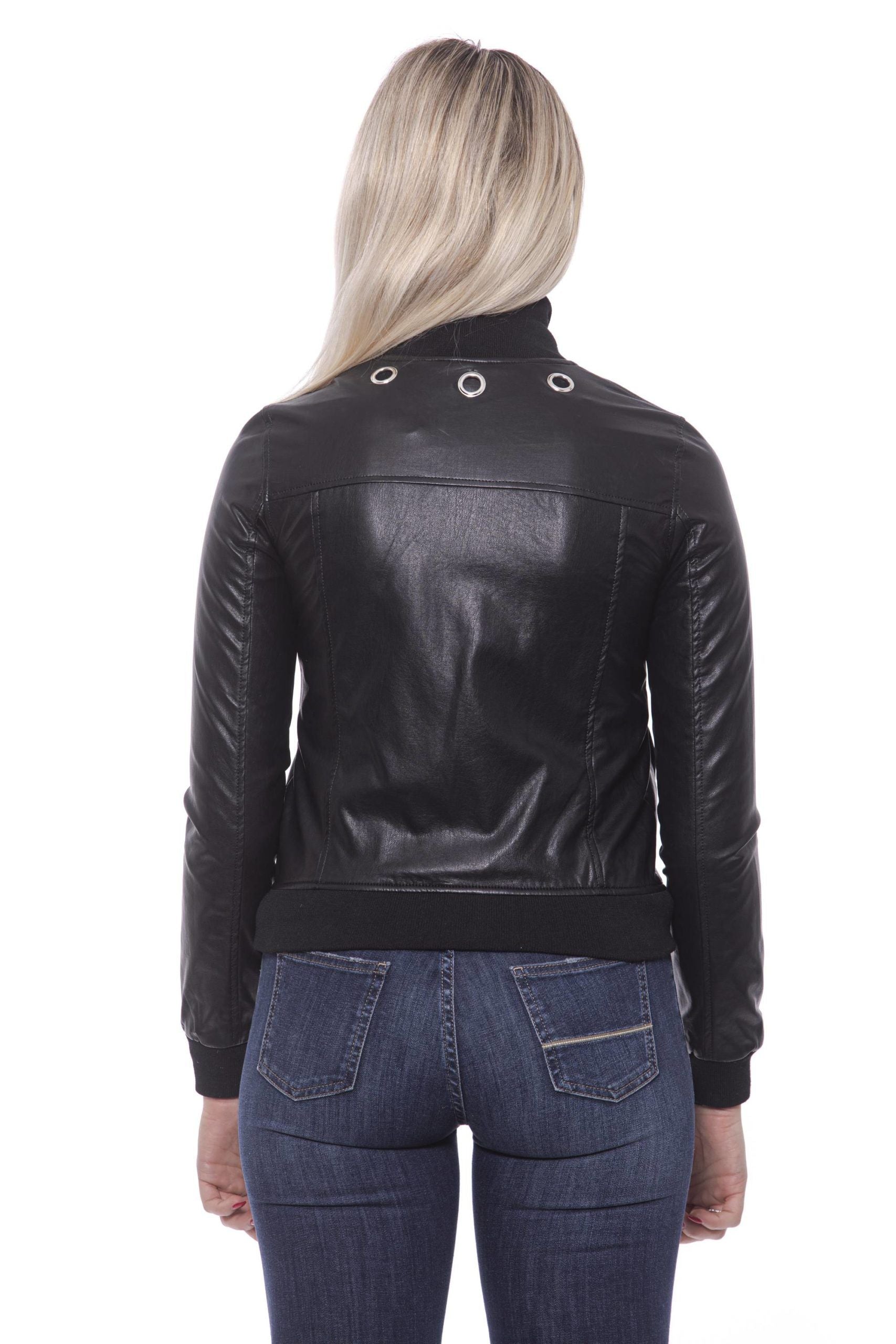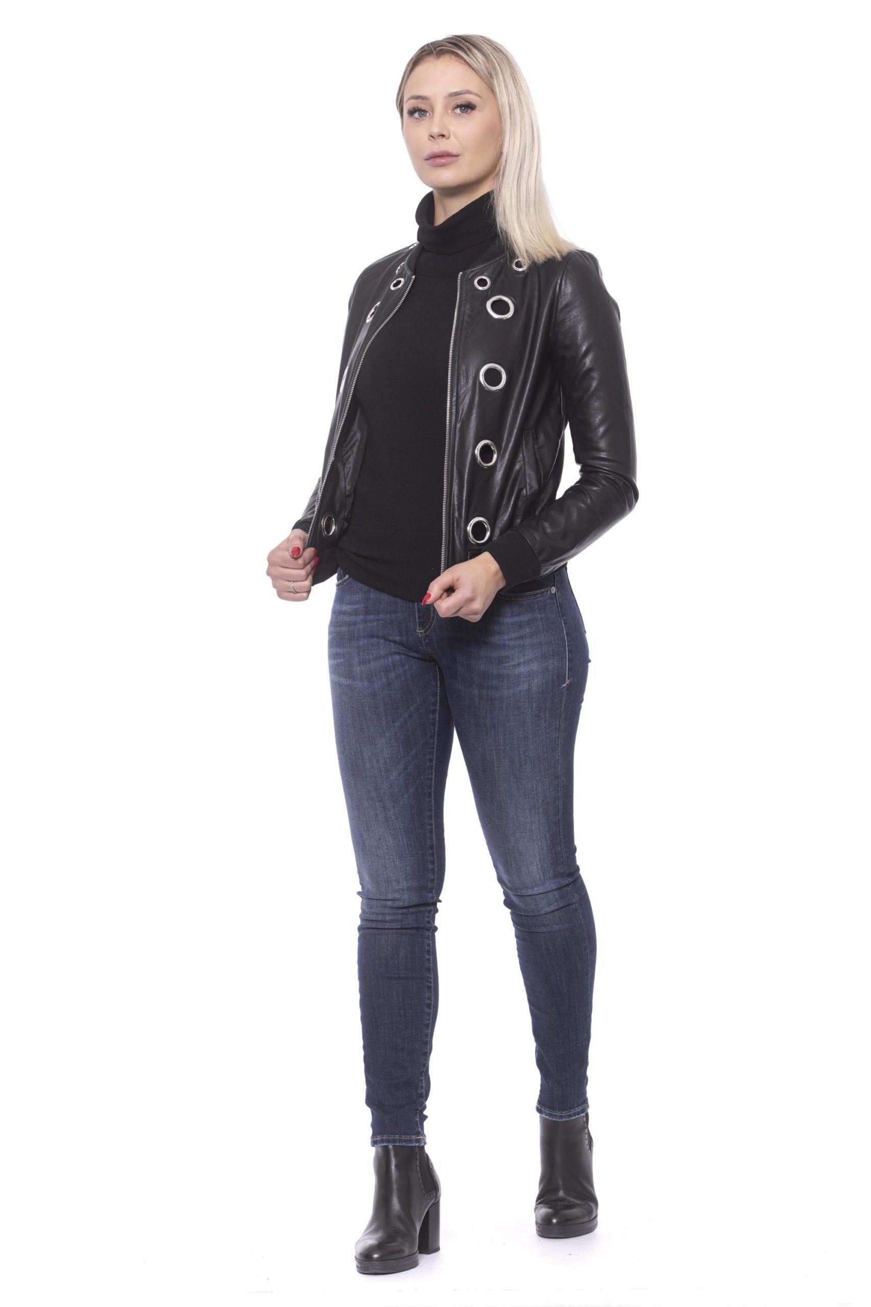 Exude edgy sophistication in the 19V69 Italia Slim Woman Jacket, crafted from premium eco-leather for an environmentally conscious fashion statement. The sleek black hue complements the shining metal stud detailing, creating an eye-catching contrast that elevates your style. Perfectly structured with a zip closure and convenient welt pockets, this jacket is a versatile addition to your wardrobe, seamlessly transitioning from day-to-night attire.