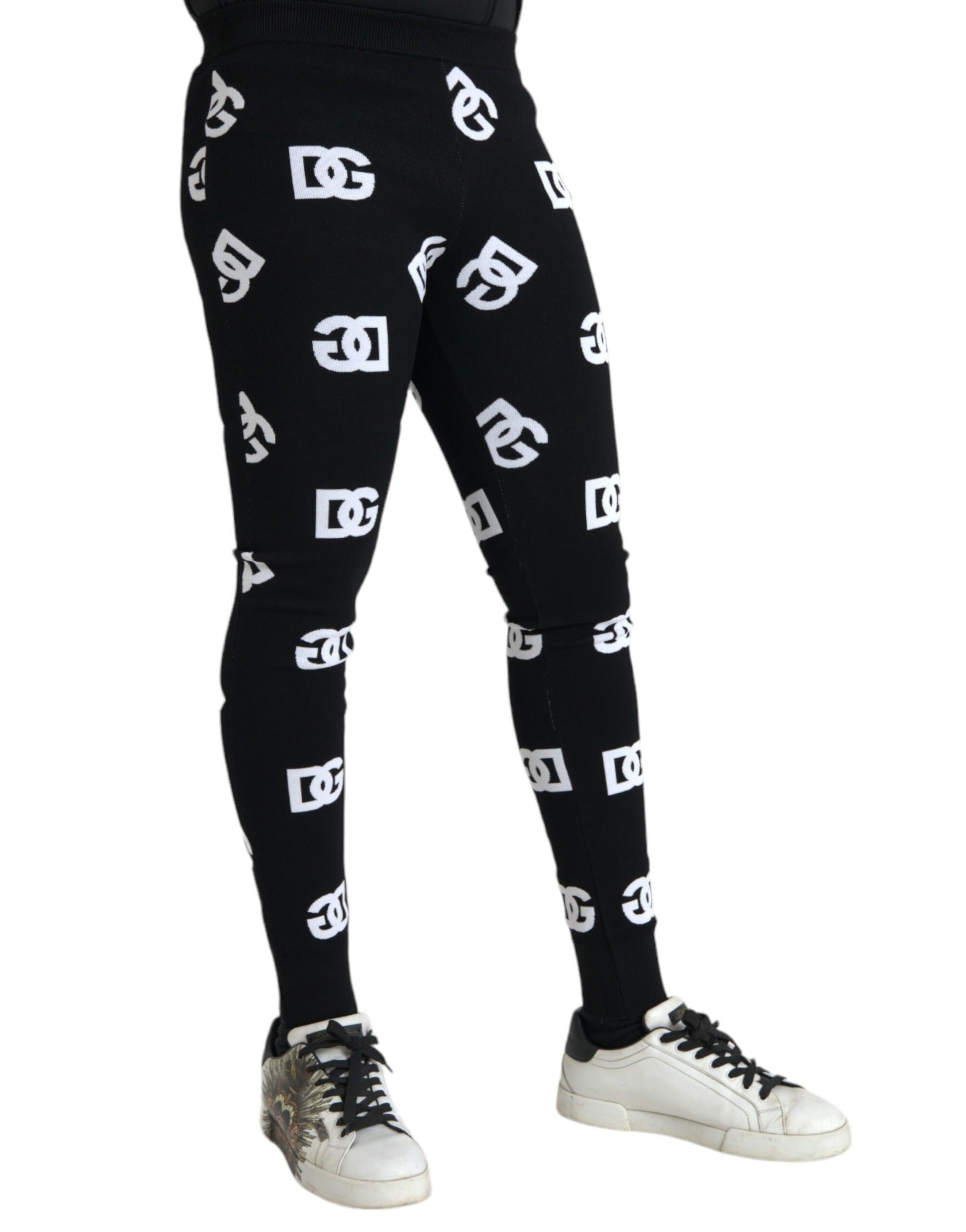 Black Viscose Skinny Men Leggings Logo Print Pants
