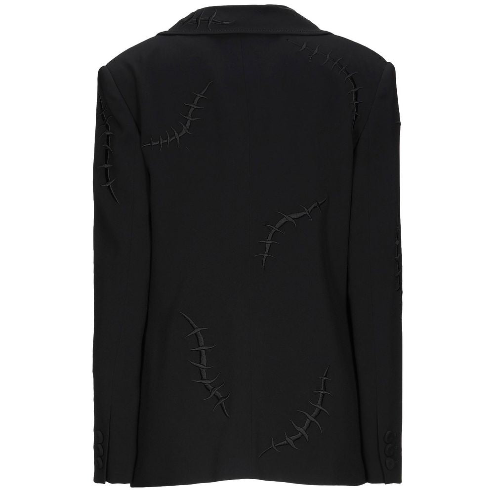 Infuse your professional wardrobe with a touch of Italian elegance with this exquisite crepe blazer jacket, adorned with intricate embroidery. The sophisticated design features a classic collar with lapels, a single-button closure for a sleek silhouette, and two front pockets for functionality. Crafted in Italy, its lined interior adds comfort and finesse.