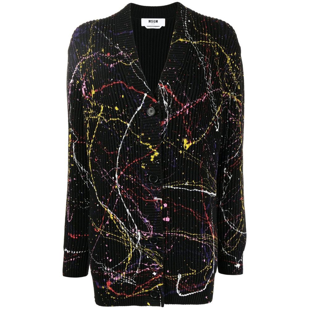 MSGM ribbed viscose blend V-neck cardigan, multicolor splatter print, button closure