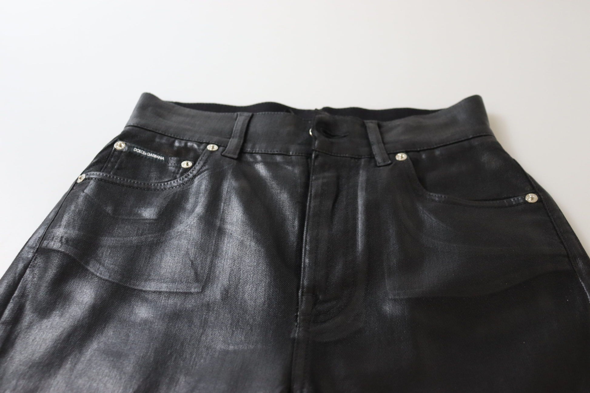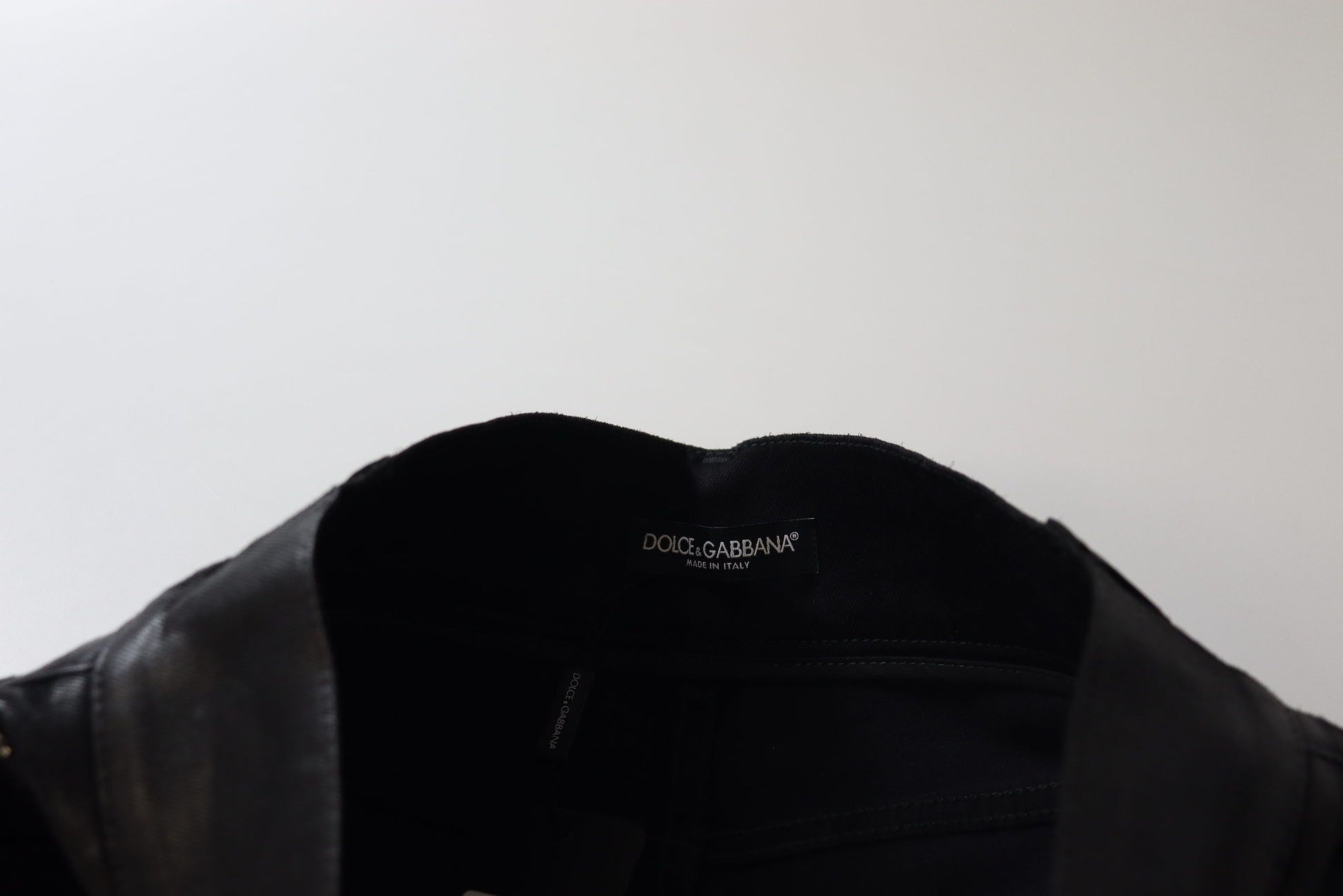 Experience the epitome of Italian craftsmanship with these gorgeous, brand new high-waisted skinny pants from Dolce & Gabbana. Meticulously crafted from premium cotton, these pants feature a sleek black hue that grants versatility and sophistication to your wardrobe. Designed for a flattering fit, they boast a zipper and button closure, ensuring a seamless silhouette. The iconic logo detail subtly enhances their designer appeal, making them a must-have for fashion connoisseurs.