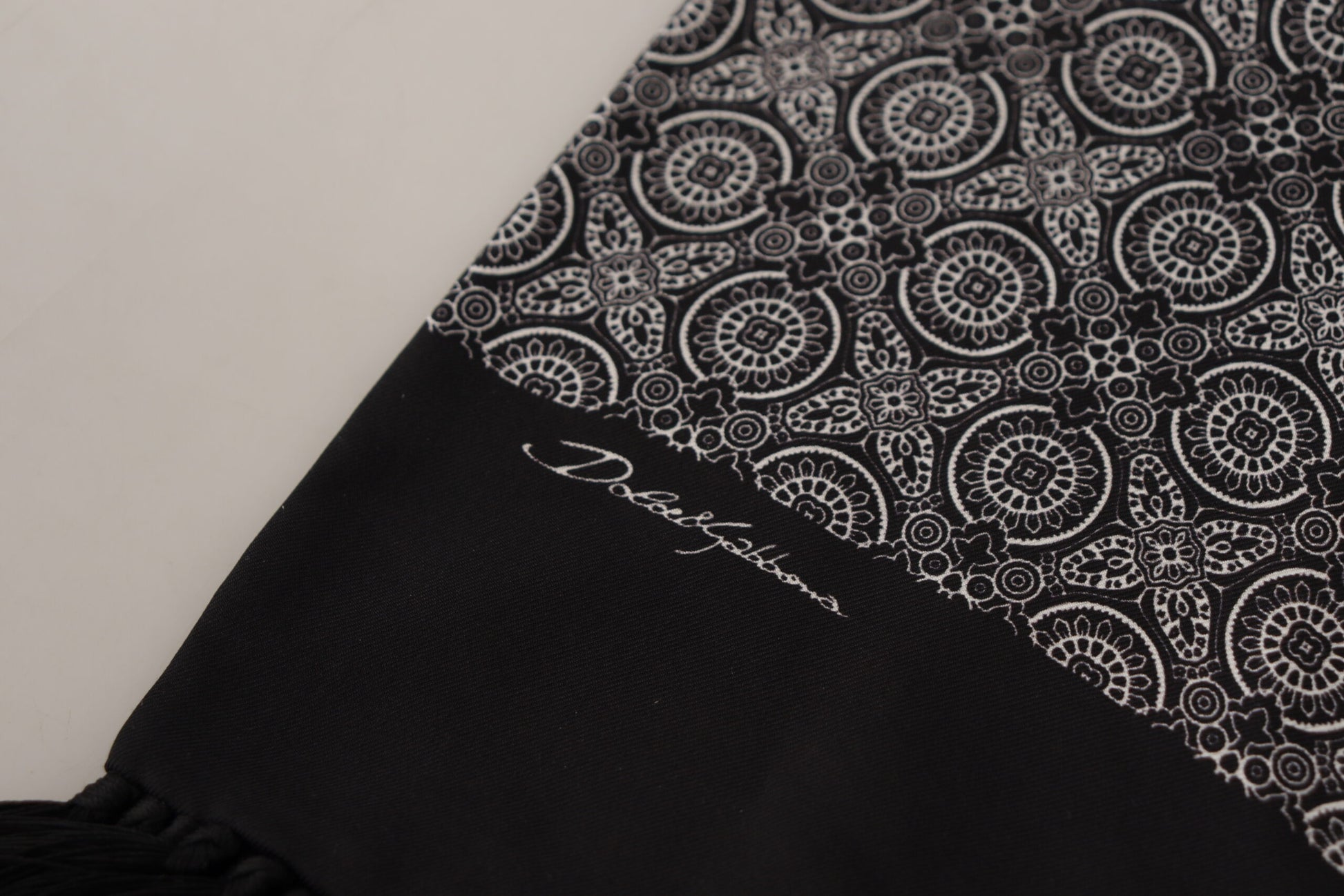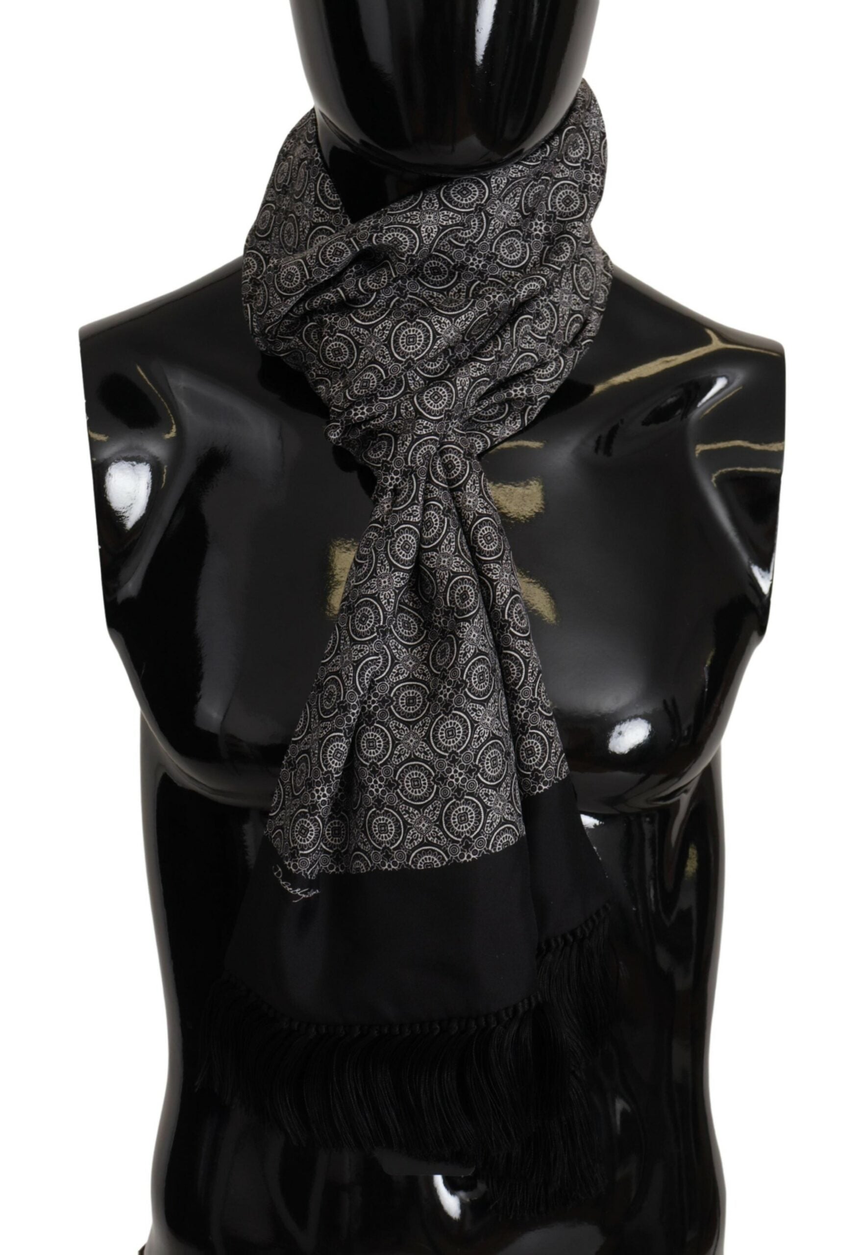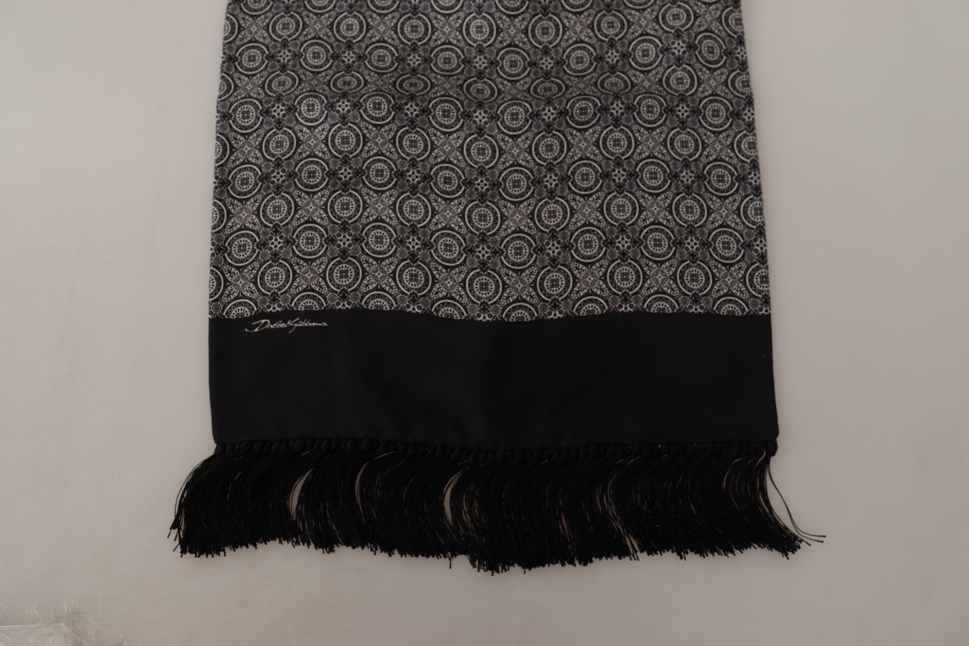 Indulge in the epitome of luxury with our exquisite, brand new Men’s Scarf Wrap. This 100% Authentic piece from Dolce & Gabbana is a testament to classic elegance with its sophisticated black and white baroque pattern. Made in Italy, this scarf is not only a stylish accessory but also an embodiment of high-end craftsmanship.
