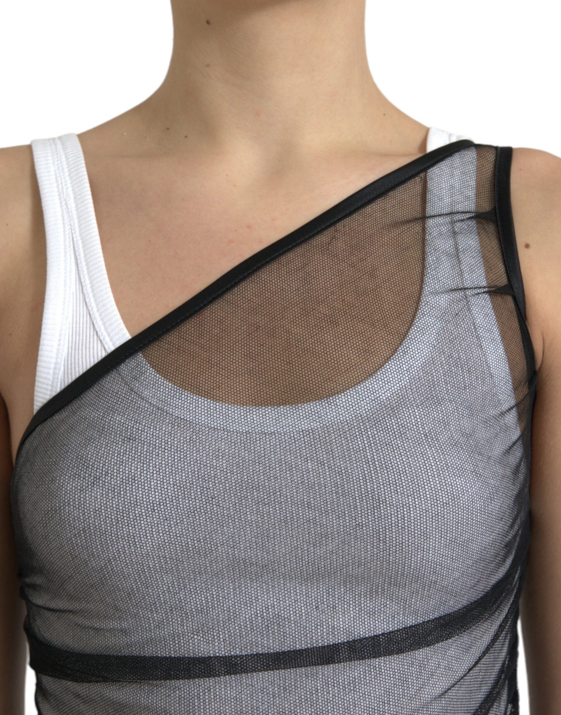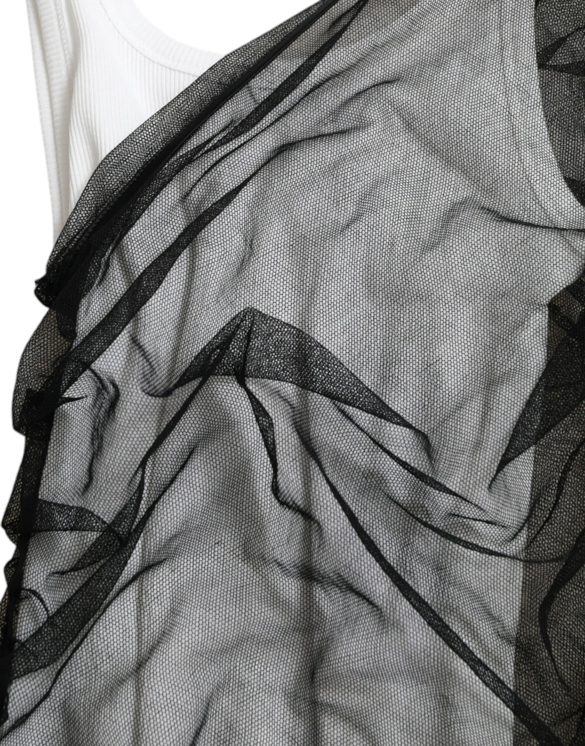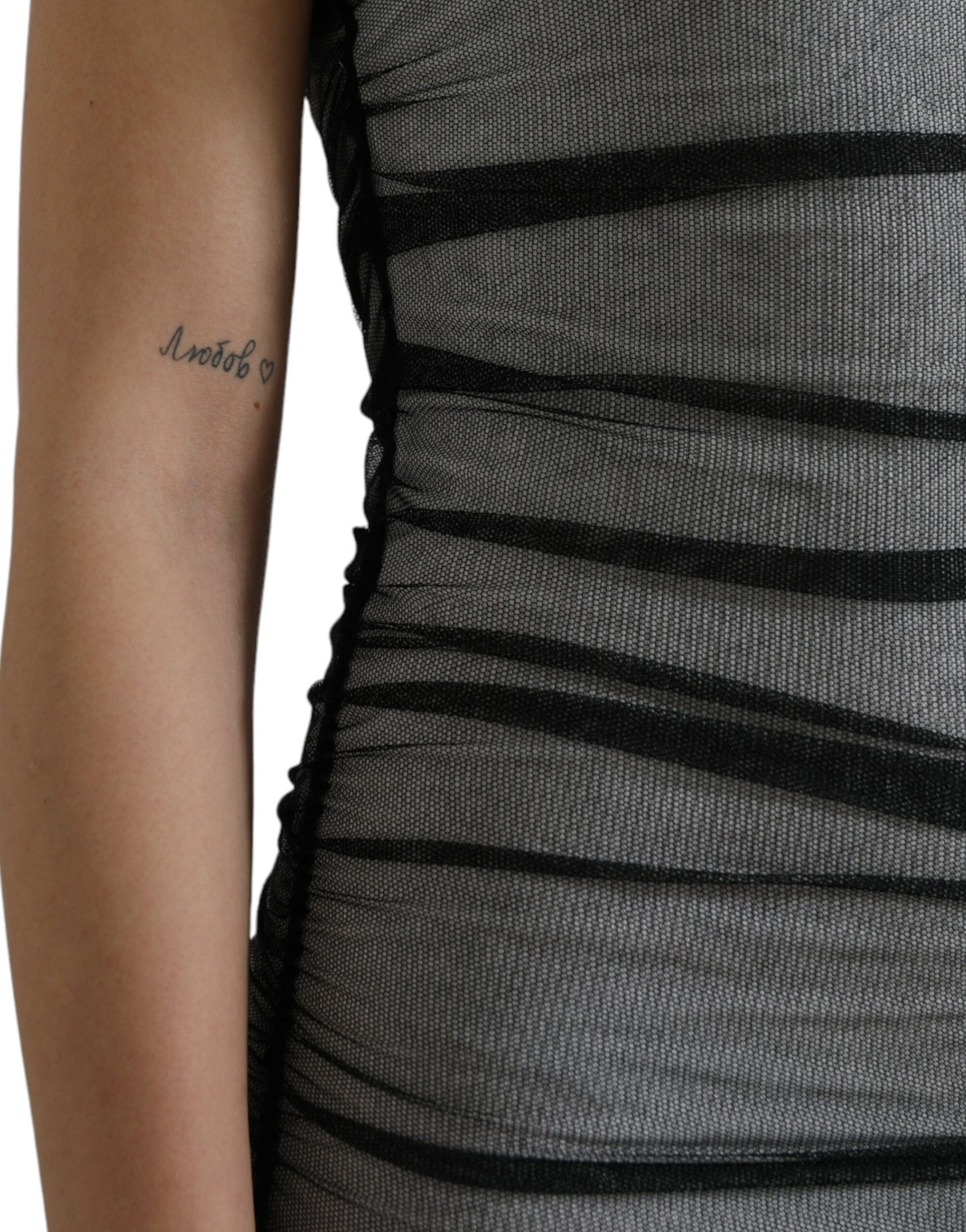 Discover the epitome of Italian chic with the stunning midi dress from Dolce & Gabbana. This beautiful sheer sleeveless bodycon dress exudes sophistication and glamour, making it the perfect choice for any high-end social event. Crafted from 100% pure cotton, the dress offers both comfort and unparalleled style. The black and white design is a timeless classic, while the logo details add a dash of iconic luxury.