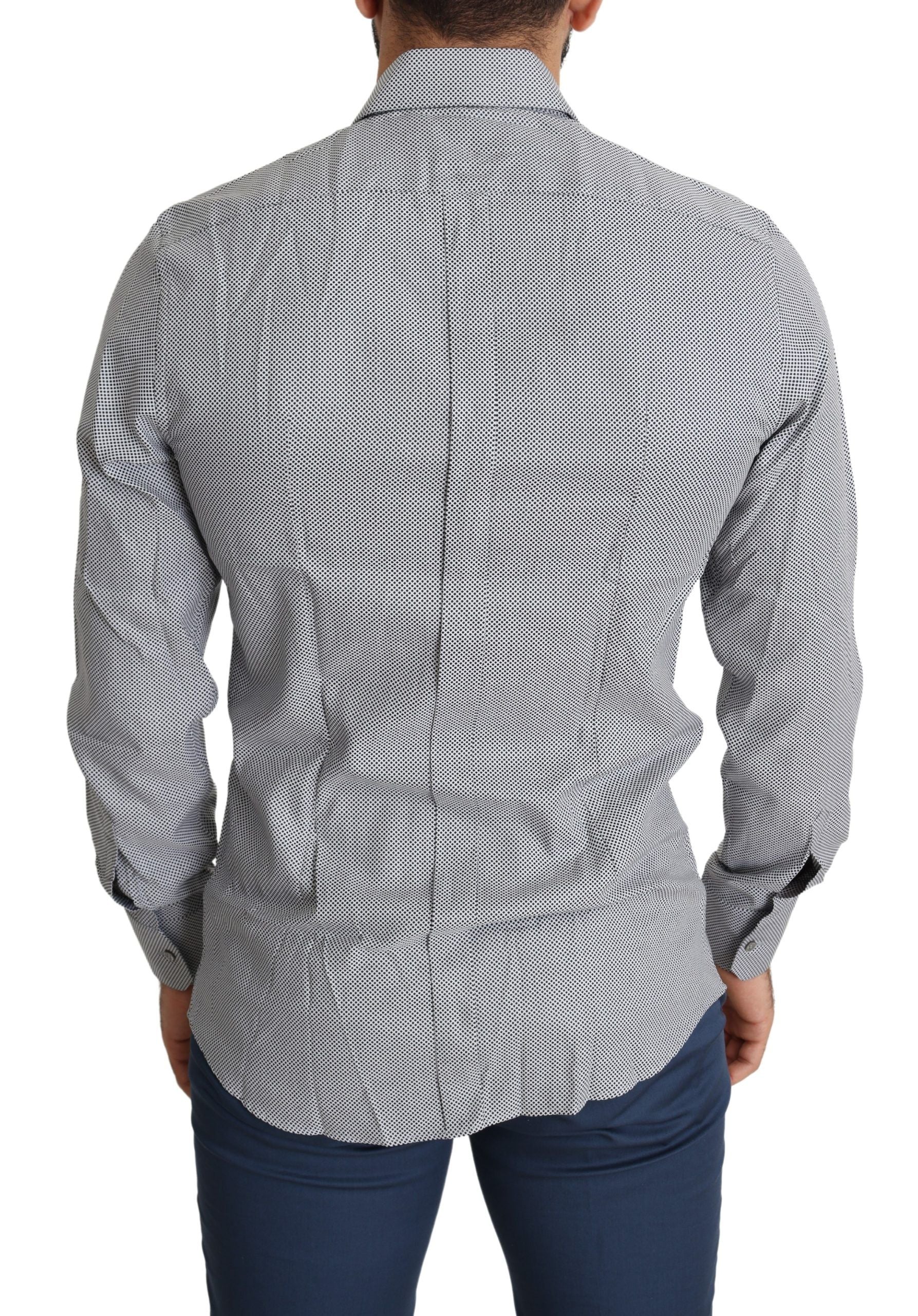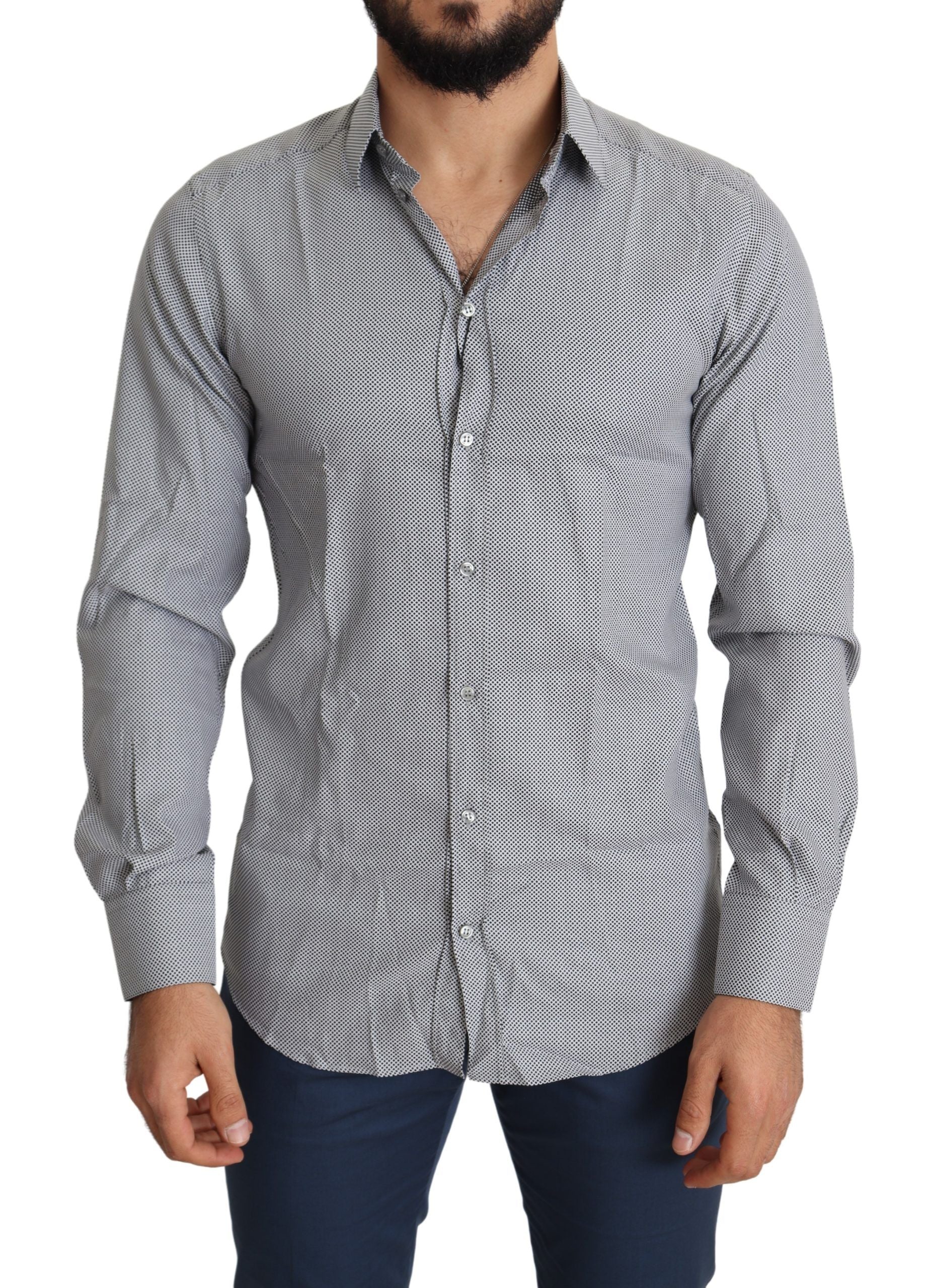 Discover the epitome of Italian craftsmanship with this exquisite Dolce & Gabbana black dress shirt. Perfect for the modern gentleman seeking a touch of luxury, this 100% authentic shirt seamlessly blends classic style with a modern slim fit. Crafted from the finest soft cotton, it features a sophisticated spread collar complemented by one-button barrel cuffs, ensuring a sharp look for any formal occasion. It’s more than just a shirt – it’s a statement of elegance and style, proudly made in Italy.