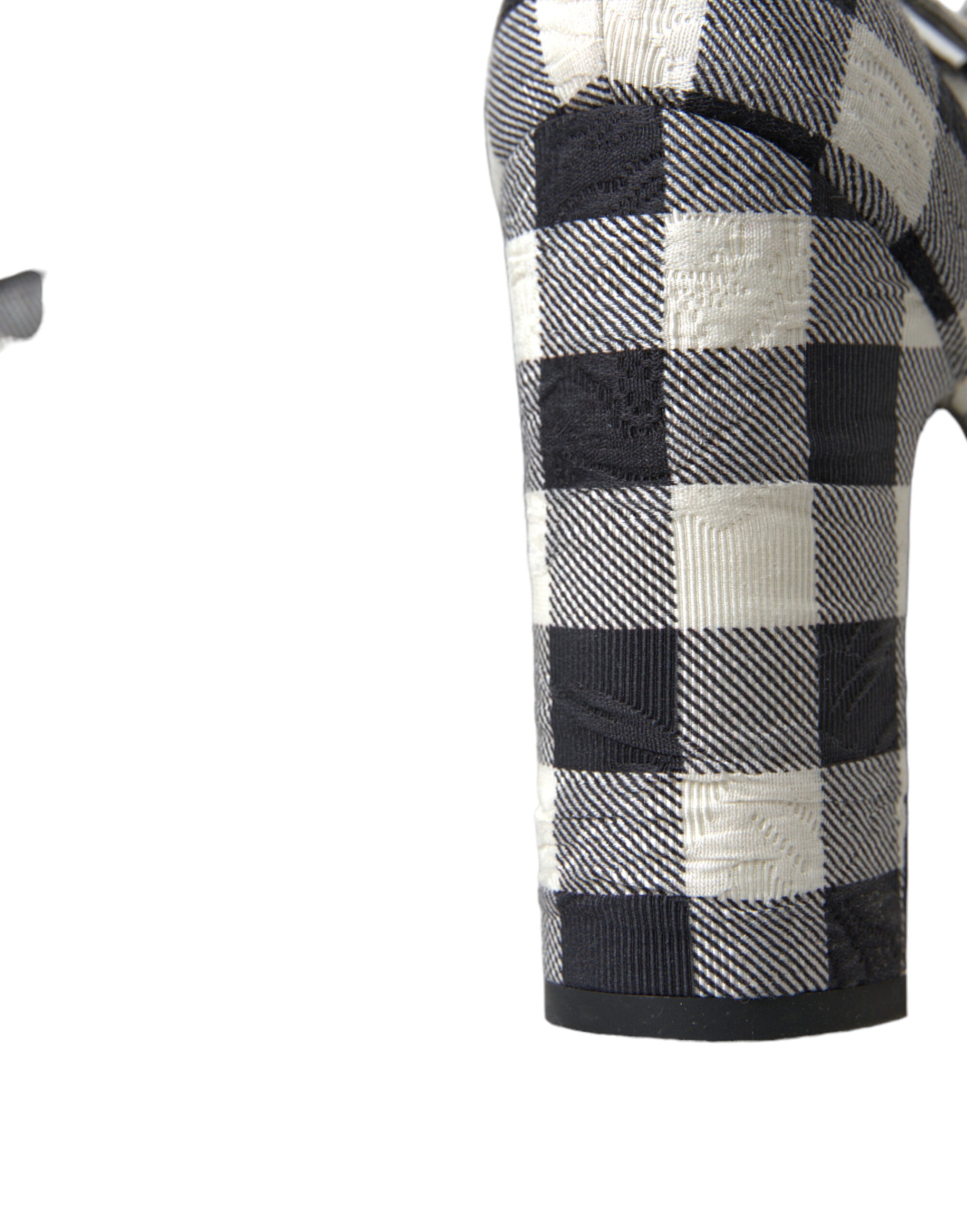 Step into elegance with these stunning T-strap Mary Jane’s heels by Dolce & Gabbana. These heels feature a charming black and white check pattern, evoking a sense of classic style perfect for summer picnics and breezy boardwalk strolls. With a retro silhouette, chunky heel, and luxurious textile and leather construction, they’re not just shoes, but a fashion statement. Each step is a testament to your impeccable taste, delicately detailed with the brand’s signature logo. Embrace the hottest trend of the season with these authentic, Italian-made beauties, complete with tags.