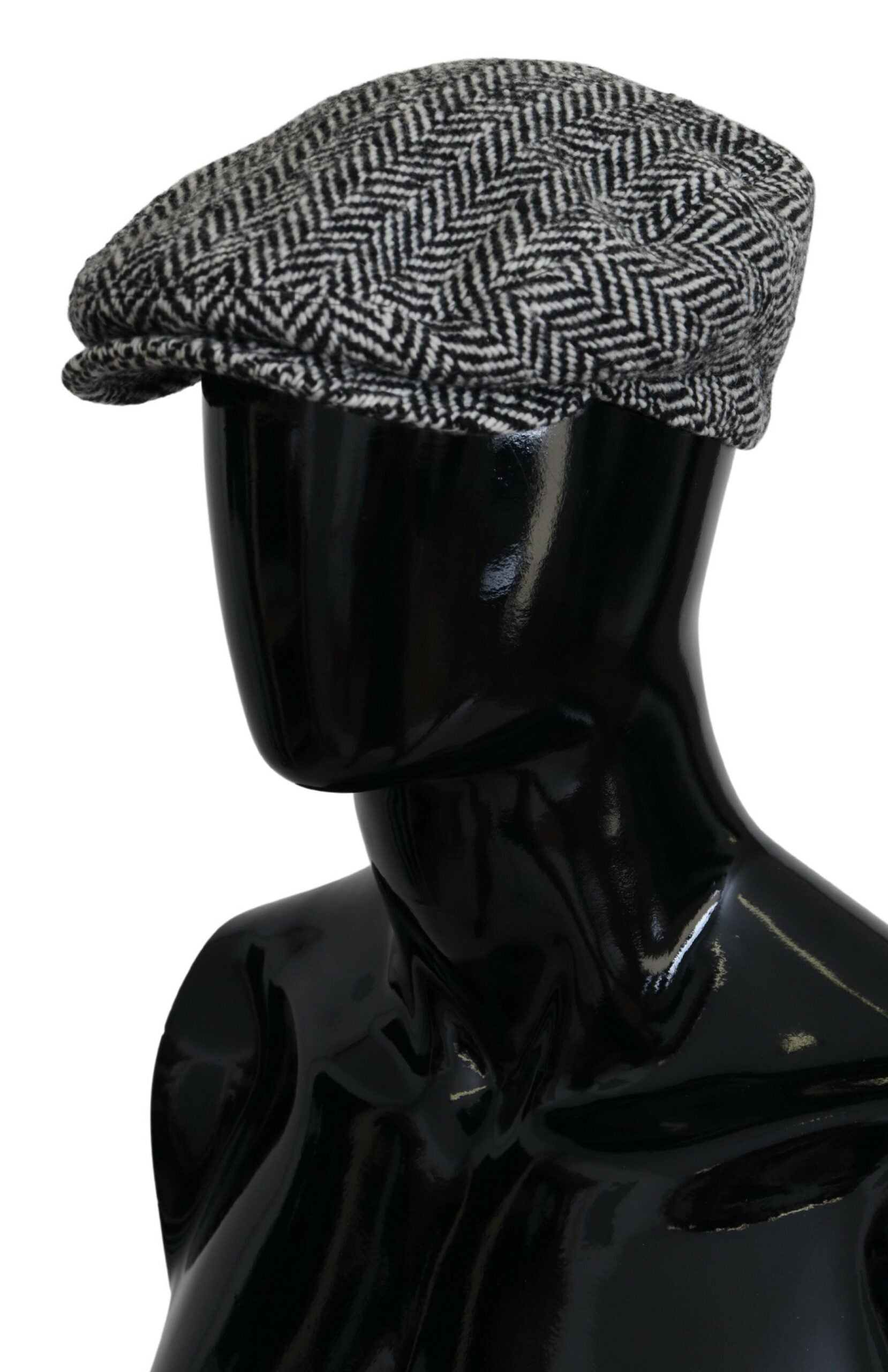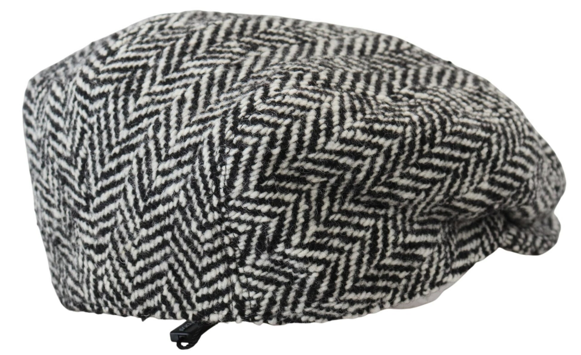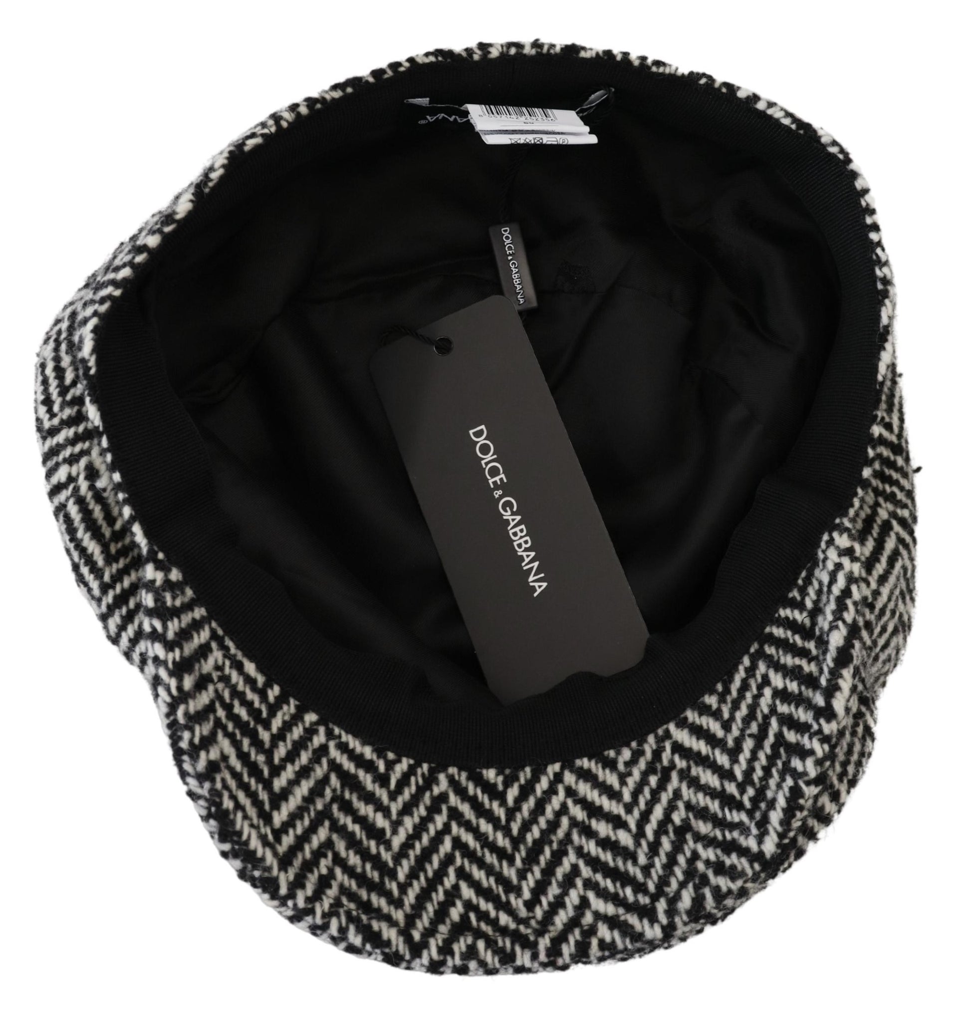 Step out in timeless style with this stunning Newsboy hat from the exclusive MainLine collection of the renowned Dolce & Gabbana. Crafted from a luxurious blend of virgin wool and nylon, this hat boasts a classic herringbone pattern in a sophisticated black and white palette. With its distinct logo details and Italian craftsmanship, it’s the perfect accessory to add a touch of elegance to any outfit.
