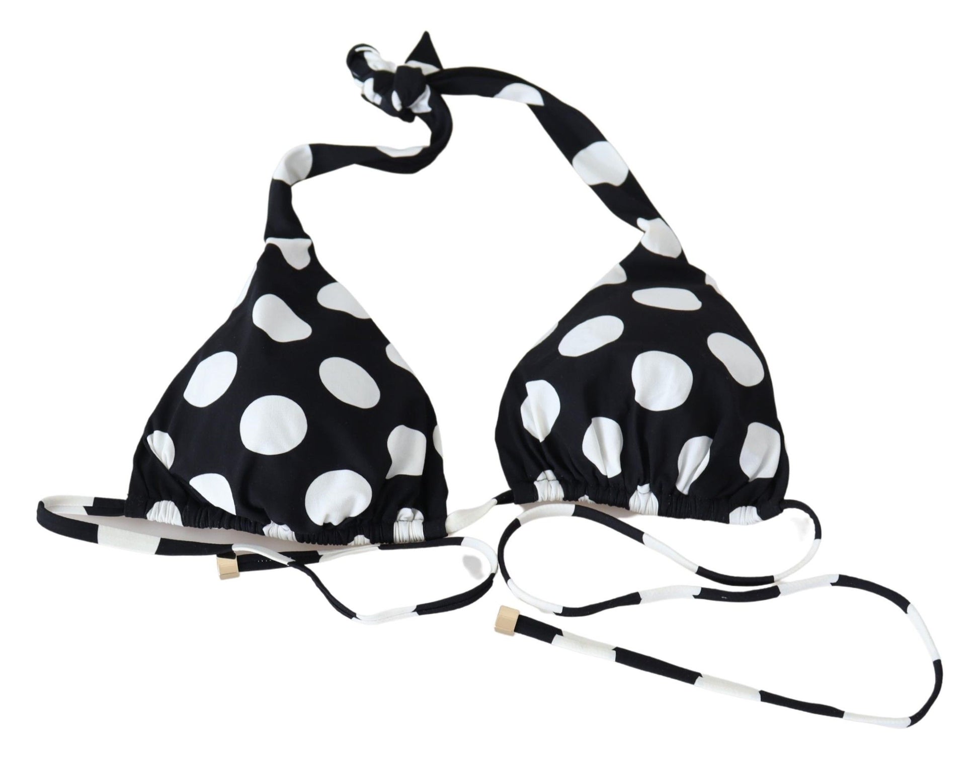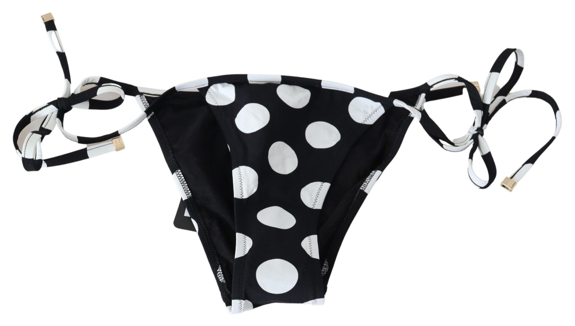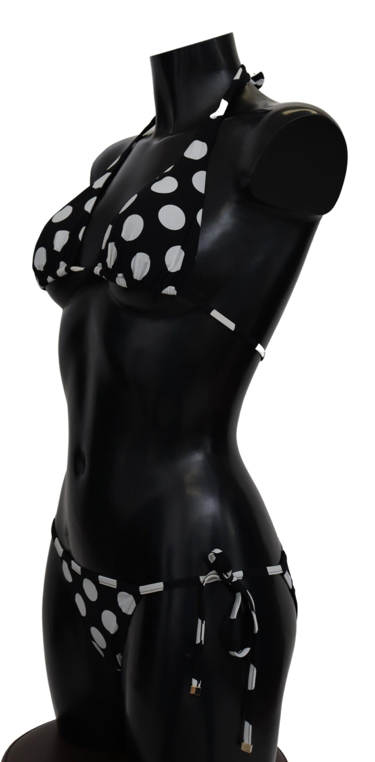 Make a splash in vintage charm with this stunning Dolce & Gabbana two-piece bikini set. Exuding a timeless aesthetic, its classic black hue is adorned with chic white polka dots. Crafted with a blend of nylon and elastane, it promises a comfortable and flattering fit, perfect for lounging by the pool or taking a dip in the ocean. With its luxurious detailing, this bikini set is a testament to Italian craftsmanship, ready to accompany you on sunny escapades.