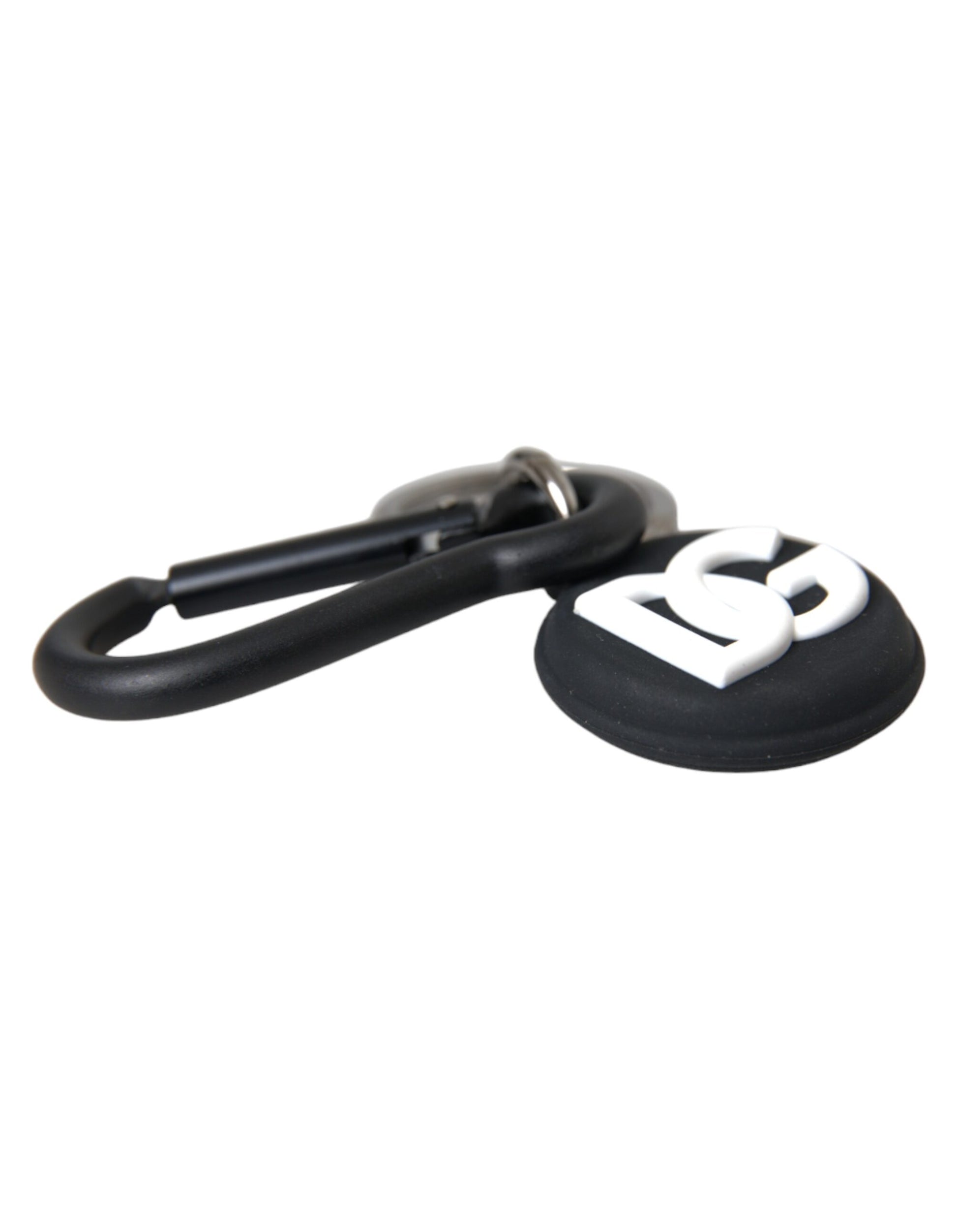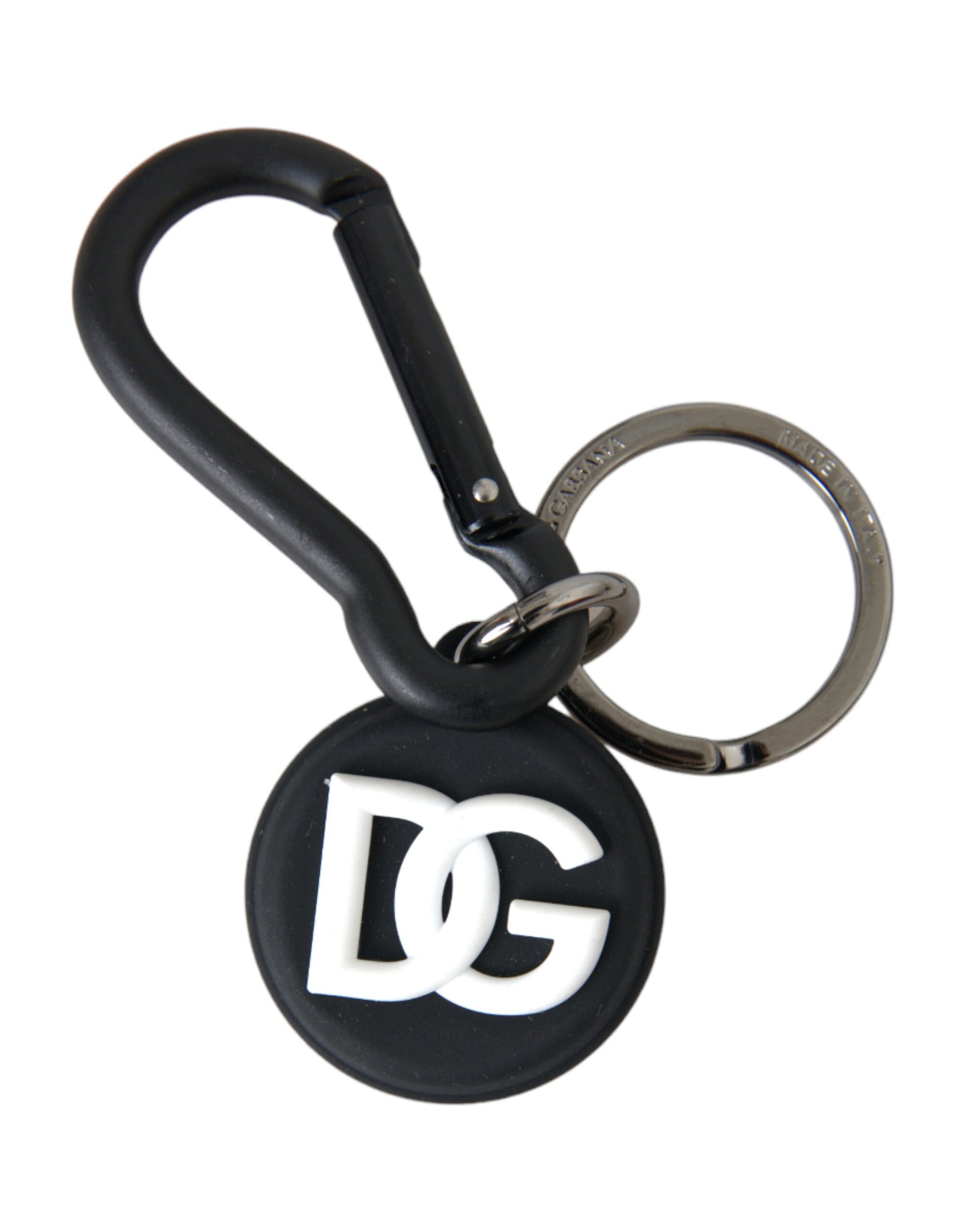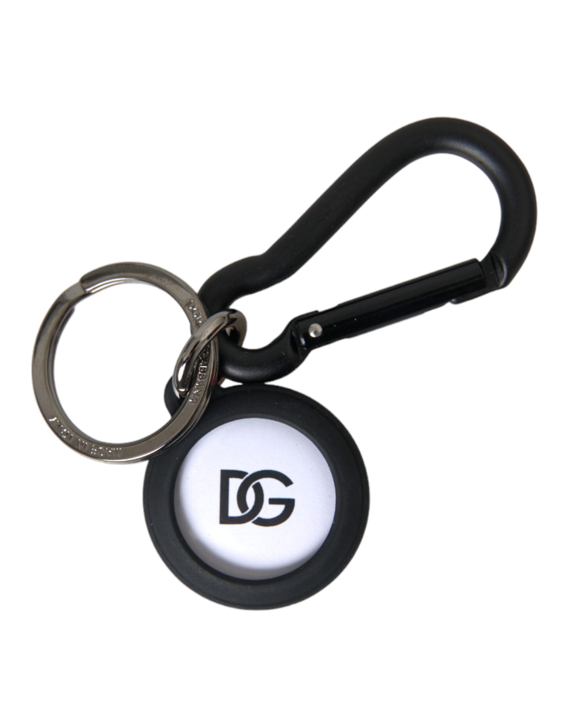Black White Rubber DG Logo Round Metal Keyring Keychain
