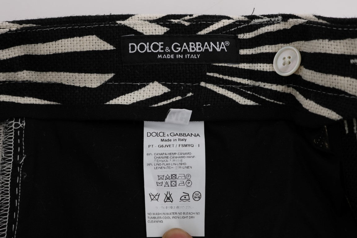 Step into luxury and sophistication with these stunning trousers from Dolce & Gabbana. Exquisitely crafted and brand new with tags, these slim fit pants are the perfect blend of modern style and traditional Italian craftsmanship. Ideal for a range of occasions, whether a day at the office or a night on the town, these trousers are sure to make a statement in classic black and white. Complete with convenient front and back pockets, a smooth zipper fly closure, and discreet logo details that speak to the brand’s attention to detail.