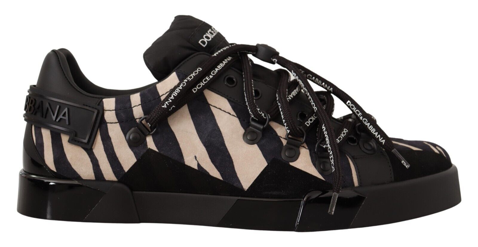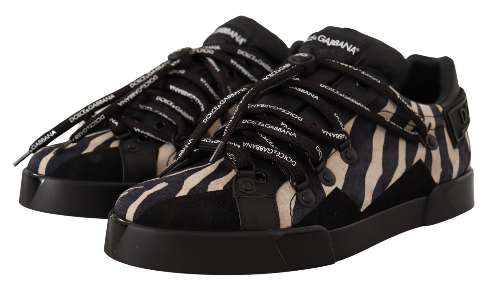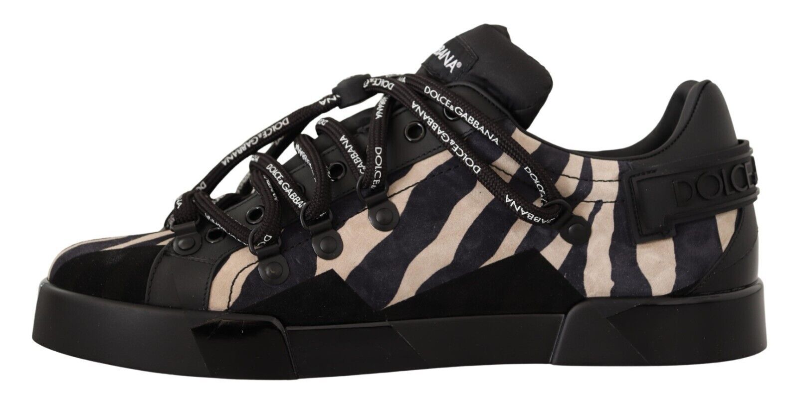Step into bold style with these eye-catching Low Top Sneakers by Dolce & Gabbana. Perfect to add a daring touch to your casual ensemble, these shoes feature black and white zebra stripes on suede material, ensuring both style and quality. Ideal for the fashion-forward individual, these sneakers are completed with a classic lace-up closure and a comfortable rubber sole, coupled with the exquisite craftsmanship that Dolce & Gabbana is renowned for. Embrace the luxury of Italian design with every step you take.