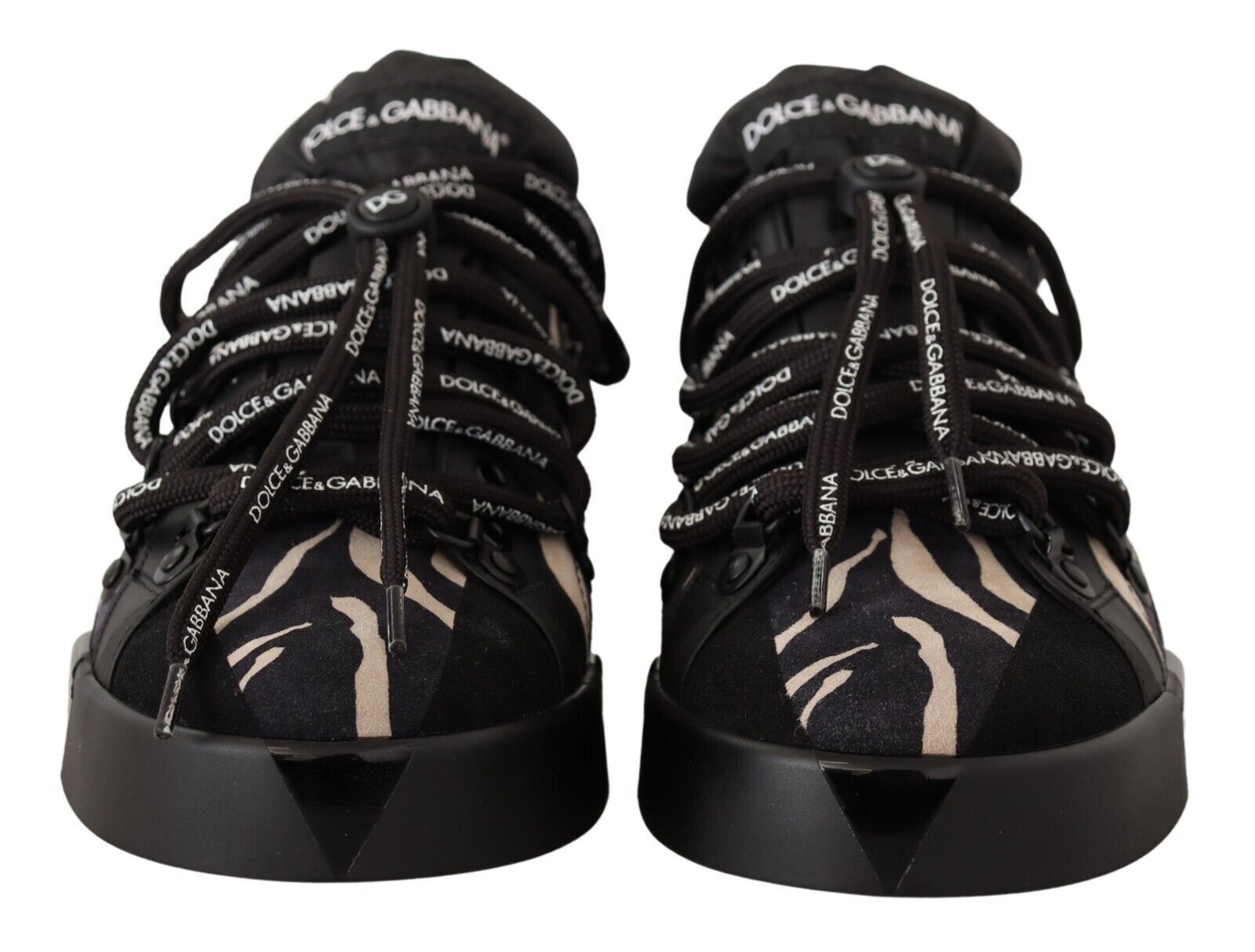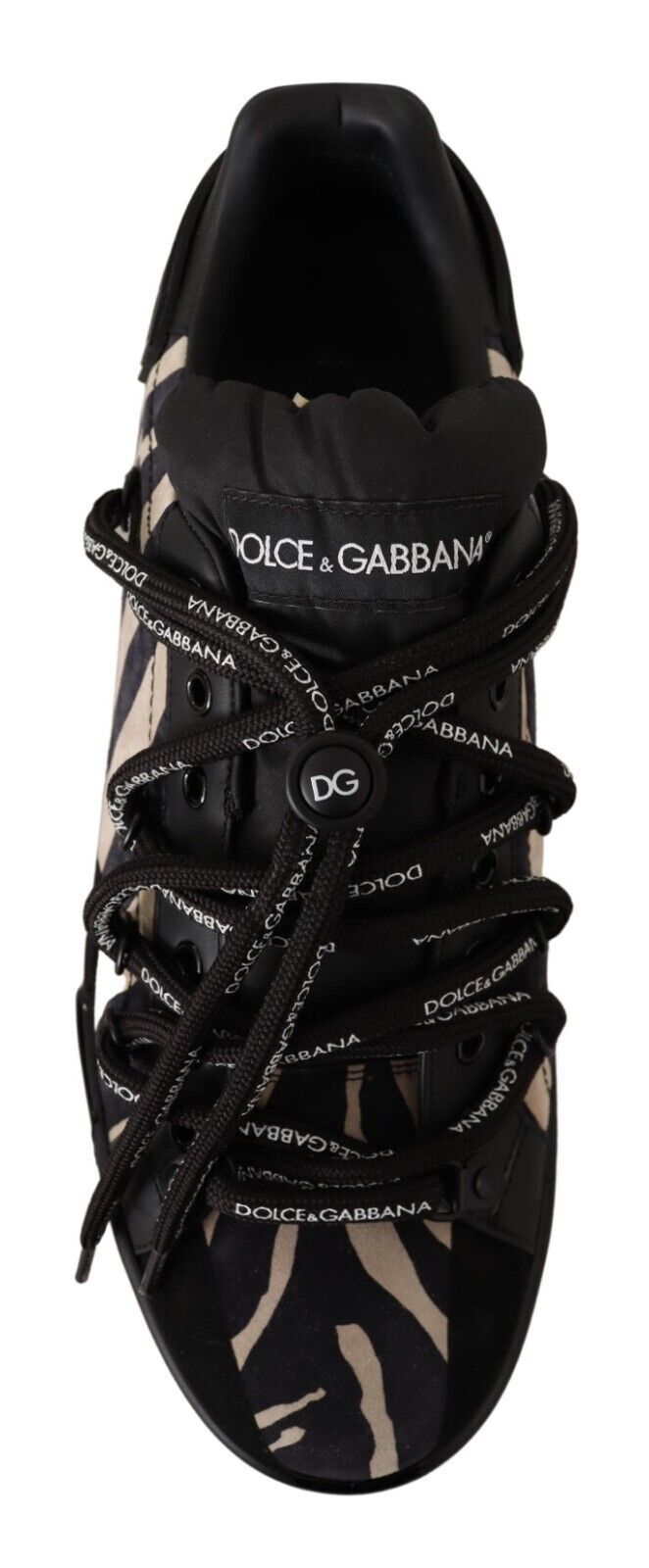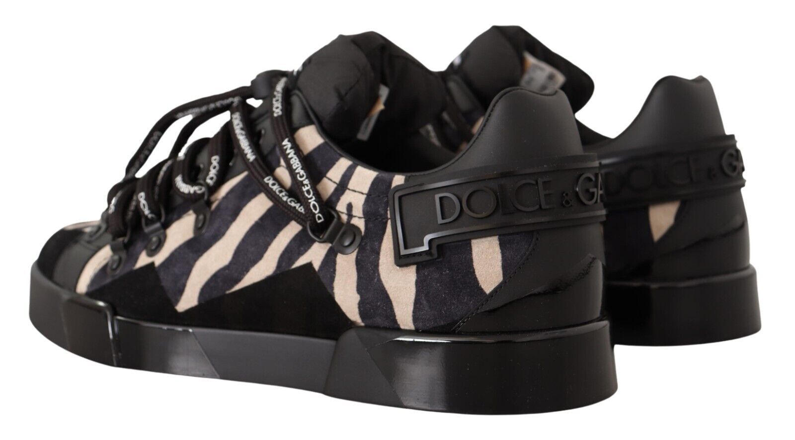 Step into bold style with these eye-catching Low Top Sneakers by Dolce & Gabbana. Perfect to add a daring touch to your casual ensemble, these shoes feature black and white zebra stripes on suede material, ensuring both style and quality. Ideal for the fashion-forward individual, these sneakers are completed with a classic lace-up closure and a comfortable rubber sole, coupled with the exquisite craftsmanship that Dolce & Gabbana is renowned for. Embrace the luxury of Italian design with every step you take.