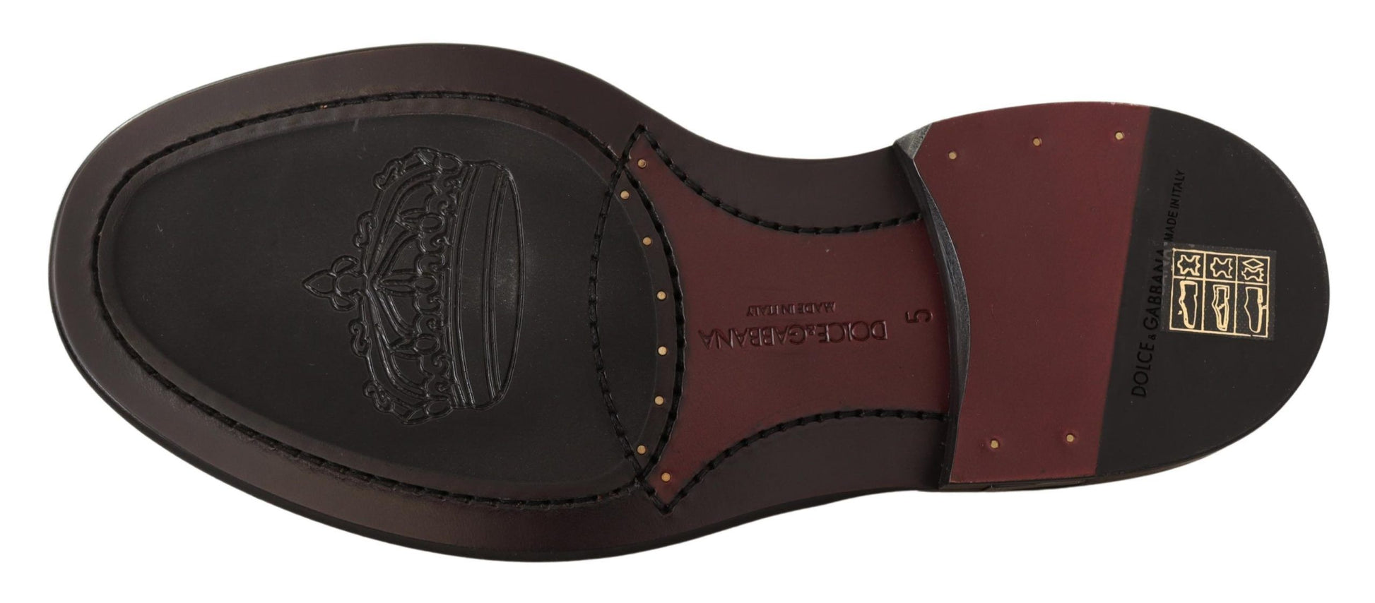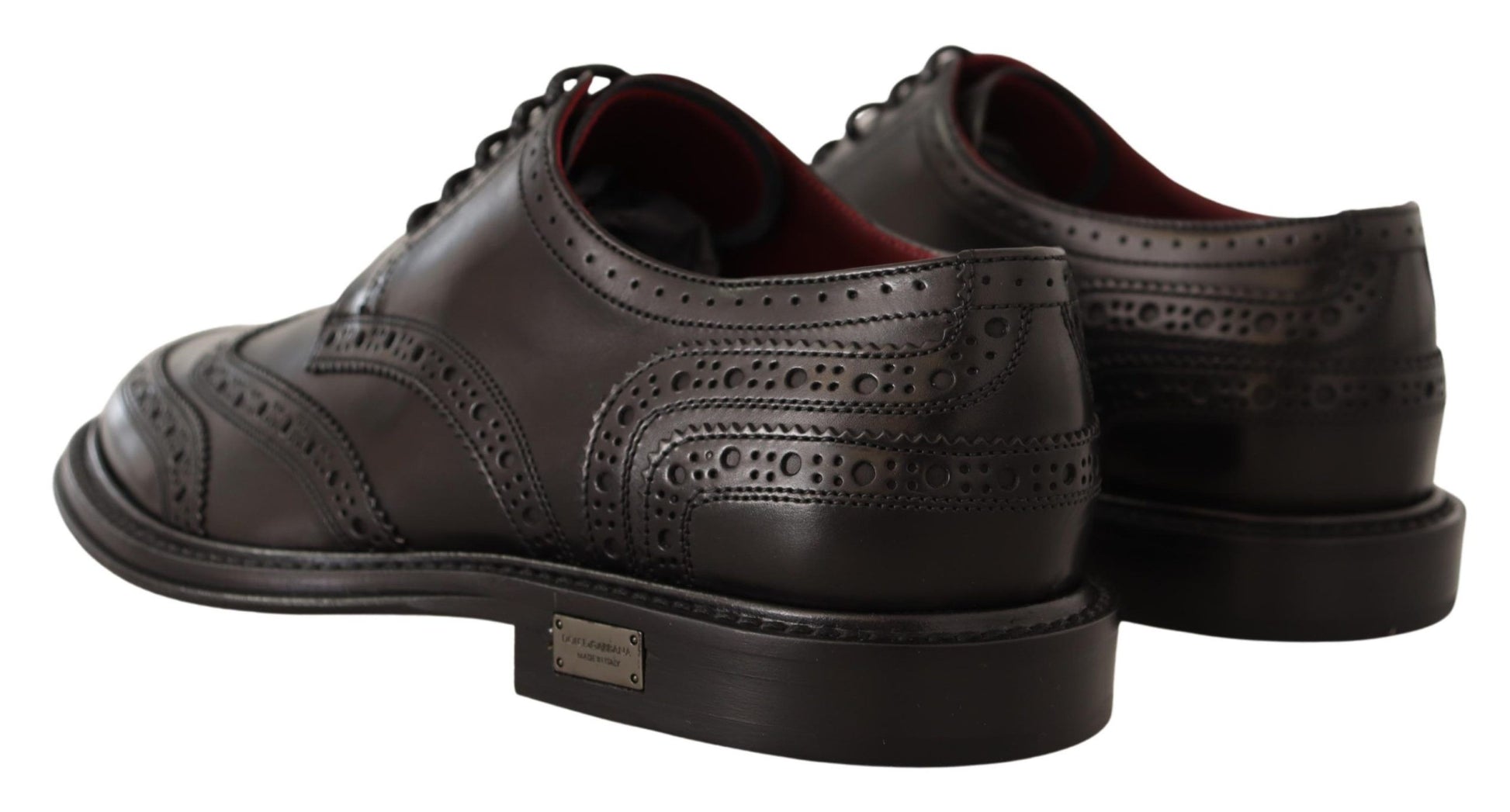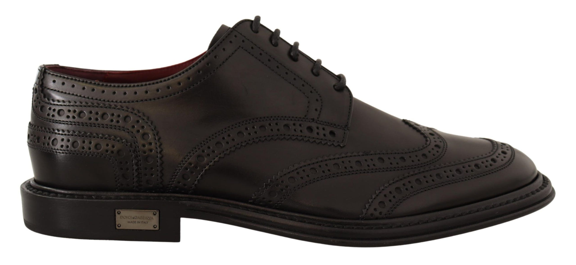Step into sophistication with these exquisite black leather Derby shoes by Dolce & Gabbana. These stunning shoes feature intricate perforations, a lace-up front, and a dual-toned leather and rubber sole that blends impeccable style with durability. Crafted in Italy, they signal craftsmanship and luxury synonymous with the brand. Perfect for formal occasions, these shoes infuse elegance into every stride.