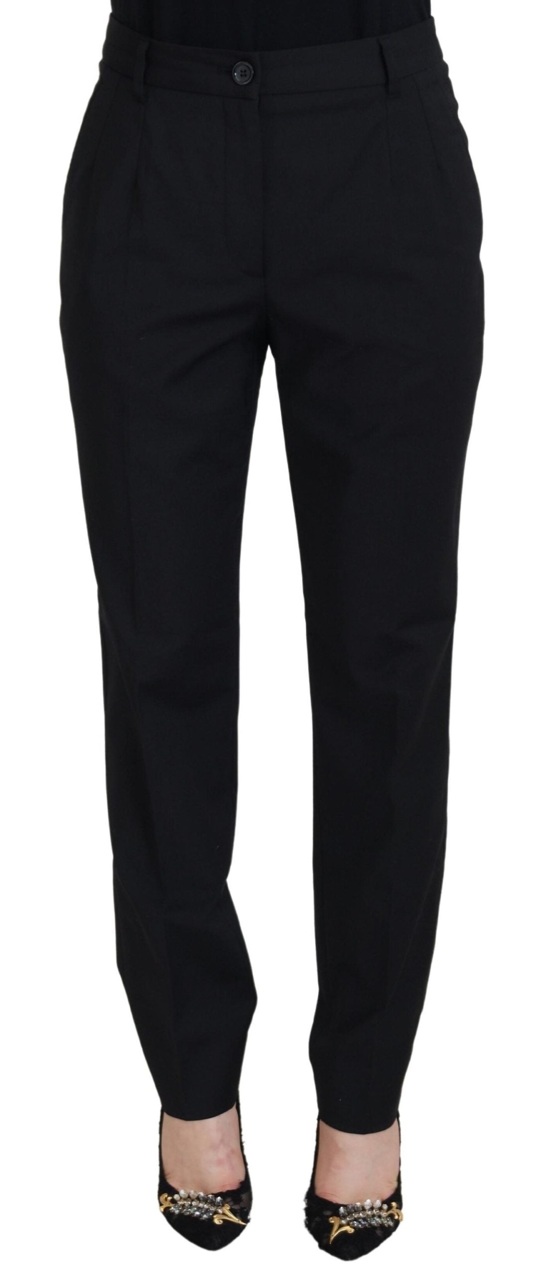 Step into sophistication with these gorgeous trousers from Dolce & Gabbana. Perfect for any occasion, these pants blend classic tailoring with modern style. The blend of polyester, wool, and elastane ensures a comfortable fit while providing the durability you expect from a luxury fashion item.