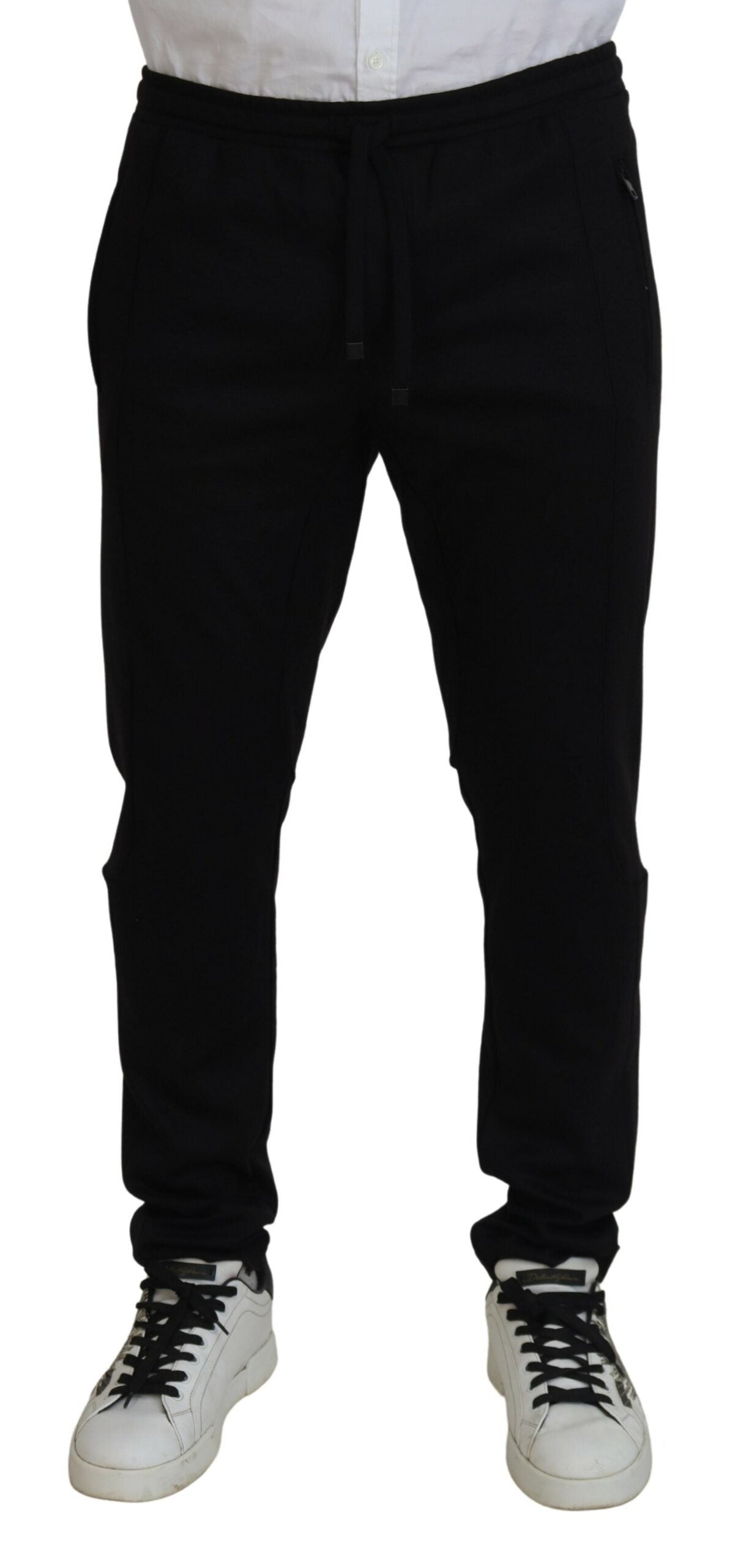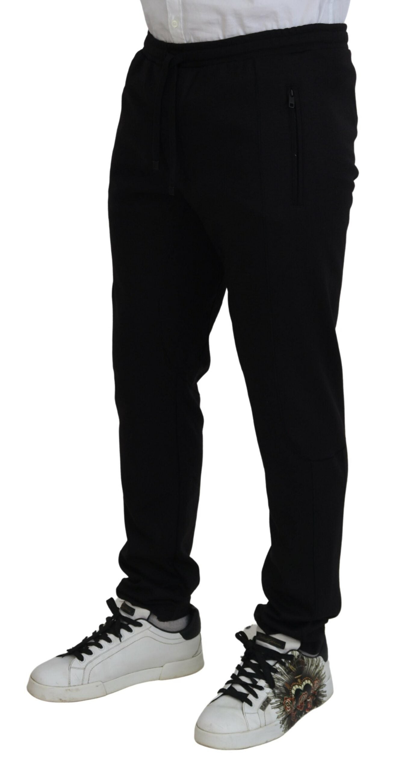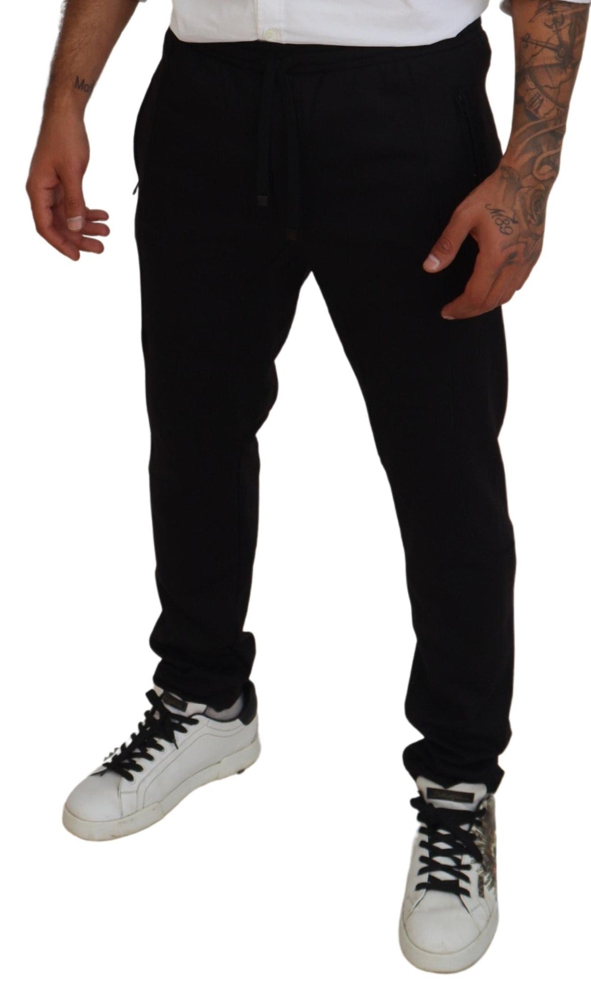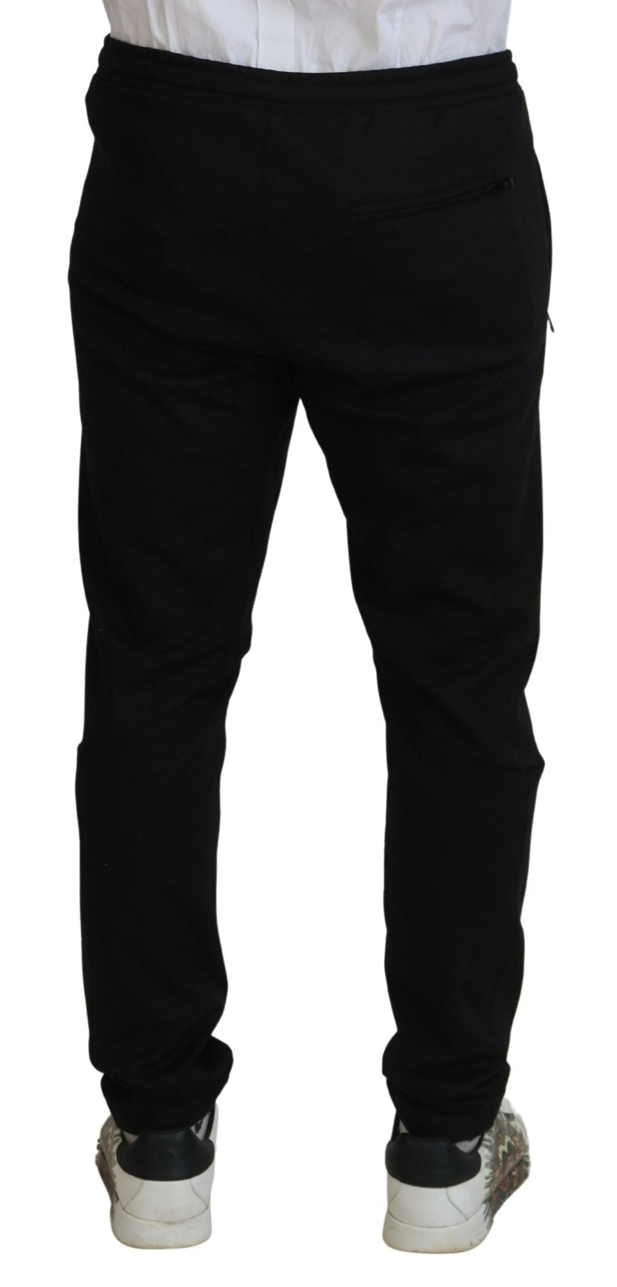 Step into luxury with these brand new, tags-on, 100% Authentic jogger pants from the exclusive MainLine collection by Dolce & Gabbana. These pants blend comfort with high fashion, making them the perfect addition to both your casual and sophisticated wardrobes. Sophisticated in black, they are crafted to provide a plush feel and sleek look.