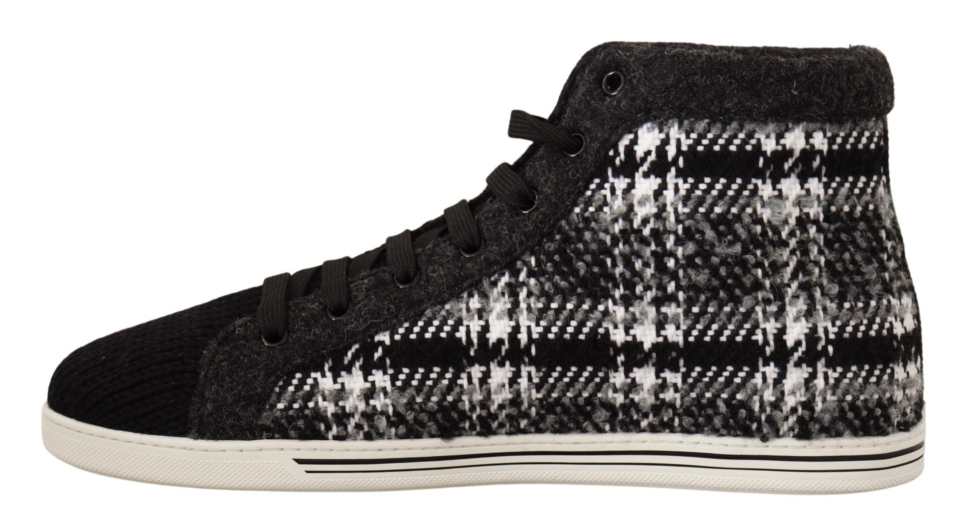 Step up your footwear game with the latest 100% Authentic sneakers from Dolce & Gabbana. These high-top sneakers, featuring a contemporary black and gray check design, blend classic style with modern sophistication. Made in Italy, they are crafted from the finest cotton and wool, ensuring both comfort and durability. The iconic logo detail adds a touch of luxury, while the sturdy rubber sole offers practicality for everyday wear.