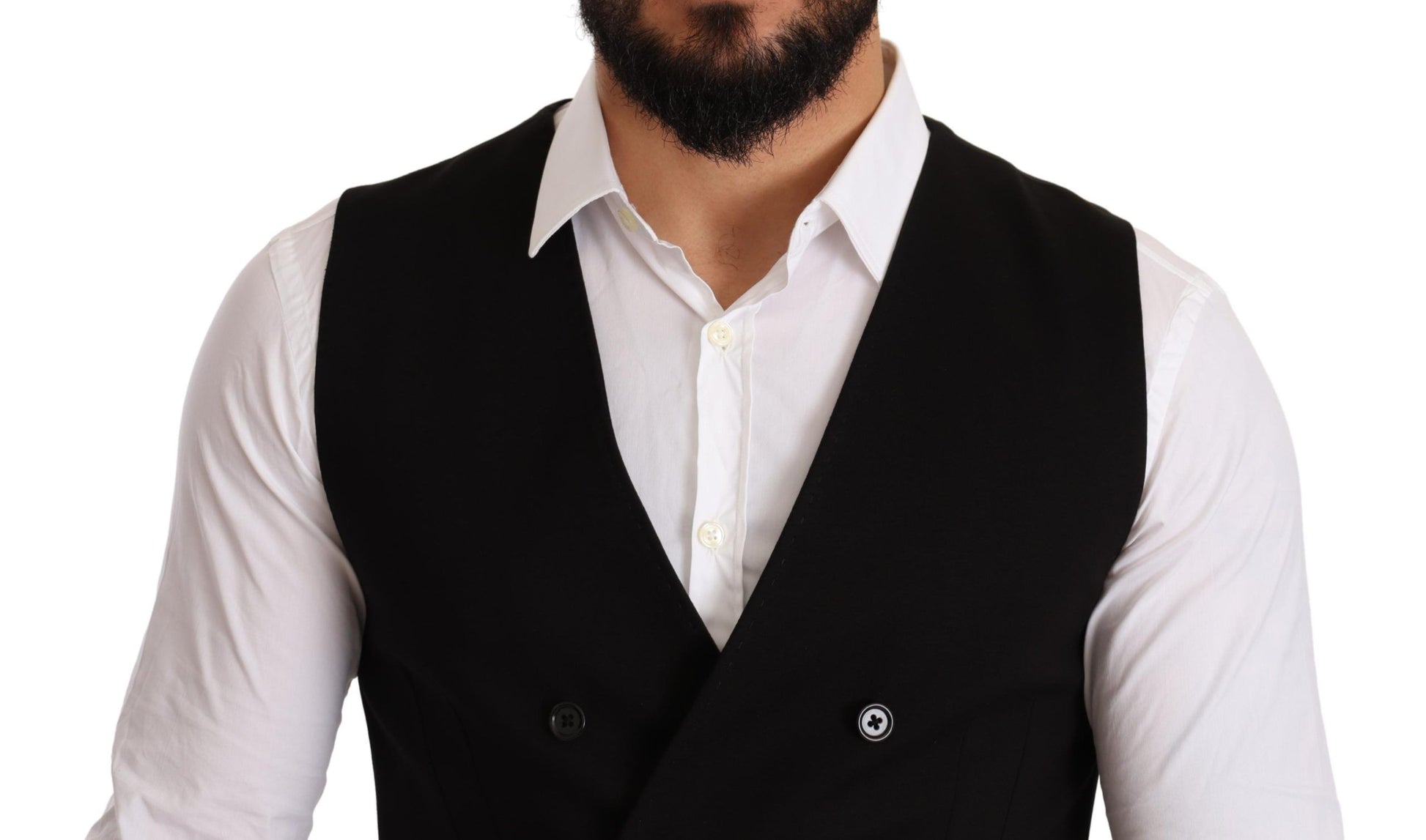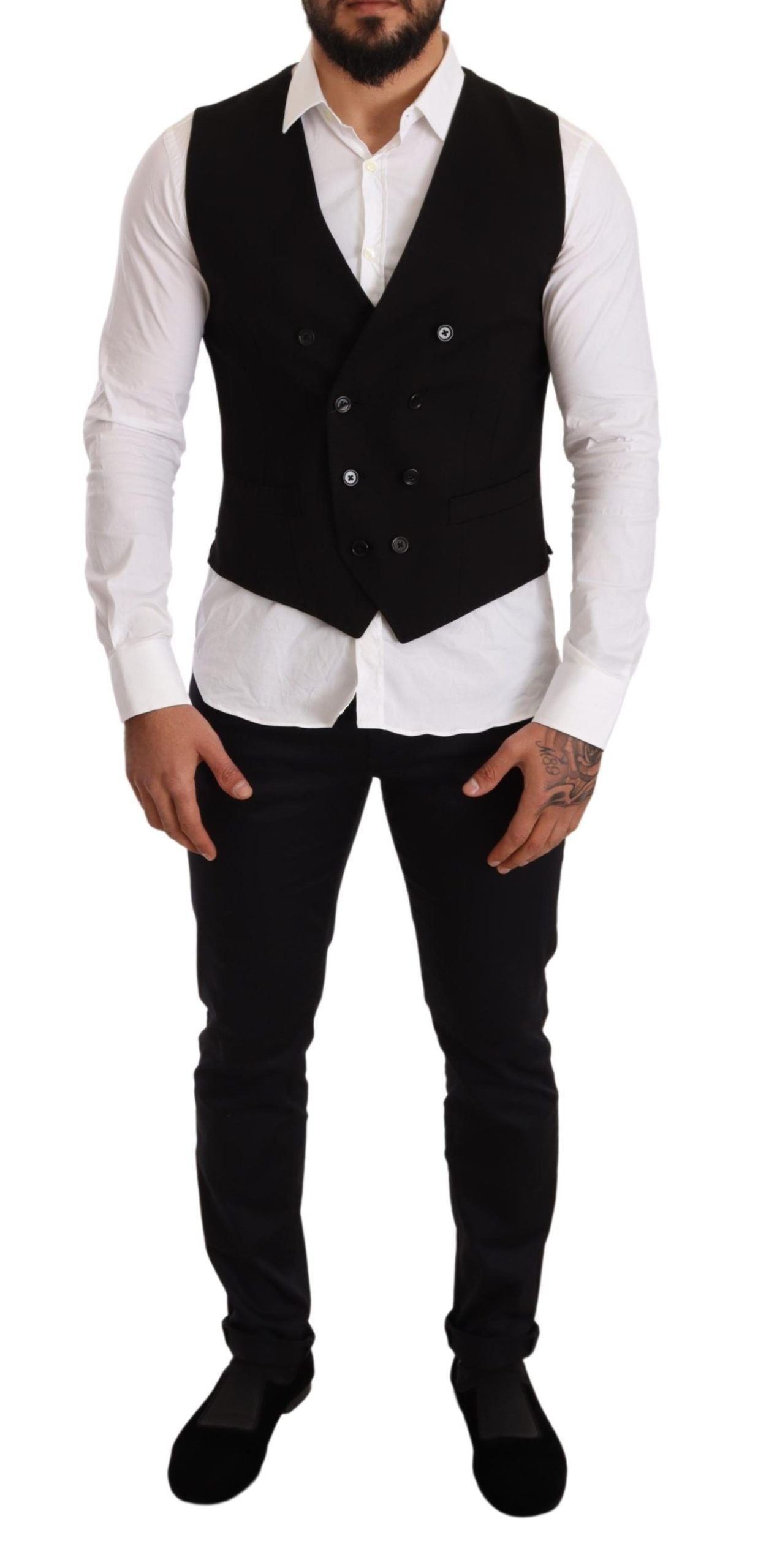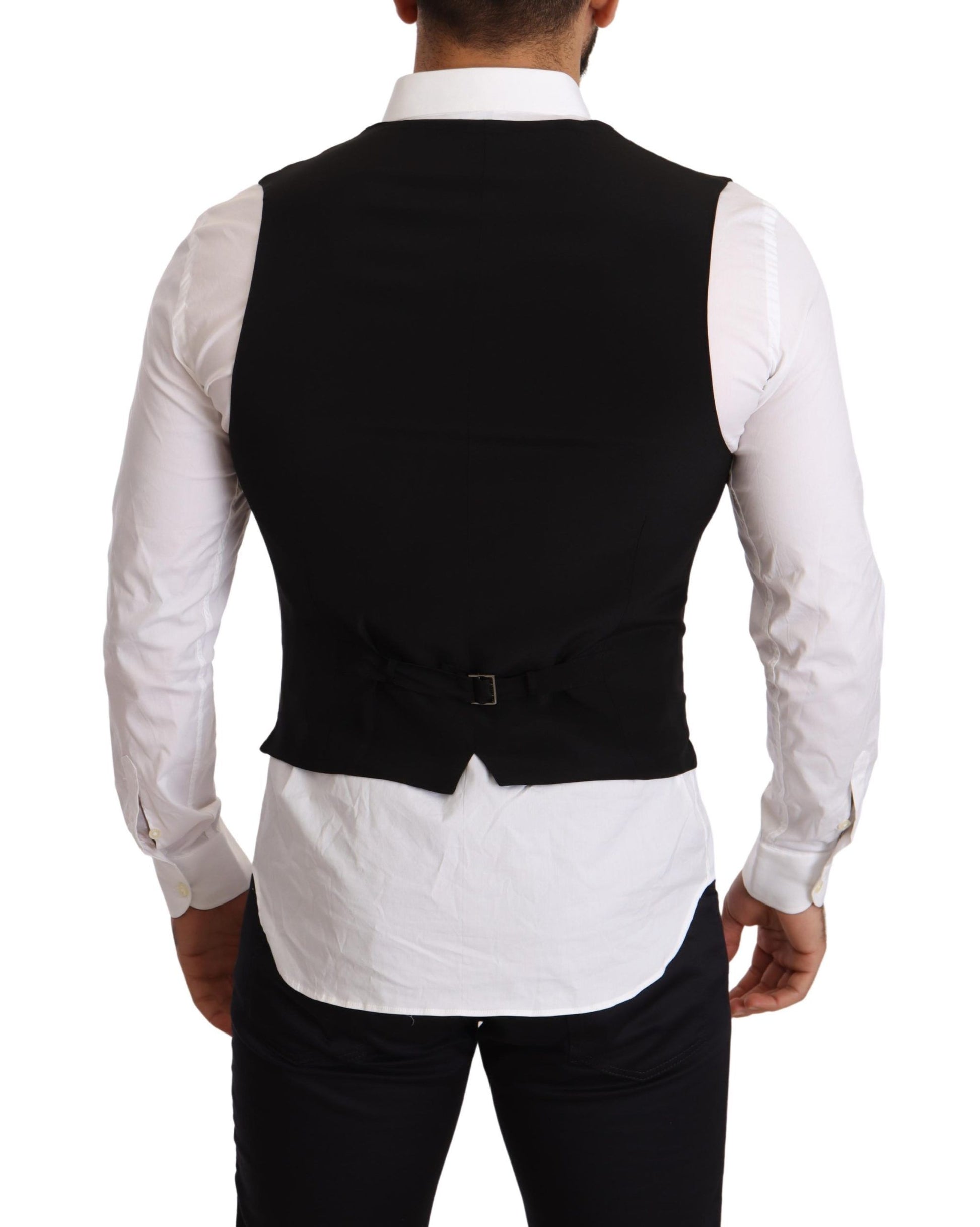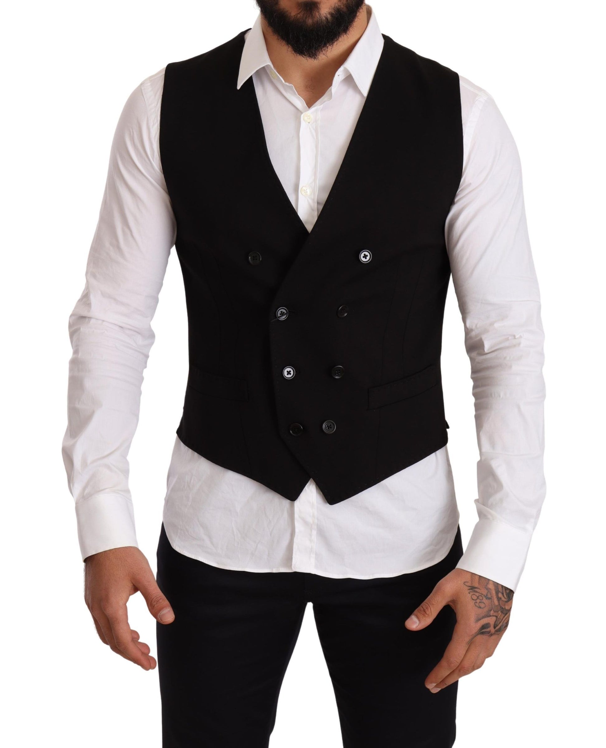 Elegant Black Double-Breasted Wool Vest