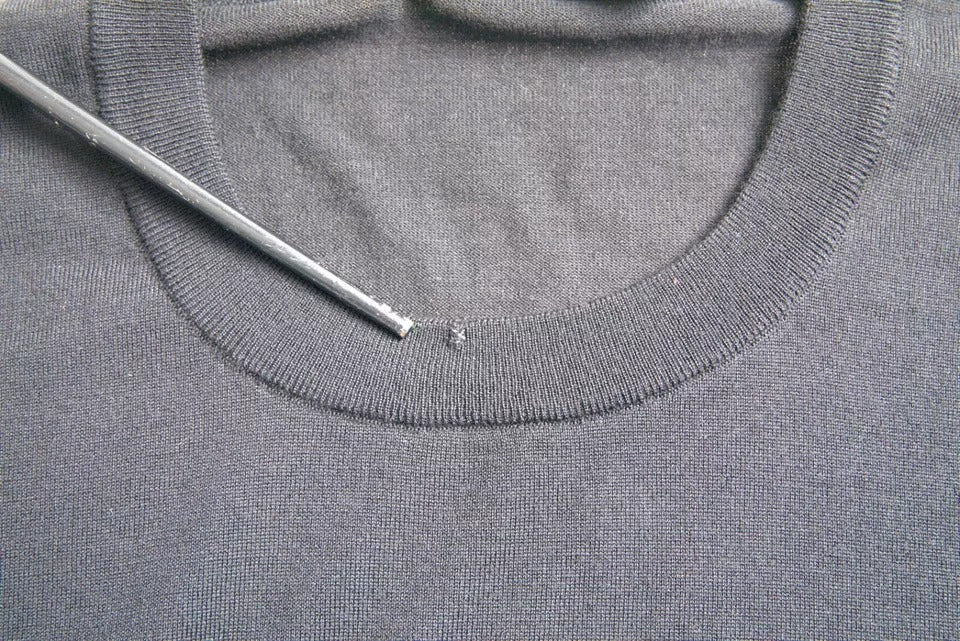 This item has a minor defect, there is a repaired rip on the neckline (see pictures for details).