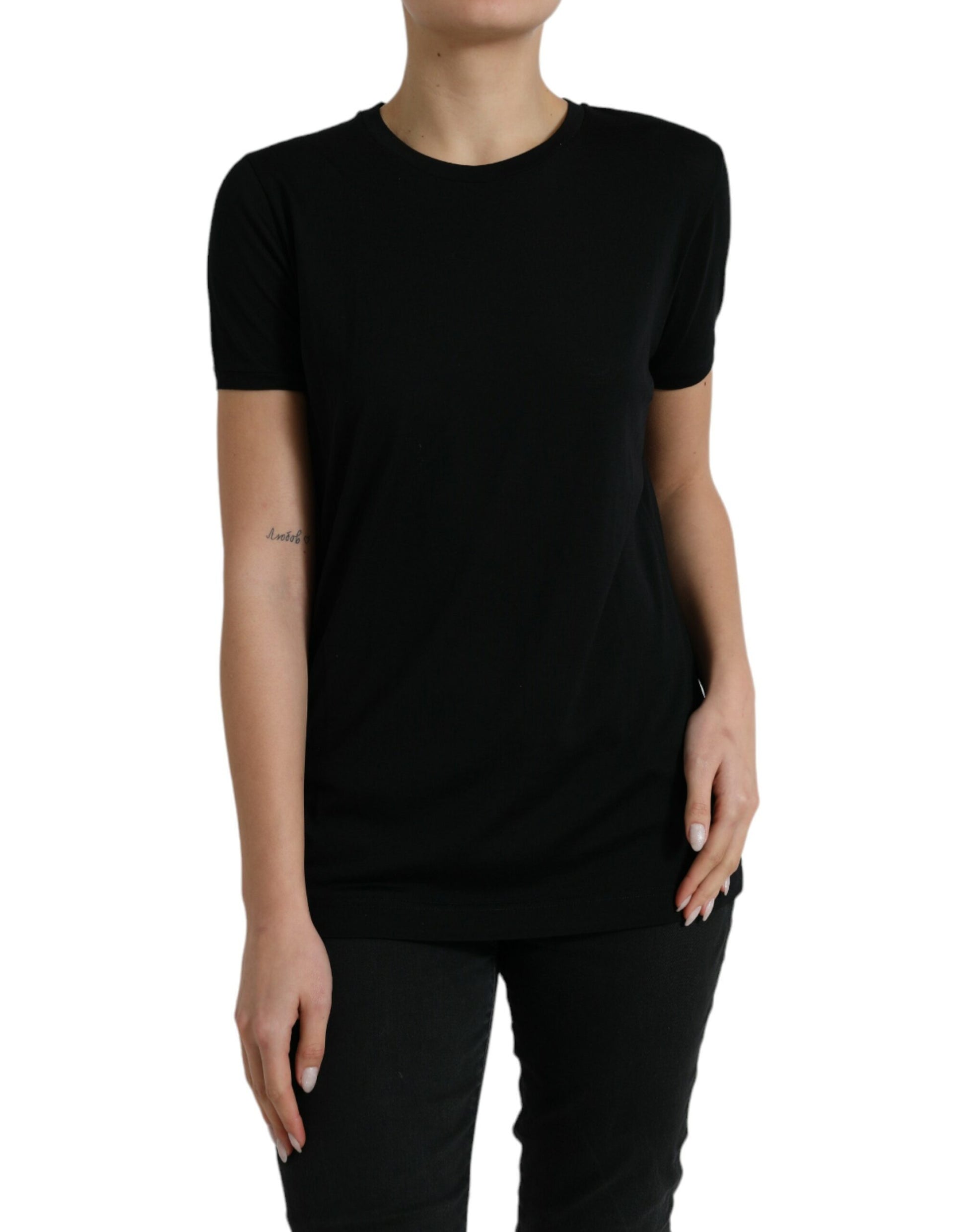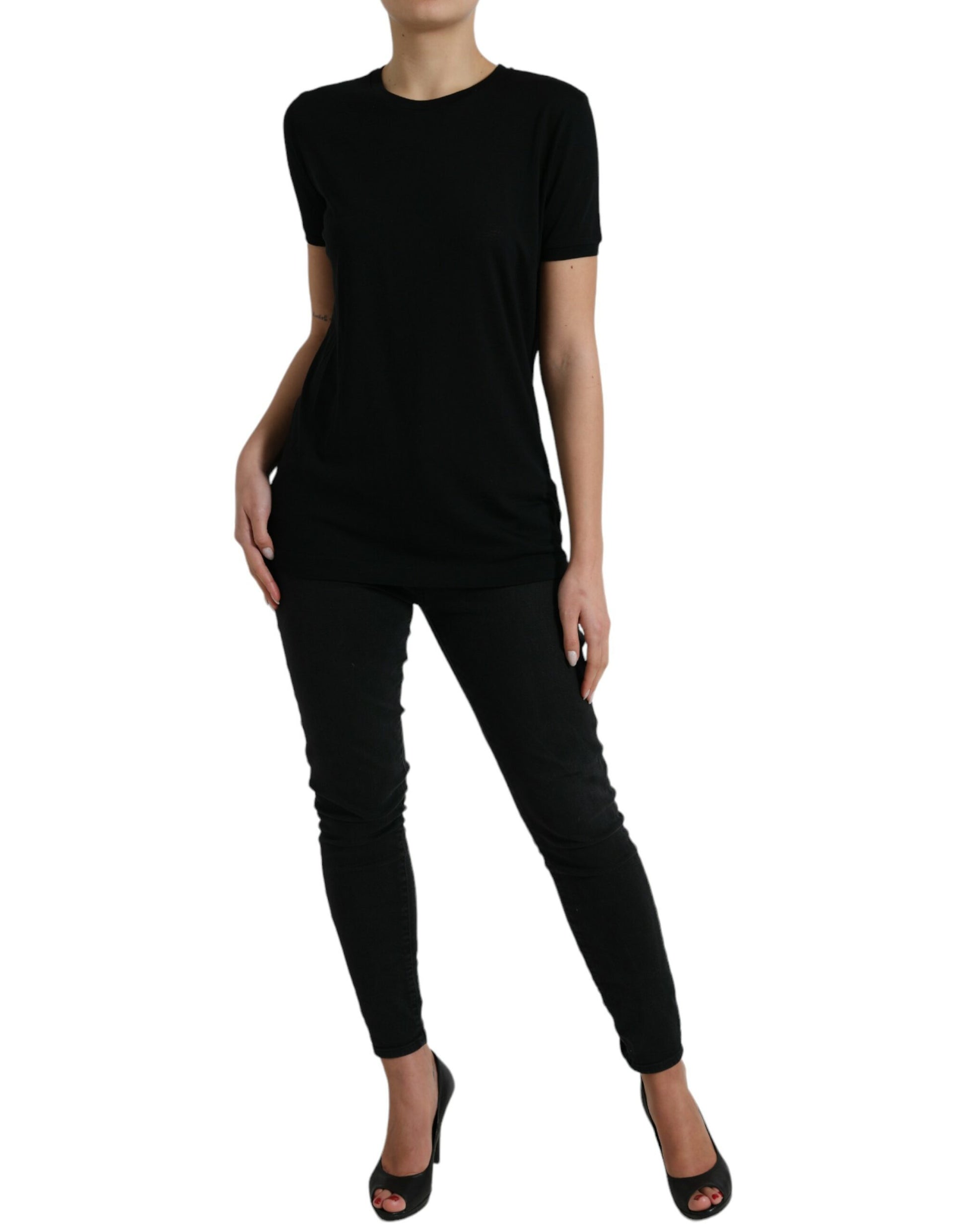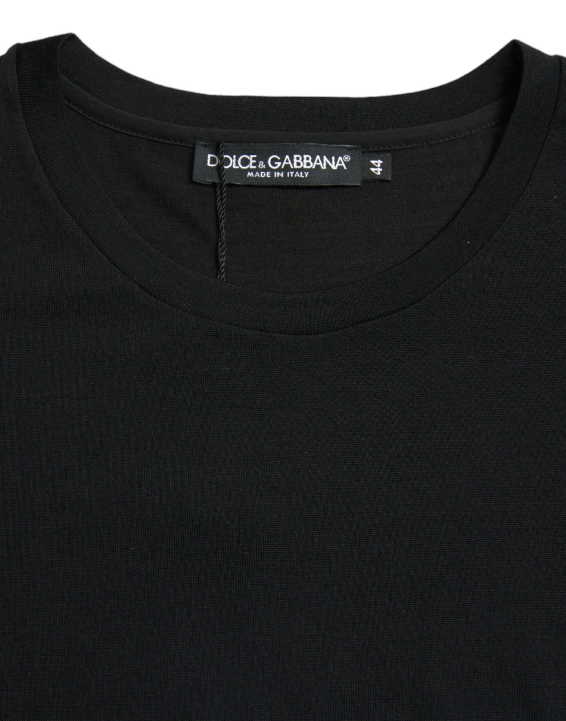 Discover the epitome of Italian craftsmanship with this gorgeous 100% Authentic wool crew neck top. Perfect for a refined, chic look, its short sleeves make it a versatile piece for any season. With an exquisite black color and subtle logo details, this top is a testament to the luxury and style that Dolce & Gabbana is renowned for.