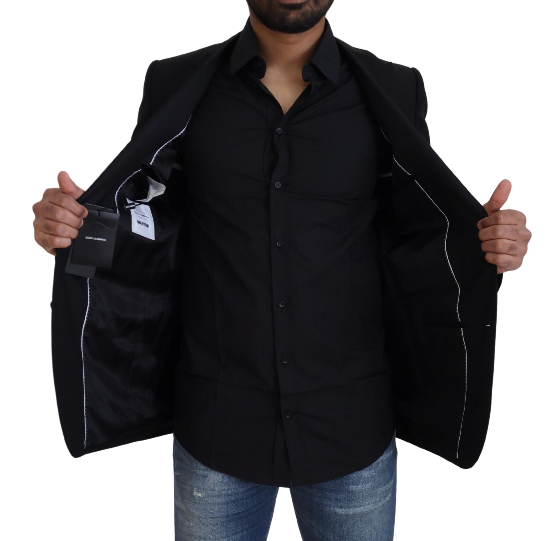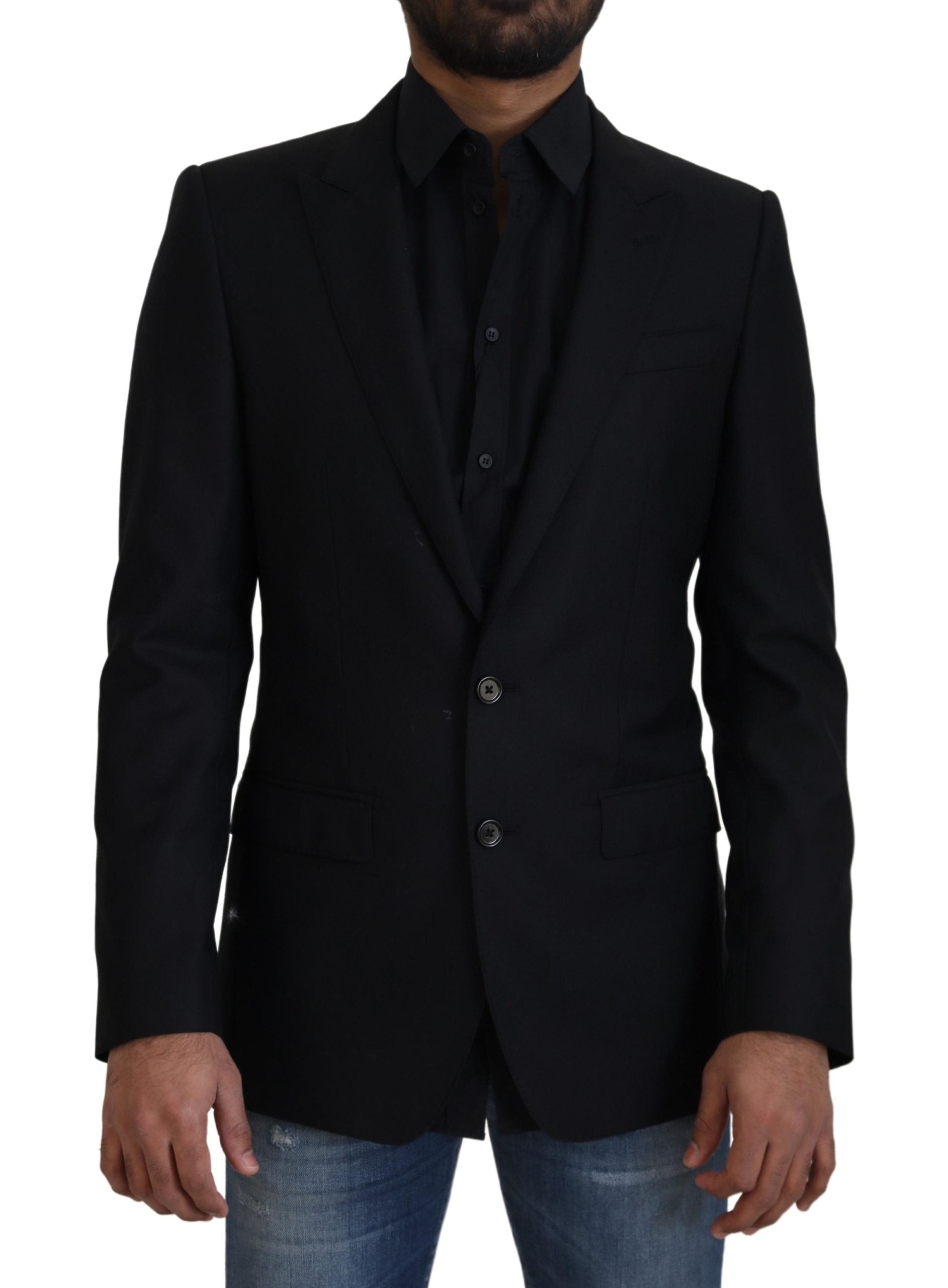 Step into the world of high fashion with this sleek and sophisticated blazer from Dolce & Gabbana. Exquisitely tailored, this MARTINI Single breasted blazer is crafted from a luxurious blend of virgin wool and silk, offering a perfect slim fit that maximizes comfort without compromising on style. The deep black color and notch style lapel elevate your ensemble, making it an ideal choice for formal events or stylish evenings out. With its Italian craftsmanship and the elegant touch of Dolce & Gabbana, this blazer is the epitome of luxury menswear.