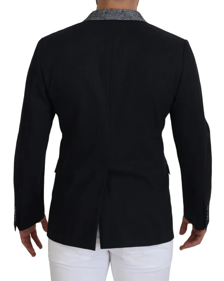 Black Wool Single Breasted Tuxedo Blazer
