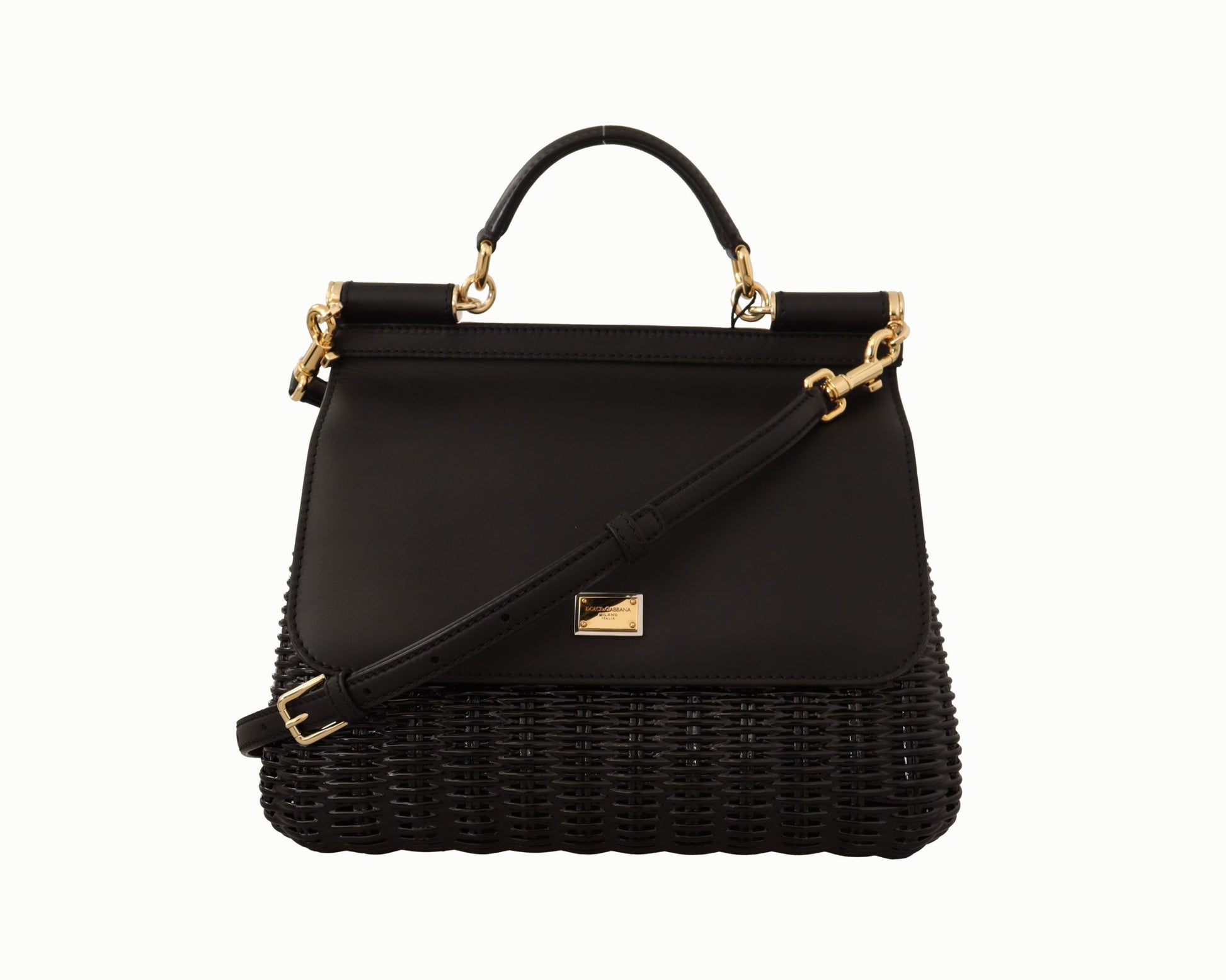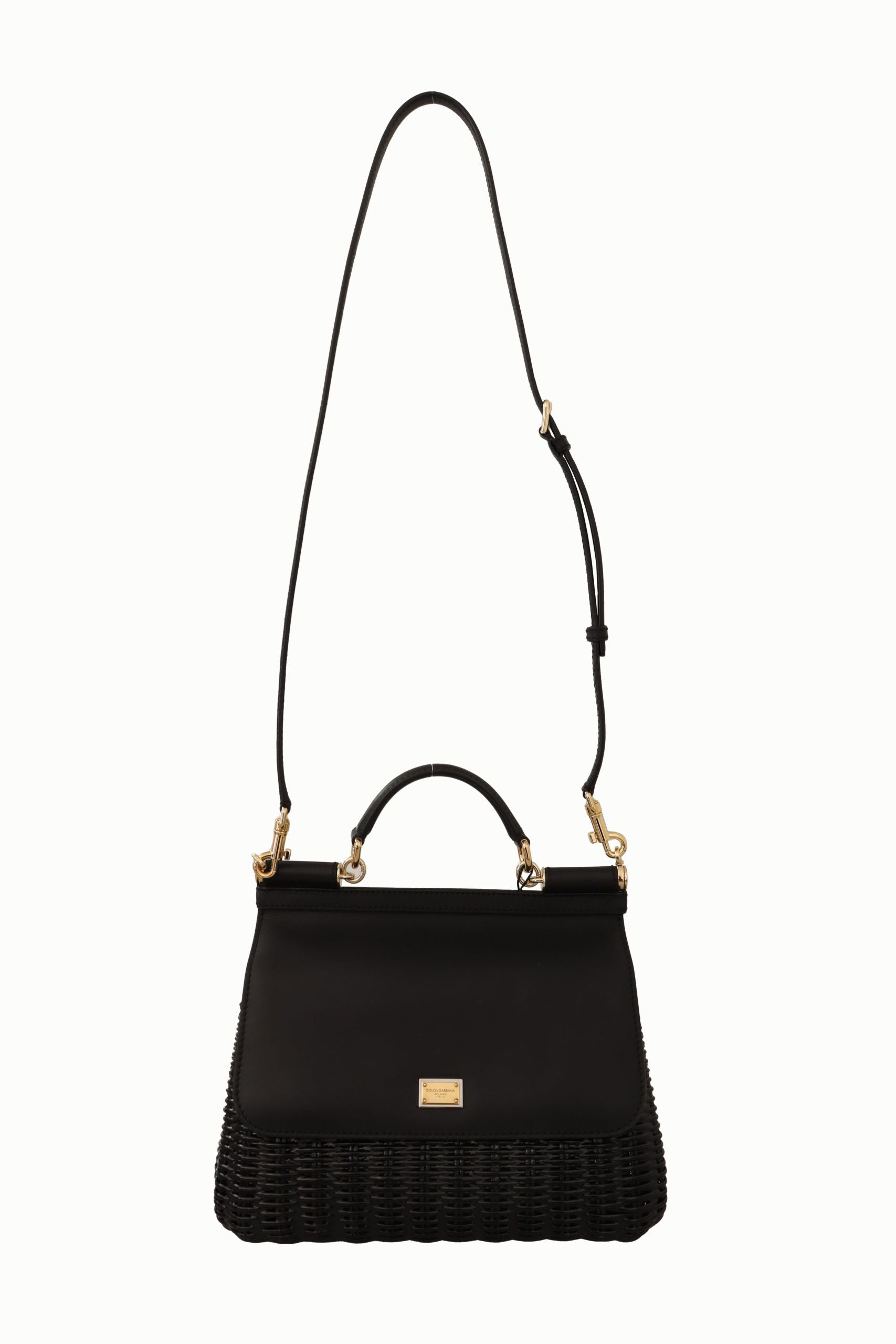 Step out in style with an iconic ‘Sicily’ medium-sized bag by Dolce & Gabbana. This exquisite piece blends functionality with elegance, boasting a chic black weaved design complemented by gold metal details. It’s the perfect accessory to elevate any outfit, from day to night.